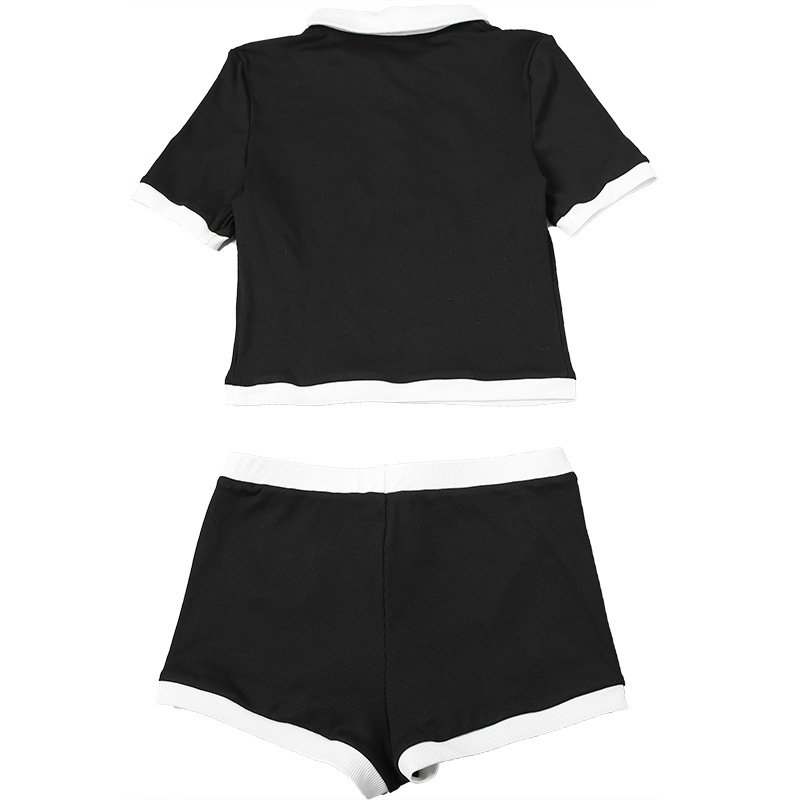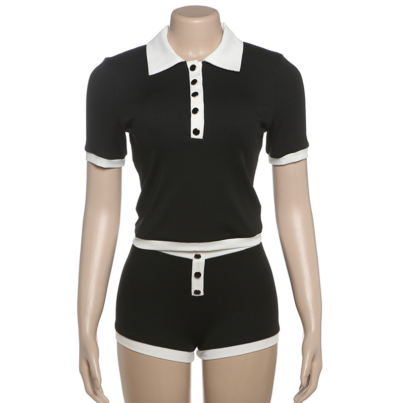 This Summer Women's Short-Sleeve Turndown Collar Top With Bodycon Shorts Set Design Made Of High Quality polyester And Spandex Material. It Is Stretchy, Durable And Comfortable. It Come With The Top And Shorts. retail Short Sets Saves Some People From The Trouble Of Matching. And For Matchmakers It Is More Flexible Than One-Piece Outfit. Two Piece Short Set Can Be Worn Together Or Individually, Ladies Can Match Them According To Different Occasions. Grab Different Two Piece Short Sets For This Spring And Summer.