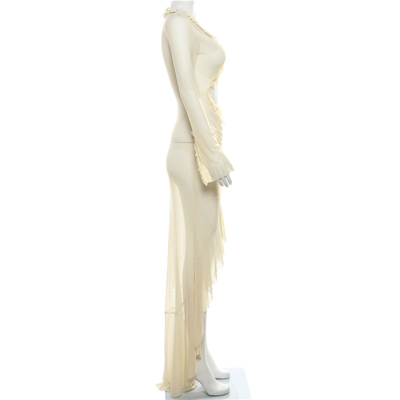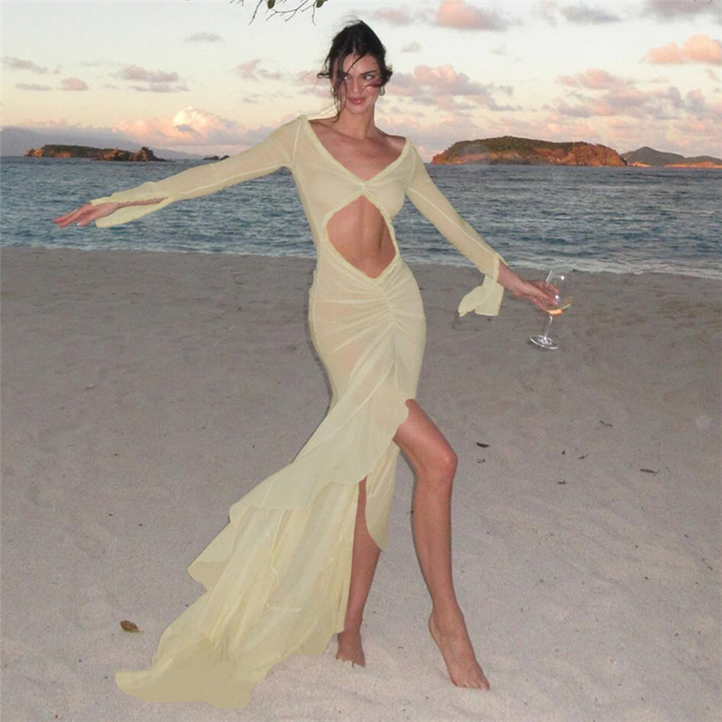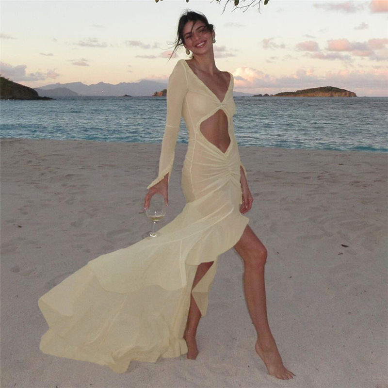 This Summer Women's v-Neck Sheer Sexy Cutout Slim Log Dress Design Made Of High Quality polyester And Spandex Material. It Is Stretchy, Durable And Comfortable. Casual Dresses With Long Sleeves Can Not Only Be Worn As Outerwear In Spring And Autumn, But Also Matching a Jacket In Winter, It Is a Must Have Item For Every Season. Grab Really Great Buy Casual Dresses For Women And Grow Your Business. No Moq In BamBam.