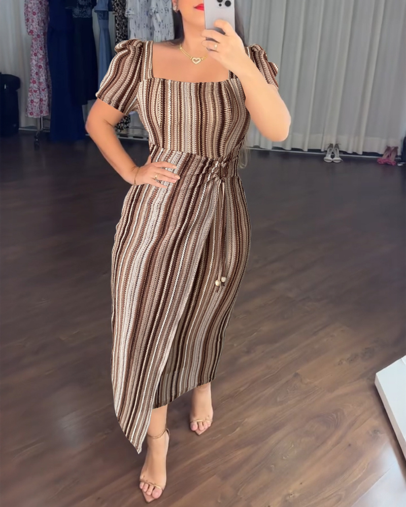 This Textured Square Neck Puff Sleeve Lace-Up Midi Dress Design Made Of High Quality polyester And Spandex Material. It Is Stretchy, Durable And Comfortable. Casual Dresses With Long Sleeves Can Not Only Be Worn As Outerwear In Spring And Autumn, But Also Matching a Jacket In Winter, It Is a Must Have Item For Every Season. Grab Really Great Buy Casual Dresses For Women And Grow Your Business. No Moq In BamBam.