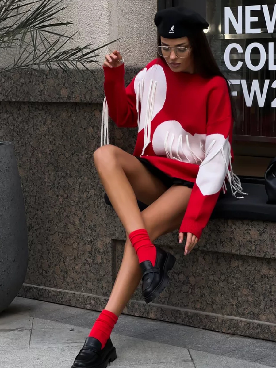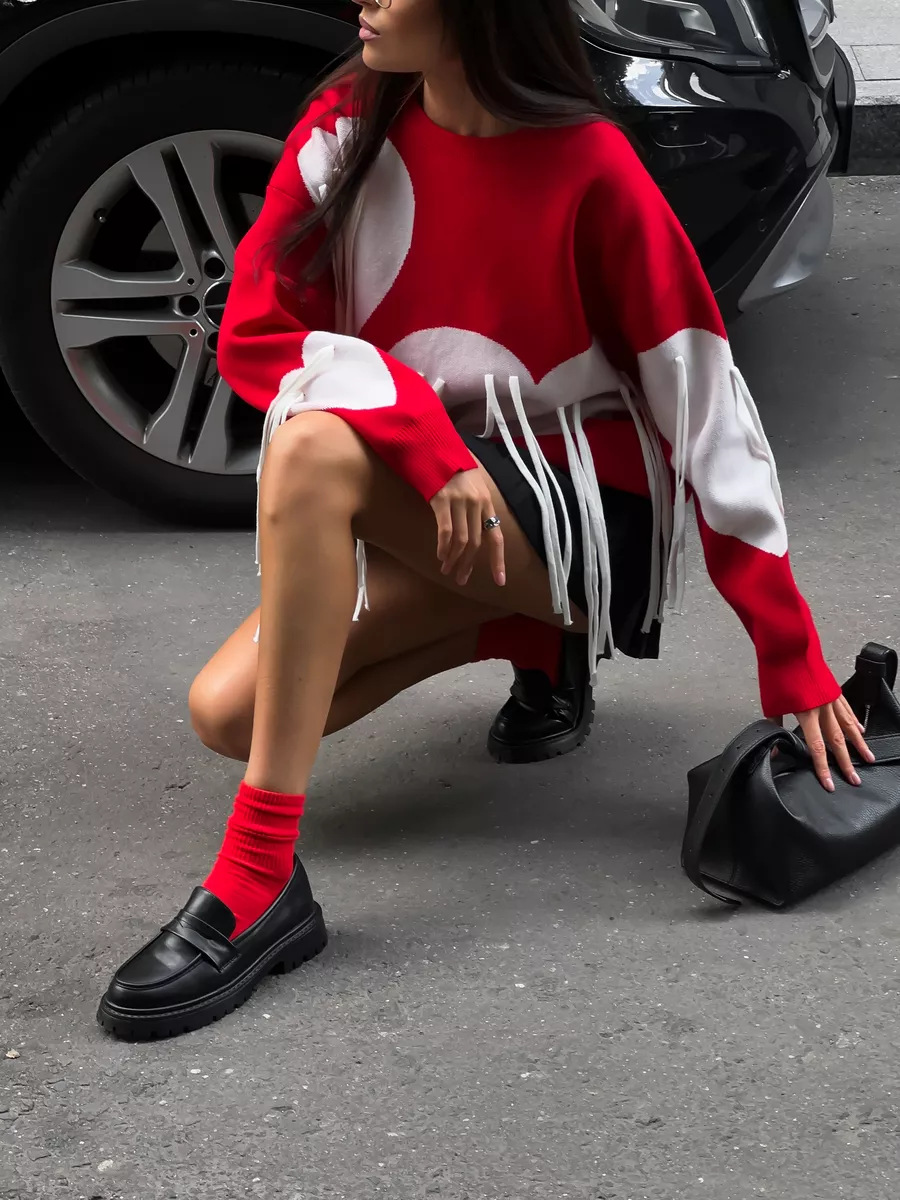This Trendy Print Lace Trim Round Neck Top Is An Indispensable Beautiful piece to have to keep warm In Cozy Winter. Women’s retail Sweaters And Cardigans At BamBam Combine warmth with Fashion. Best Oversized Sweaters Have Long Been The main Favorite. It’s So Easy To Match a Large Sweater, Sometimes The Coat Can Be Ignored. Oversized Sweater With Short Skirt Is Dignified And Attractive. Oversized Sweater With Skirt Is Elegant And Sweet. Oversized Sweaters With Over-The-Knee Boots Can Easily Create a Sense Of Maturity And Femininity. Oversized Sweaters Paired With Shorts Are Full Of Youthful Vitality And Look More Dynamic And Energetic!
