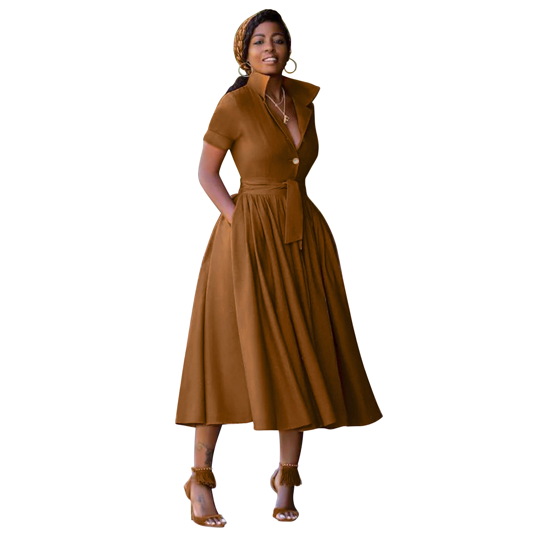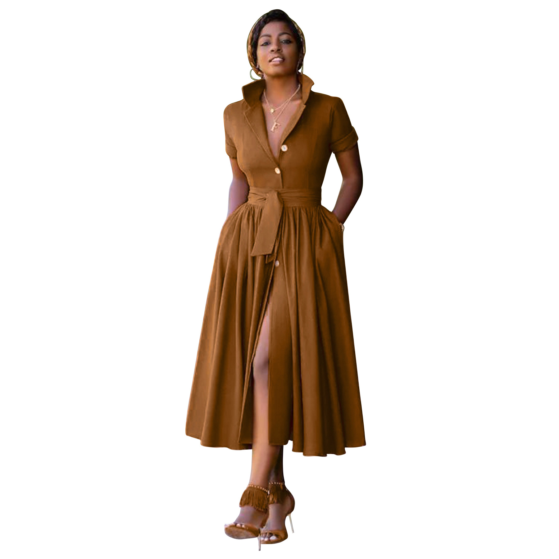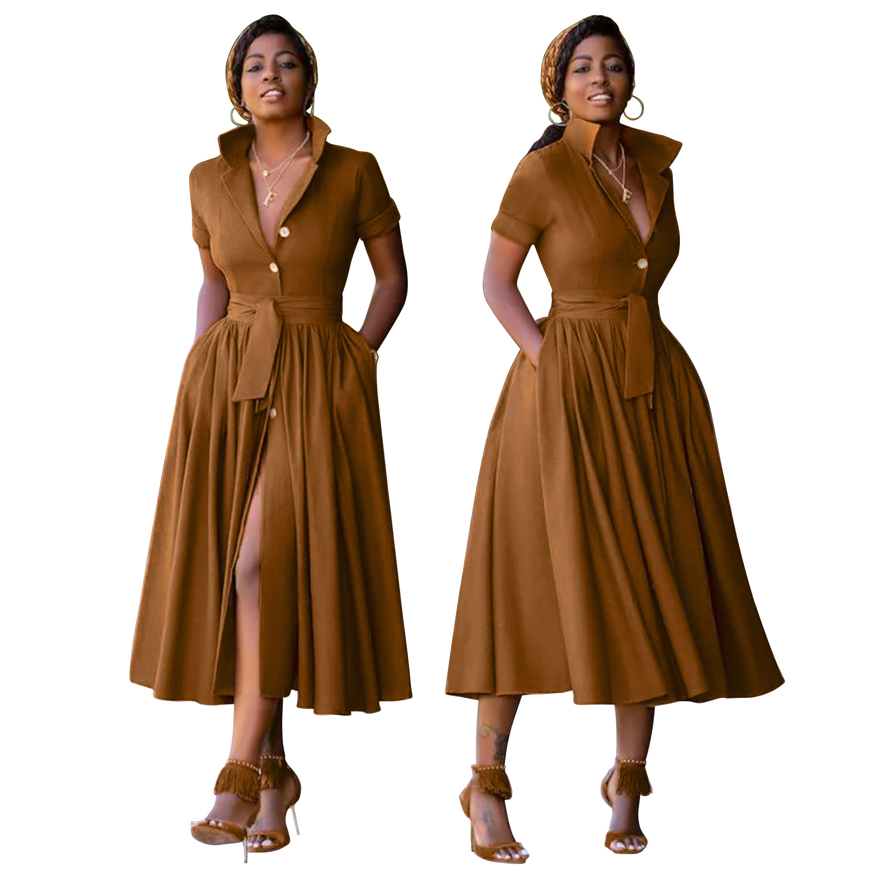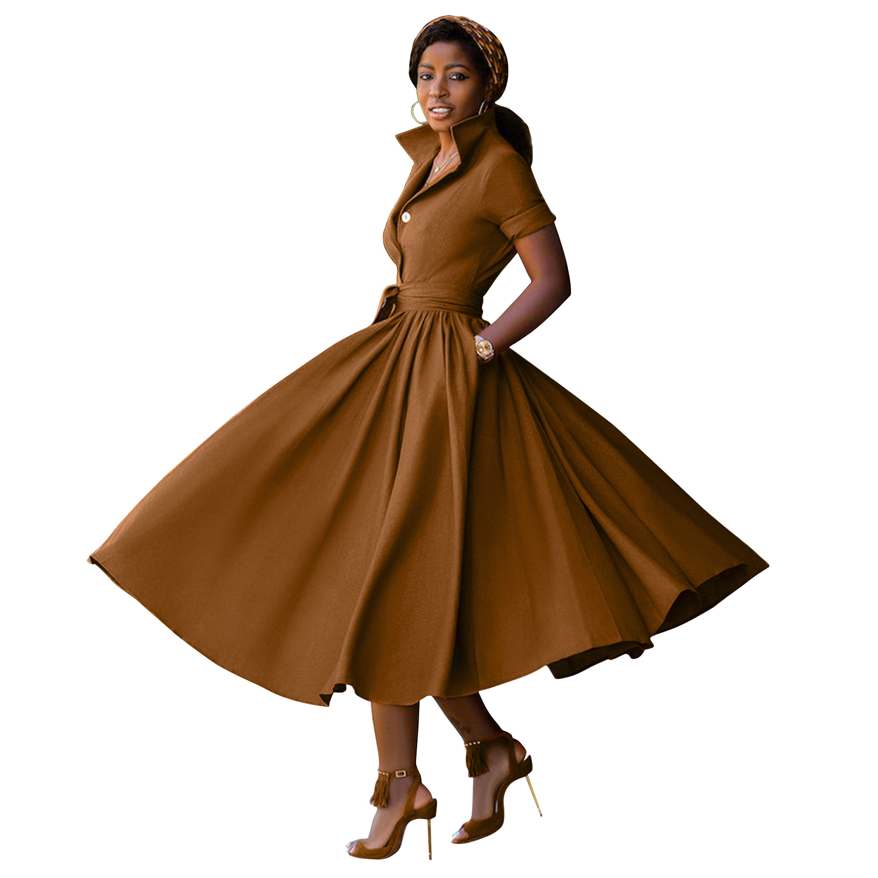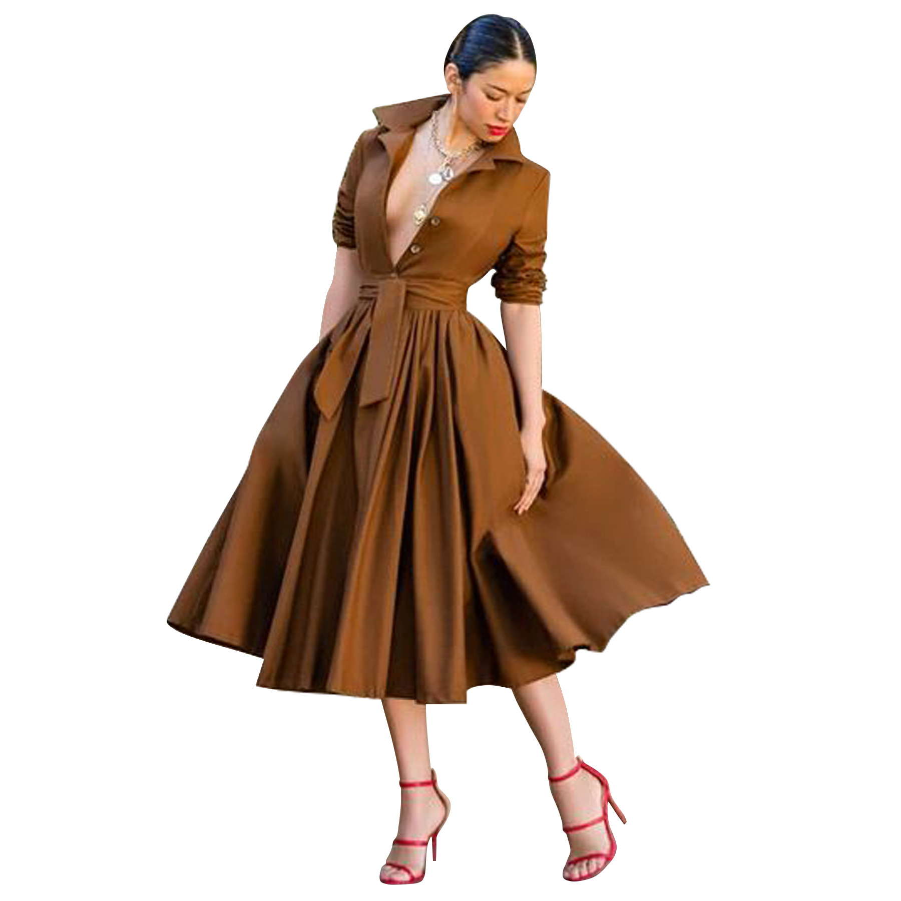 This Trendy Women's Autumn/Winter Long Sleeve Slim Waist Solid Color Flared Dress Design Made Of High Quality polyester And Spandex Material. It Is Stretchy, Durable And Comfortable. Casual Dresses With Long Sleeves Can Not Only Be Worn As Outerwear In Spring And Autumn, But Also Matching a Jacket In Winter, It Is a Must Have Item For Every Season. Grab Really Great Buy Casual Dresses For Women And Grow Your Business. No Moq In BamBam.
