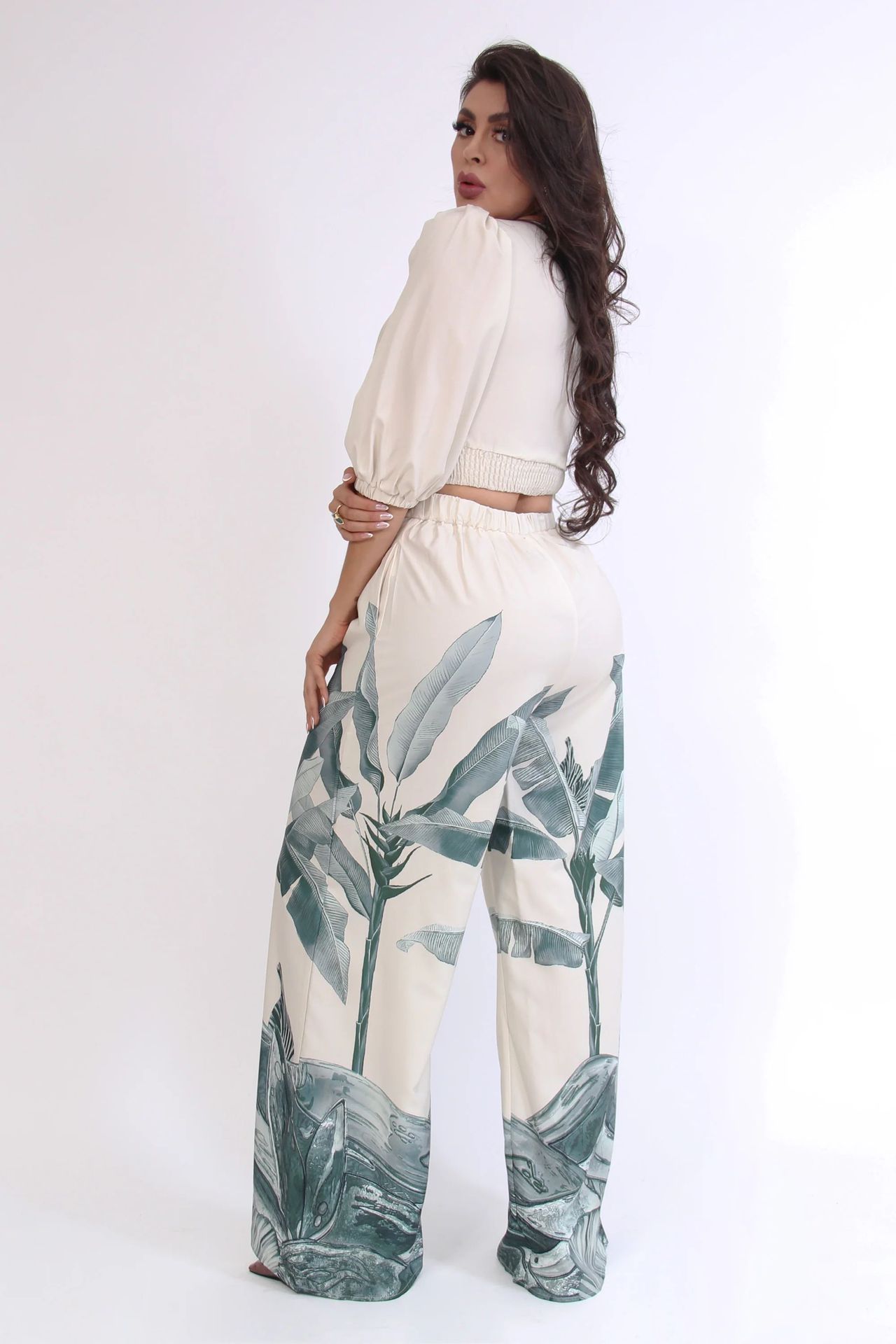 This v-Neck Lantern Sleeve Top Printed Wide-Leg Pants Suit Design Made Of High Quality polyester And Spandex Material. It Is Stretchy, Durable And Comfortable. It Is a Must-Have Outfit For All Seasons. retail Two Piece Pant Sets Can Solve Your cloth selection Troubles. Explore More 2 Piece Pants Set On BamBam retail Women Clothing Online Store.