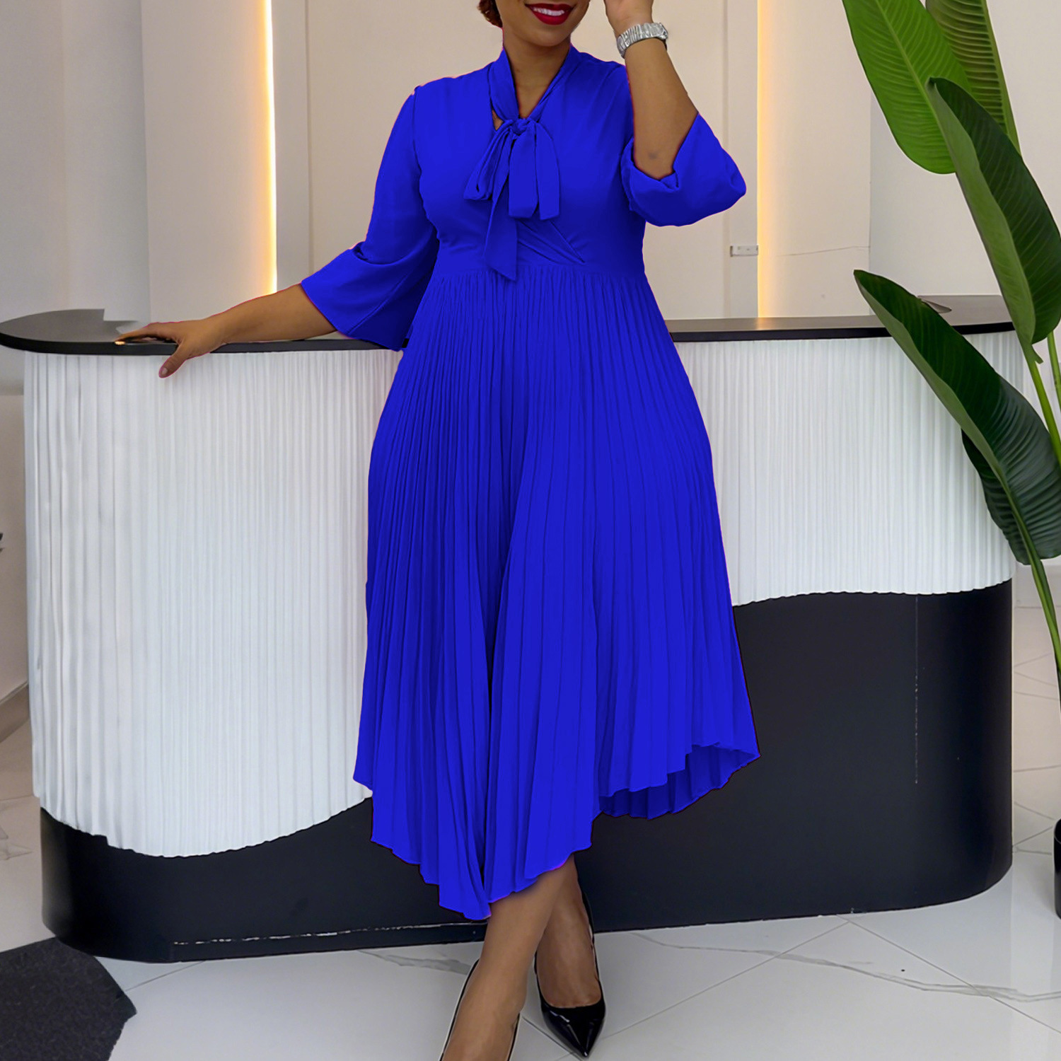 This Women 3/4-Sleeve Tie Dress With Irregular Pleats Design Made Of High Quality polyester And Spandex Material. It Is Stretchy, Durable And Comfortable. Casual Dresses With Long Sleeves Can Not Only Be Worn As Outerwear In Spring And Autumn, But Also Matching a Jacket In Winter, It Is a Must Have Item For Every Season. Grab Really Great Buy Casual Dresses For Women And Grow Your Business. No Moq In BamBam.
