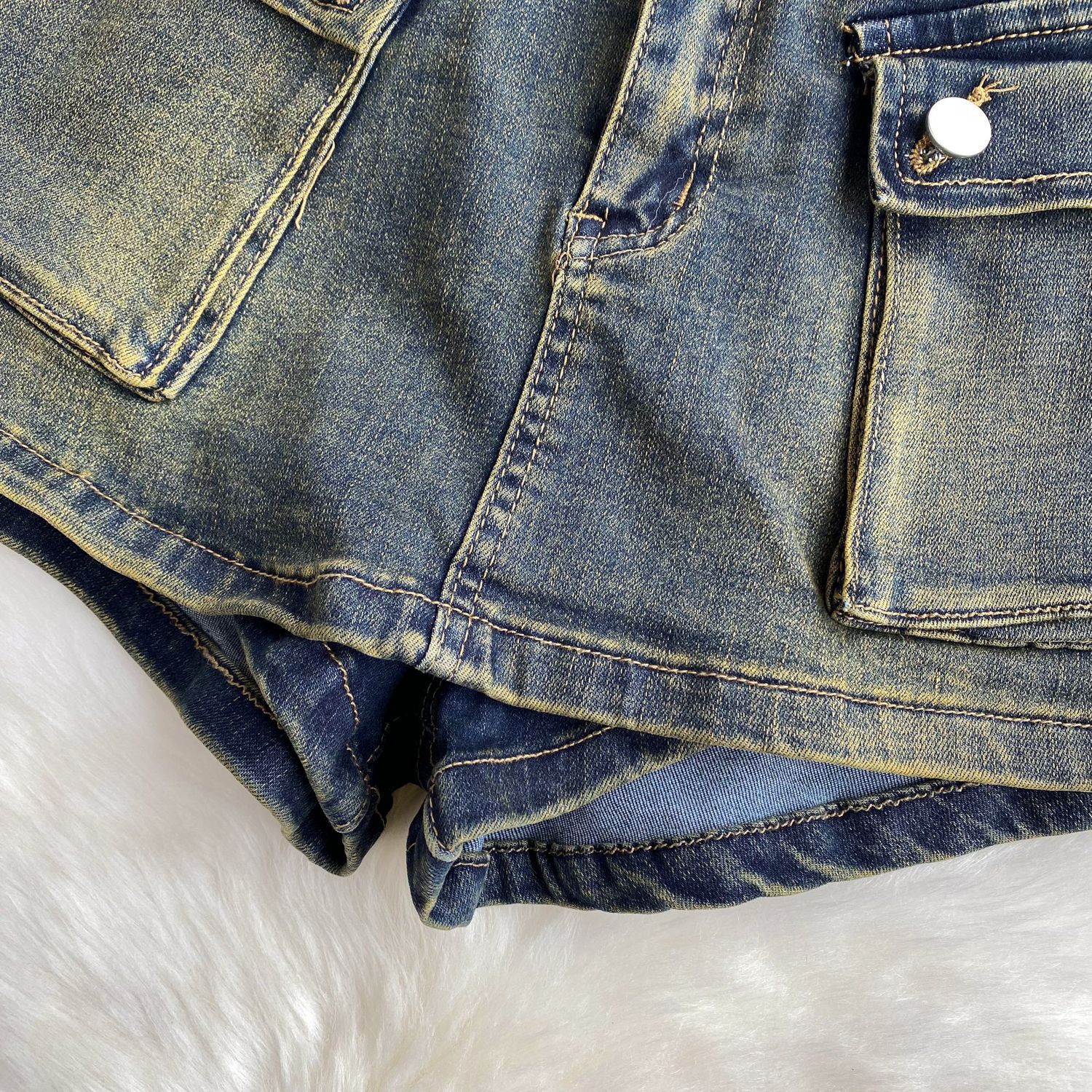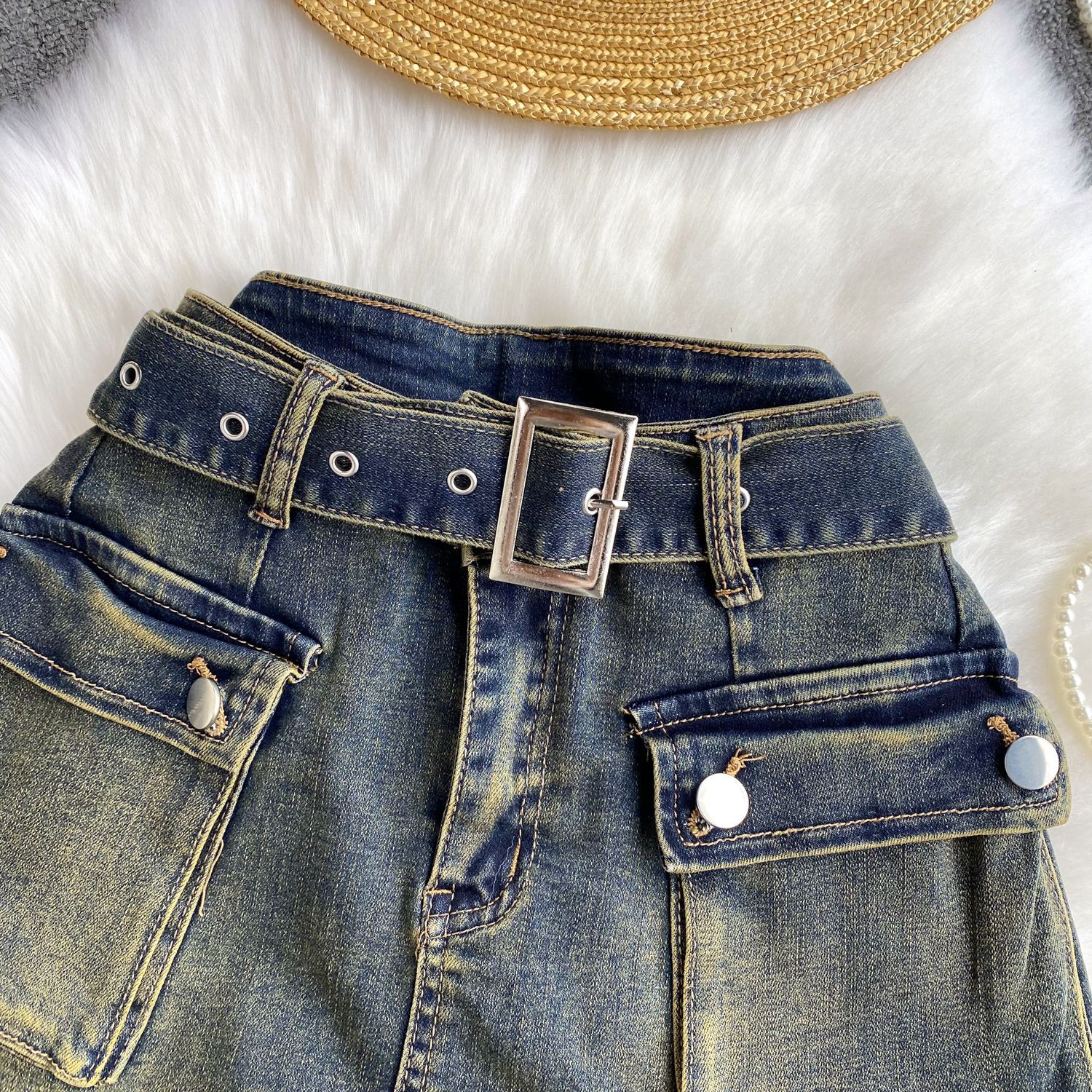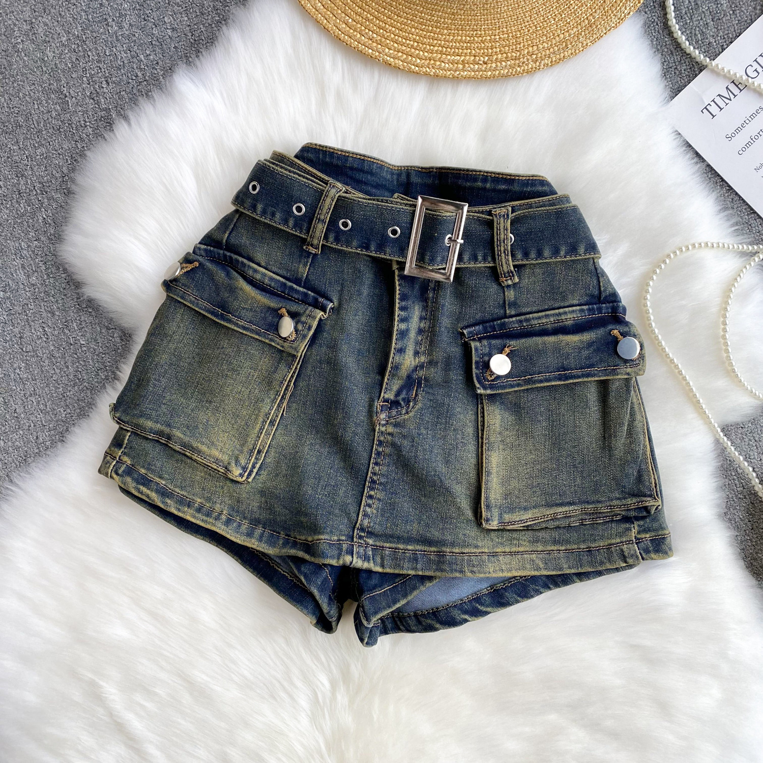 This Women American Retro Cargo Denim Shorts Design Made Of Durable And Stretchy Jeans Fabric. It Is a Must-Have Item For everyday use. Trendy retail Jeans Is a Indispensable Item For Everyday Fashion. Women’s Jeans With High Waist Is a Must Have trouser/pant that helps bring the grace of shape of your legs out even more and fits perfectly snugging your thighs and body gracefully. Grab a Must Have High Waist Jeans retail For Your Closet, Just Choose Different Matching Tops To stay in control of Every Occasion Easily.