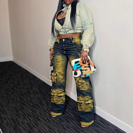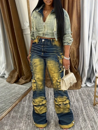 This Women American Retro Cargo Tie-Dye Wide-Leg Pants Design Made Of Durable And Stretchy Jeans Fabric. It Is a Must-Have Item For everyday use. Trendy retail Jeans Is a Indispensable Item For Everyday Fashion. Women’s Jeans With High Waist Is a Must Have trouser/pant that helps bring the grace of shape of your legs out even more and fits perfectly snugging your thighs and body gracefully. Grab a Must Have High Waist Jeans retail For Your Closet, Just Choose Different Matching Tops To stay in control of Every Occasion Easily.