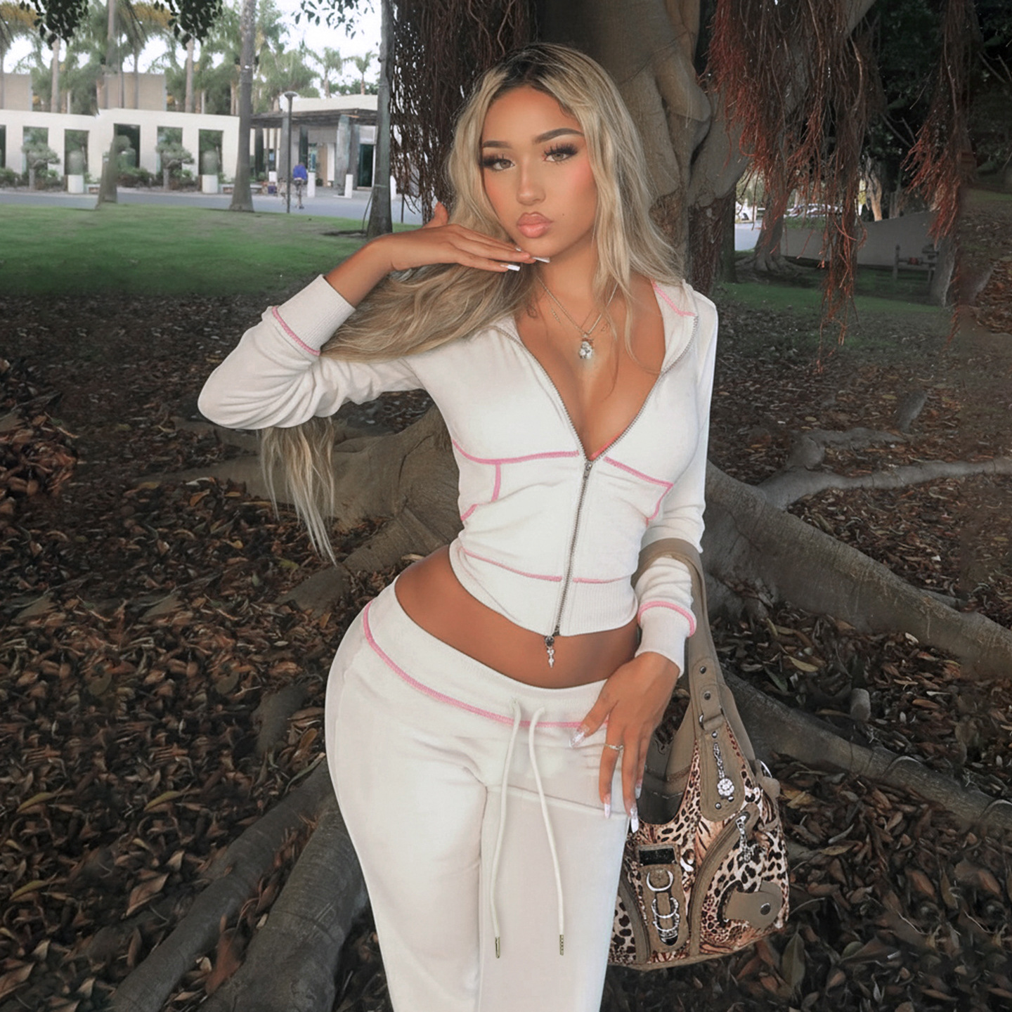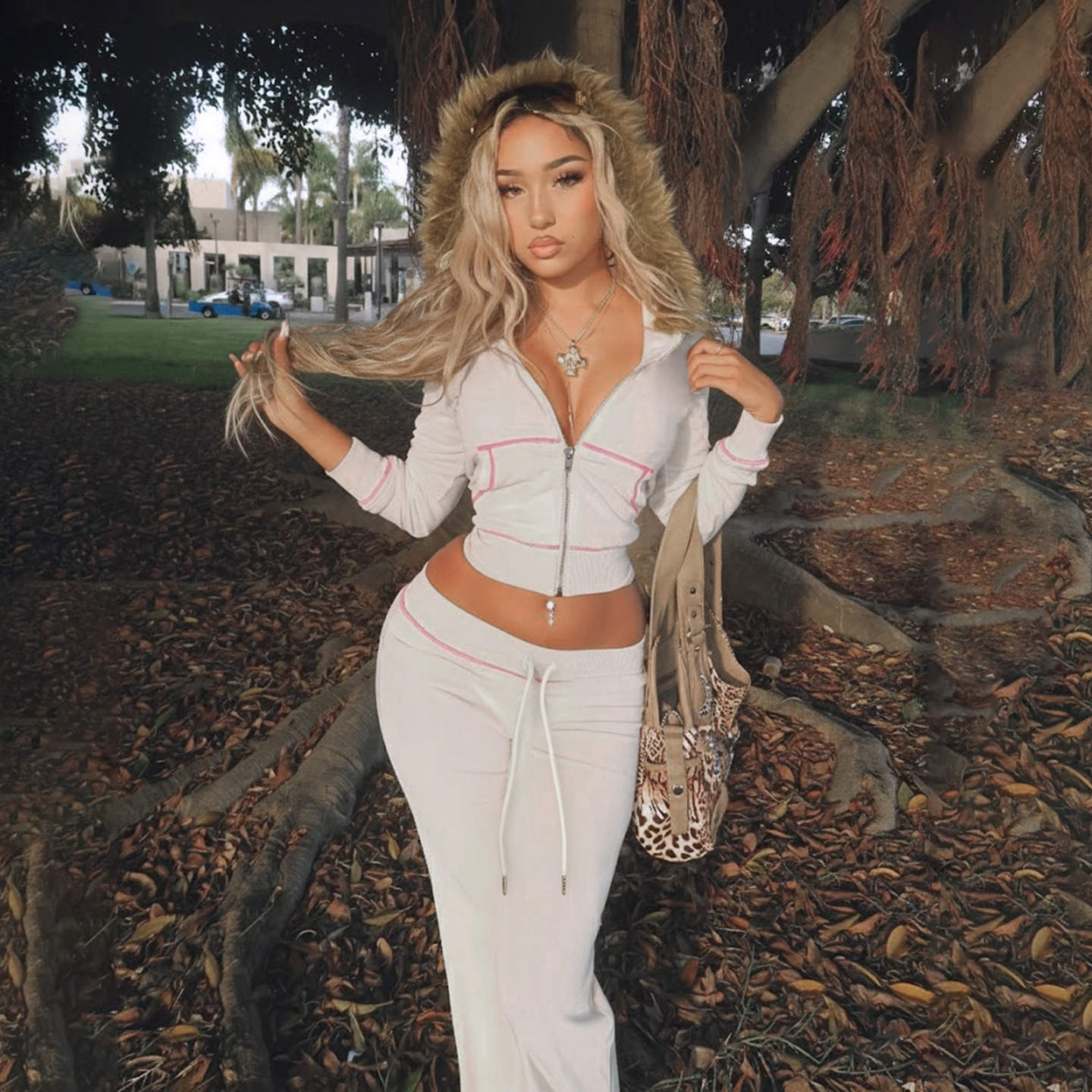 This Women American-Style Fall/Winter Sport Velvet Letter Print Fur Collar Hooded Long-Sleeved Jacket And Pants Two-Piece Set Design Made Of High Quality polyester And Spandex Material. It Is Stretchy, Durable And Comfortable. It Is a Must-Have Outfit For All Seasons. retail Two Piece Pant Sets Can Solve Your cloth selection Troubles. Explore More 2 Piece Pants Set On BamBam retail Women Clothing Online Store.