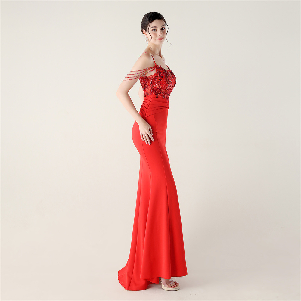 This Women Applique Beaded Tube Fishbone Pressed Beaded Off-Shoulder Sexy Evening Dress Design Made Of Good Quality Polyester And Spandex Material, Which Is Stretchy, Durable And Comfortable. The Long Evening Dresses And Gowns Is Always The main Choice For All Kinds Of Parties, Cocktail, Prom, Events, And Dating Occasions. Evening Gowns At BamBam Comes With Huge Selections - Sequins, Beaded, Satin, Velvet, Lace.... When You Need retail Evening Dresses, BamBam retail Women Garment Online Shop Is Your One-Stop Online Shopping Choice.