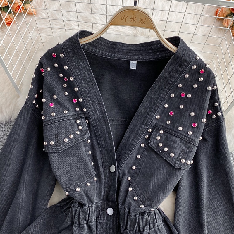 This Women Autumn And Winter v-Neck Beaded Denim Top Made Of Durable And Thick Material. It Is a Must-Have Item For Autumn And Winter. BamBam Offer retail Jackets And Coats In Wide Range Selection, Everything Is Fashion Related And Ladies Find Here a Warm And Exciting Place To Shop Jackets And Coats For Women - The Chic Blazer, Timeless Leather Jackets, Cool Bomber Coats, Winter Thick Down Coats...When You Need More retail Women Outerwear, You Can Always Find What You Need On Our retail Women Clothing Online Store.