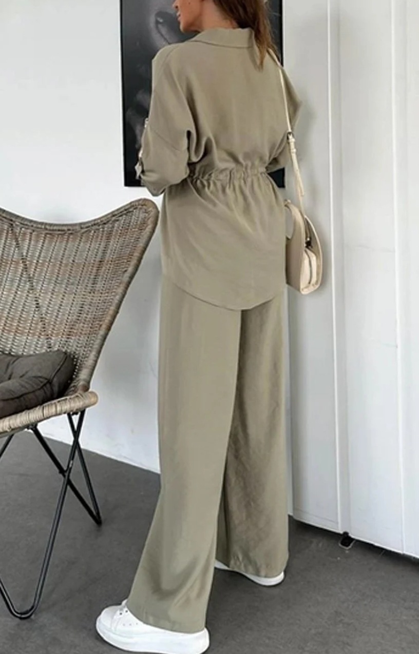 This Women Autumn Casual Solid Drawstring Patch Pocket Button Top And Pant Two Piece Set Design Made Of High Quality polyester And Spandex Material. It Is Stretchy, Durable And Comfortable. It Is a Must-Have Outfit For All Seasons. retail Two Piece Pant Sets Can Solve Your cloth selection Troubles. Explore More 2 Piece Pants Set On BamBam retail Women Clothing Online Store.