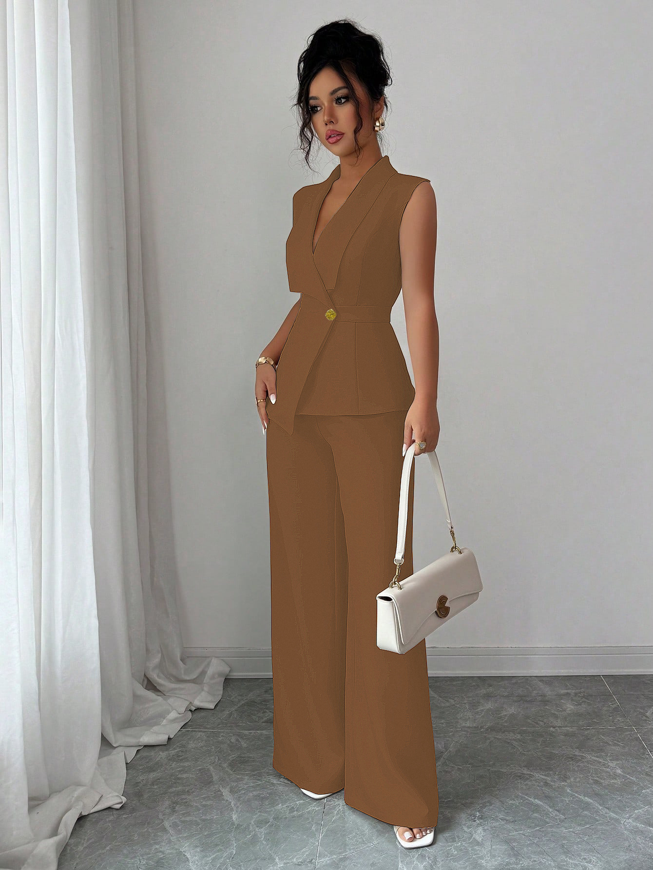 This Women Autumn Elegant Solid Vest And Trousers Two-Piece Set Design Made Of High Quality polyester And Spandex Material. It Is Stretchy, Durable And Comfortable. It Is a Must-Have Outfit For All Seasons. retail Two Piece Pant Sets Can Solve Your cloth selection Troubles. Explore More 2 Piece Pants Set On BamBam retail Women Clothing Online Store.