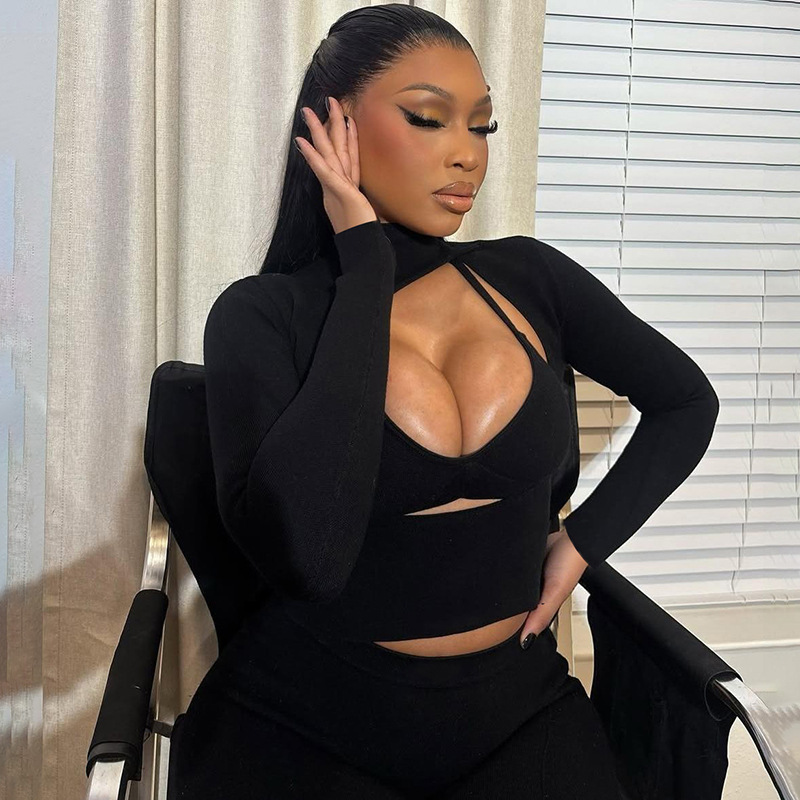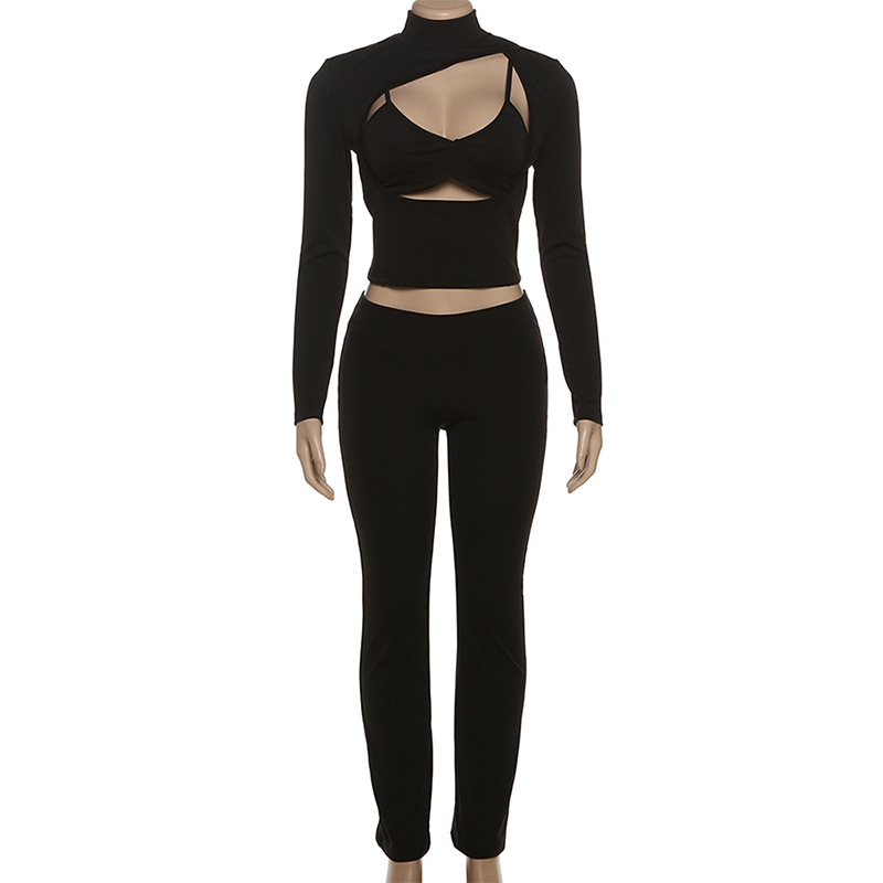 This Women Autumn Hollow-Neck Long-Sleeved Top And Pants Two-Piece Set Design Made Of High Quality polyester And Spandex Material. It Is Stretchy, Durable And Comfortable. It Is a Must-Have Outfit For All Seasons. retail Two Piece Pant Sets Can Solve Your cloth selection Troubles. Explore More 2 Piece Pants Set On BamBam retail Women Clothing Online Store.