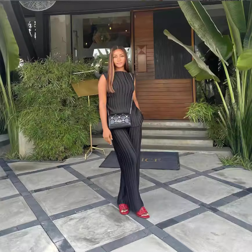 This Women Autumn Solid Sleeveless Round Neck Top And Wide Leg Pants Two-Piece Set Design Made Of High Quality polyester And Spandex Material. It Is Stretchy, Durable And Comfortable. It Is a Must-Have Outfit For All Seasons. retail Two Piece Pant Sets Can Solve Your cloth selection Troubles. Explore More 2 Piece Pants Set On BamBam retail Women Clothing Online Store.
