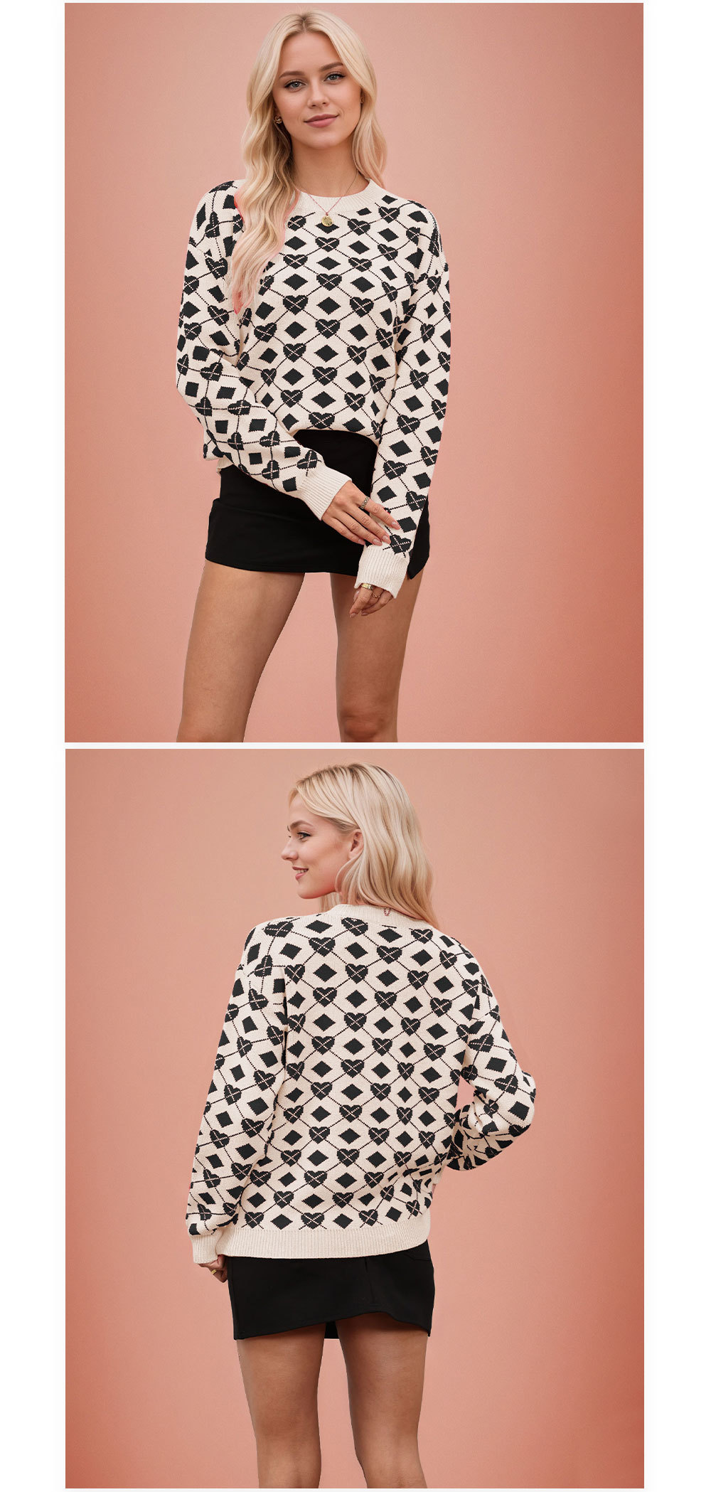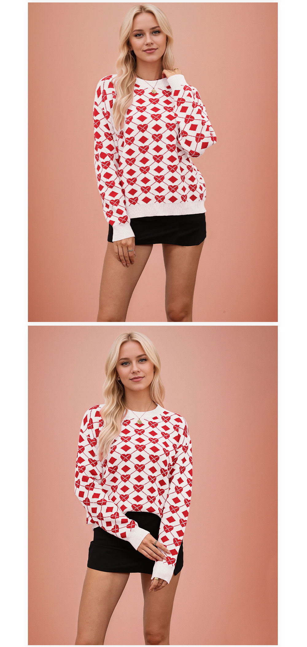 This Women Autumn/Winter Heart Valentine's Day Sweater Is An Indispensable Beautiful piece to have to keep warm In Cozy Winter. Women’s retail Sweaters And Cardigans At BamBam Combine warmth with Fashion. Best Oversized Sweaters Have Long Been The main Favorite. It’s So Easy To Match a Large Sweater, Sometimes The Coat Can Be Ignored. Oversized Sweater With Short Skirt Is Dignified And Attractive. Oversized Sweater With Skirt Is Elegant And Sweet. Oversized Sweaters With Over-The-Knee Boots Can Easily Create a Sense Of Maturity And Femininity. Oversized Sweaters Paired With Shorts Are Full Of Youthful Vitality And Look More Dynamic And Energetic!