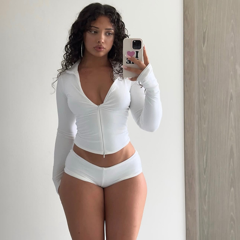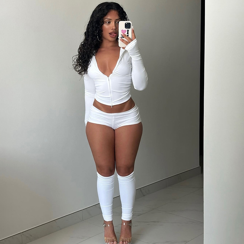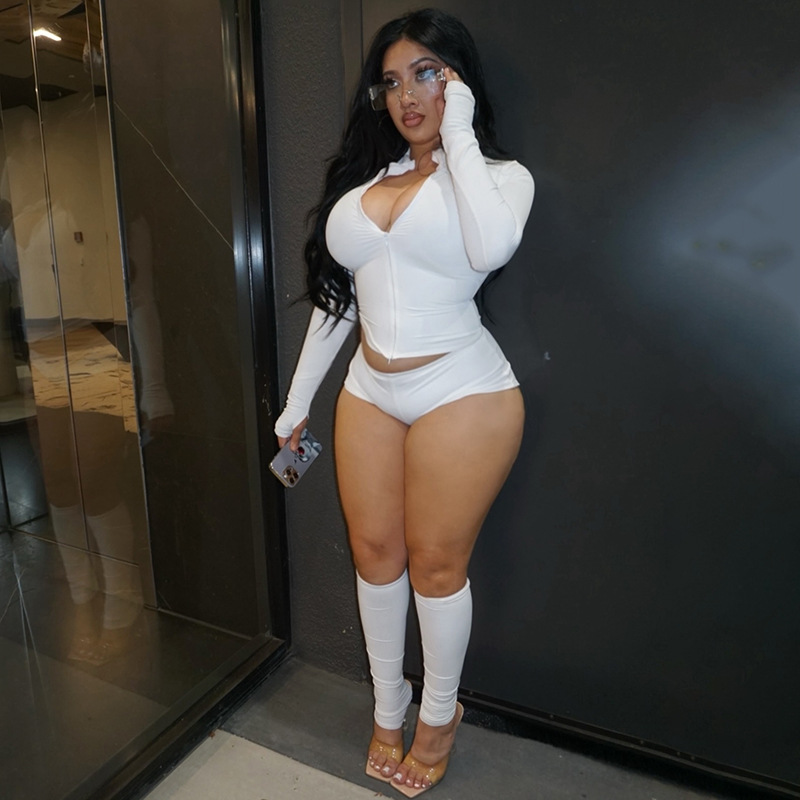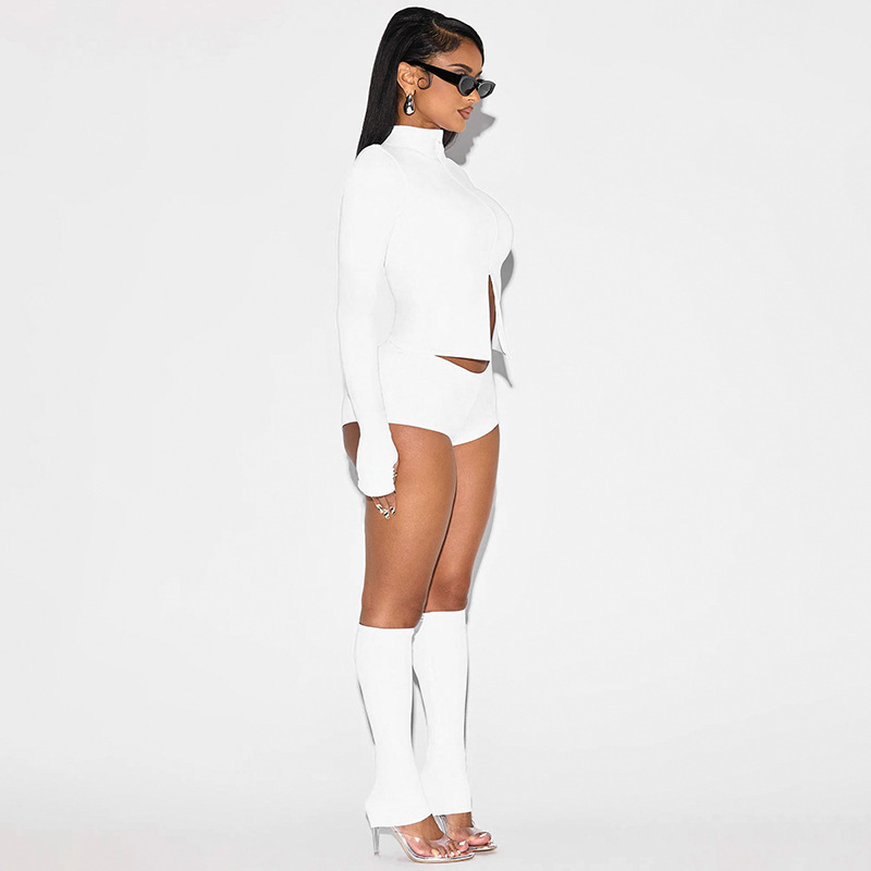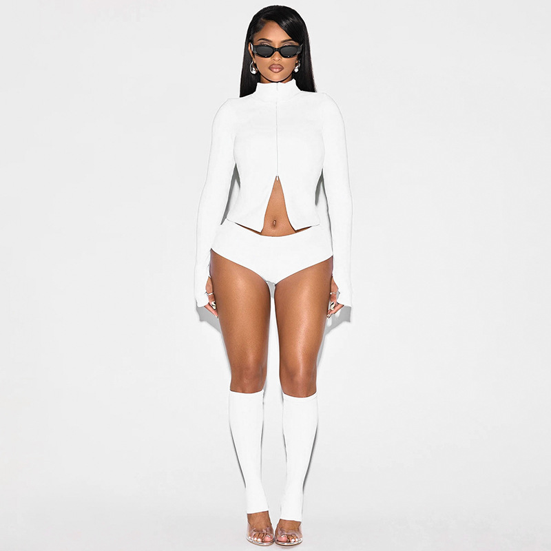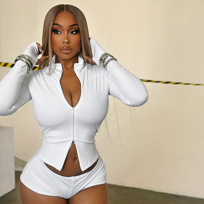 This Women Autumn/Winter Stand Collar Zippered Top Shorts With Three-Piece Knee Pads Design Made Of High Quality polyester And Spandex Material. It Is Stretchy, Durable And Comfortable. It Come With The Top And Shorts. retail Short Sets Saves Some People From The Trouble Of Matching. And For Matchmakers It Is More Flexible Than One-Piece Outfit. Two Piece Short Set Can Be Worn Together Or Individually, Ladies Can Match Them According To Different Occasions. Grab Different Two Piece Short Sets For This Spring And Summer.