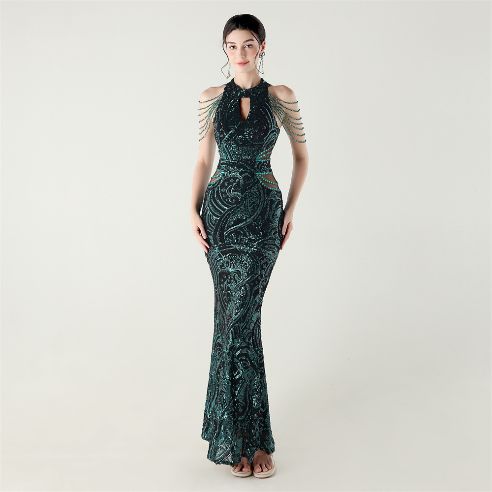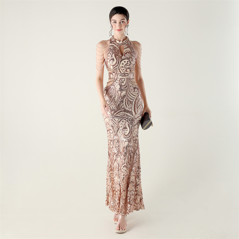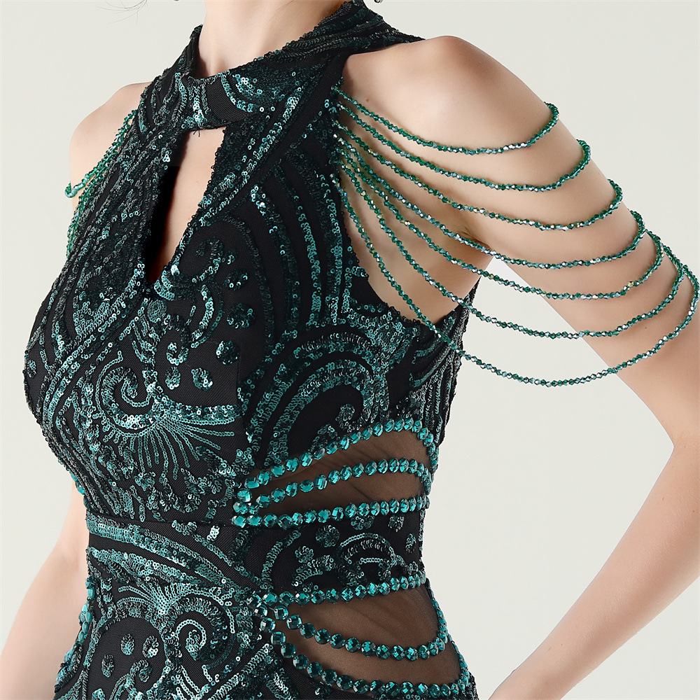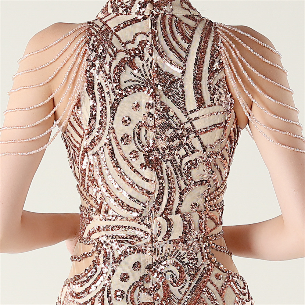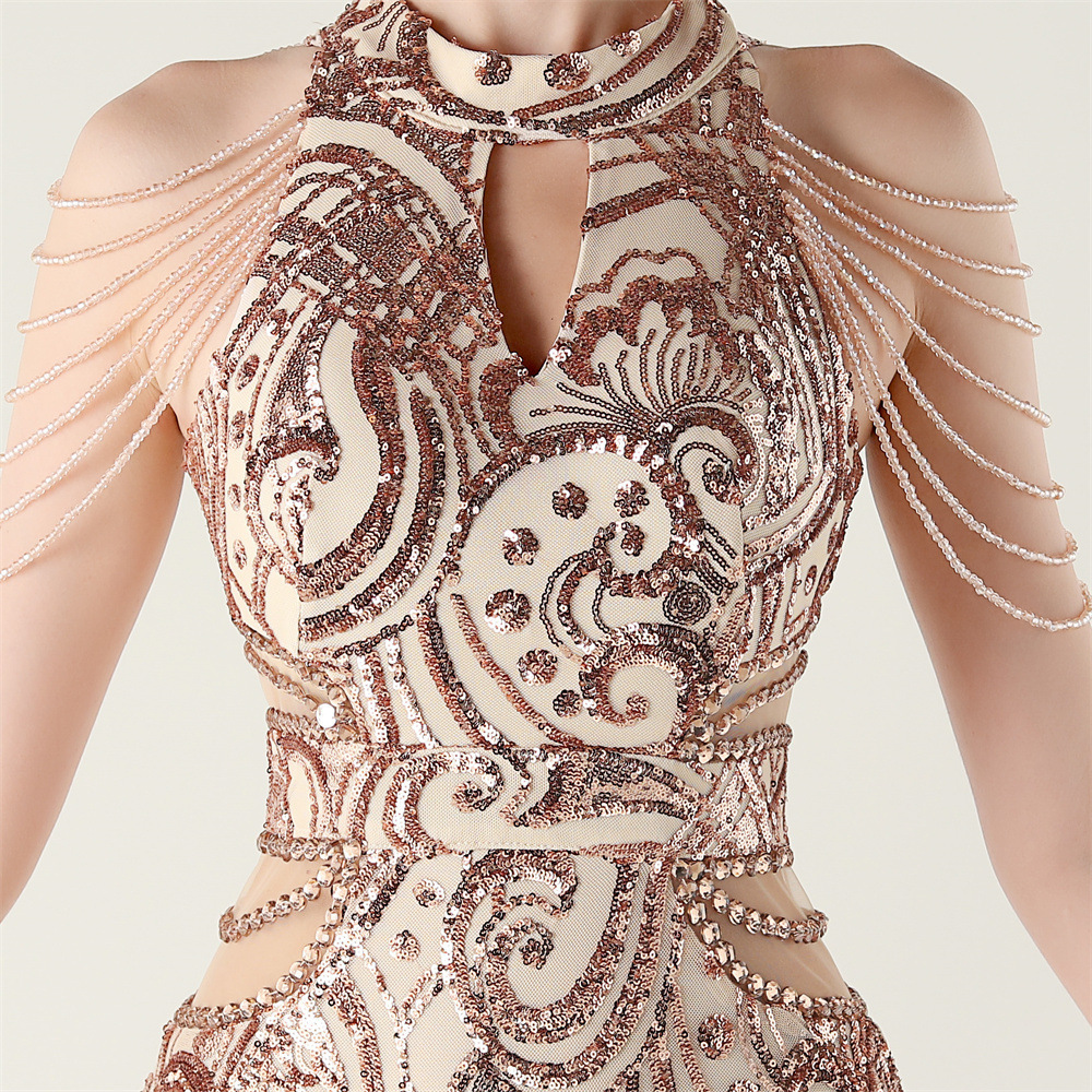 This Women Beaded Chain Shoulder Sequin Halter Neck Formal Party Evening Dress Design Made Of Good Quality Polyester And Spandex Material, Which Is Stretchy, Durable And Comfortable. The Long Evening Dresses And Gowns Is Always The main Choice For All Kinds Of Parties, Cocktail, Prom, Events, And Dating Occasions. Evening Gowns At BamBam Comes With Huge Selections - Sequins, Beaded, Satin, Velvet, Lace.... When You Need retail Evening Dresses, BamBam retail Women Garment Online Shop Is Your One-Stop Online Shopping Choice.