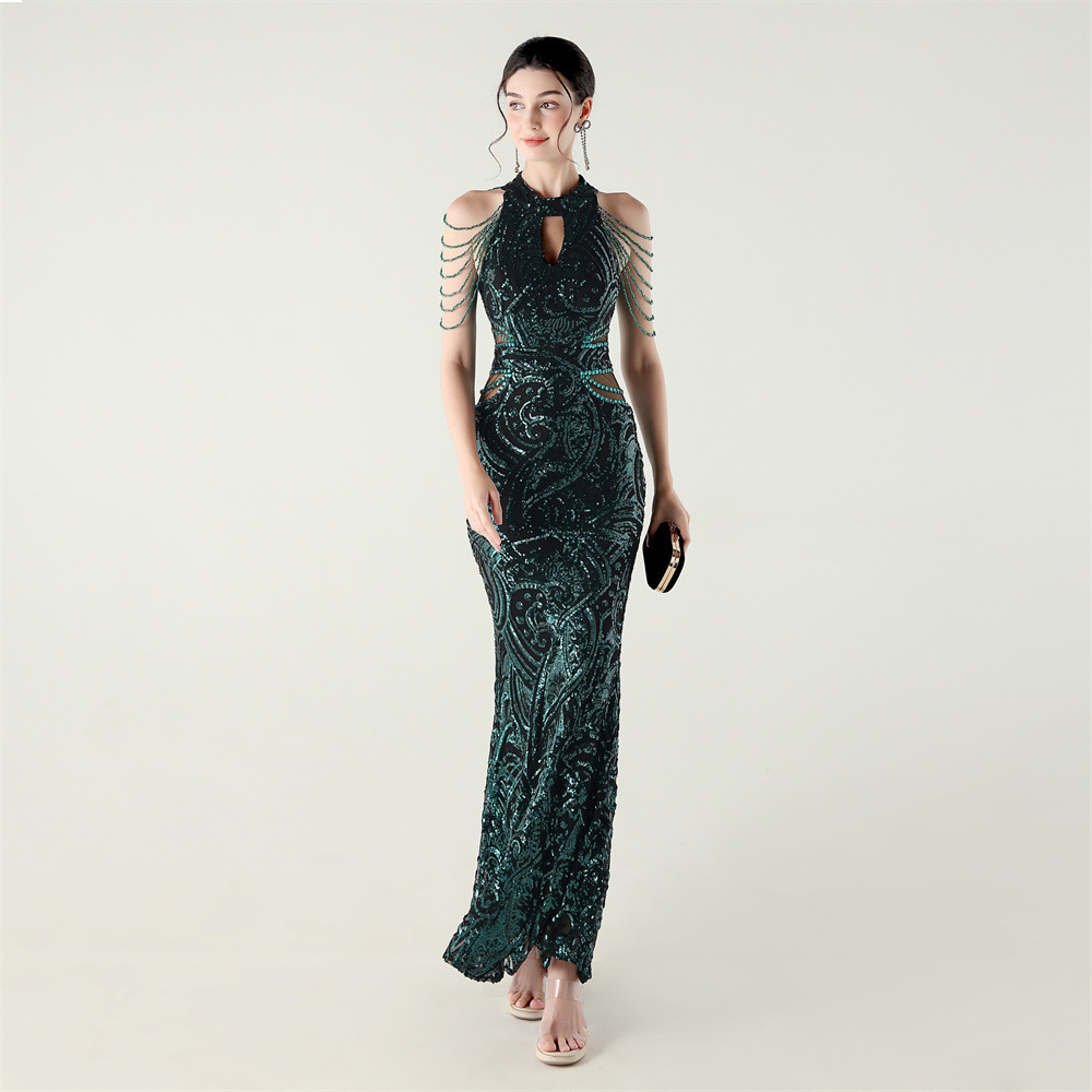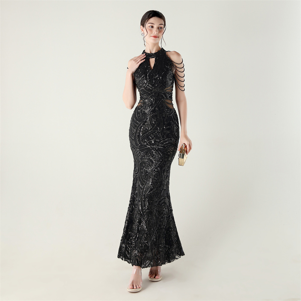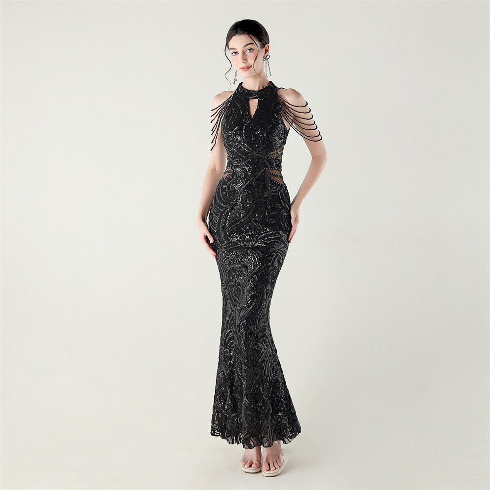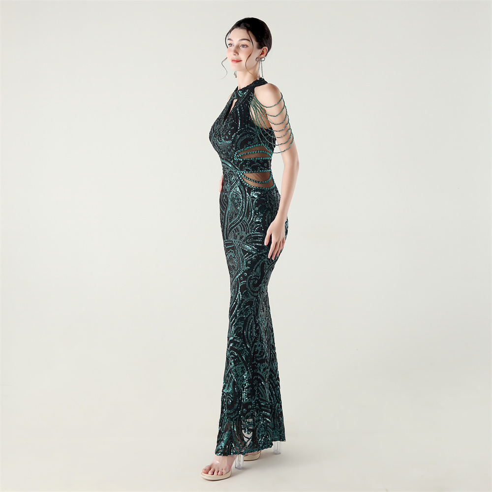 This Women Beaded Chain Shoulder Sequin Halter Neck Formal Party Evening Dress Design Made Of Good Quality Polyester And Spandex Material, Which Is Stretchy, Durable And Comfortable. The Long Evening Dresses And Gowns Is Always The main Choice For All Kinds Of Parties, Cocktail, Prom, Events, And Dating Occasions. Evening Gowns At BamBam Comes With Huge Selections - Sequins, Beaded, Satin, Velvet, Lace.... When You Need retail Evening Dresses, BamBam retail Women Garment Online Shop Is Your One-Stop Online Shopping Choice.