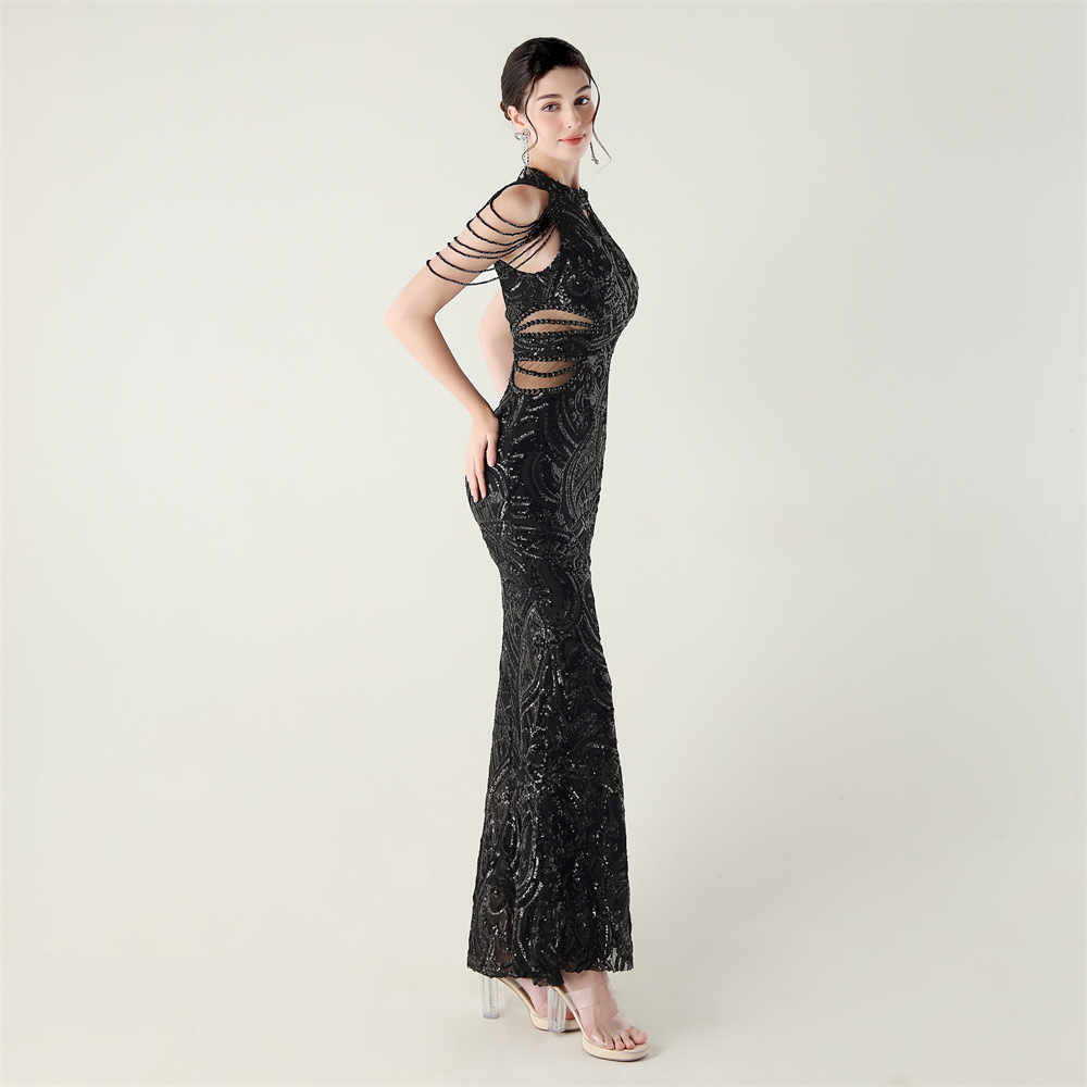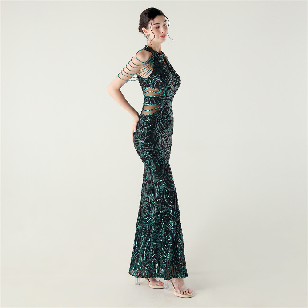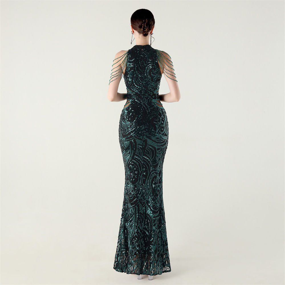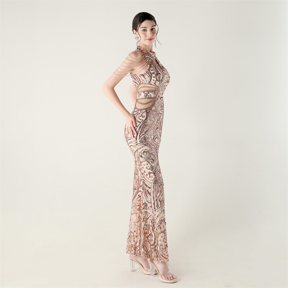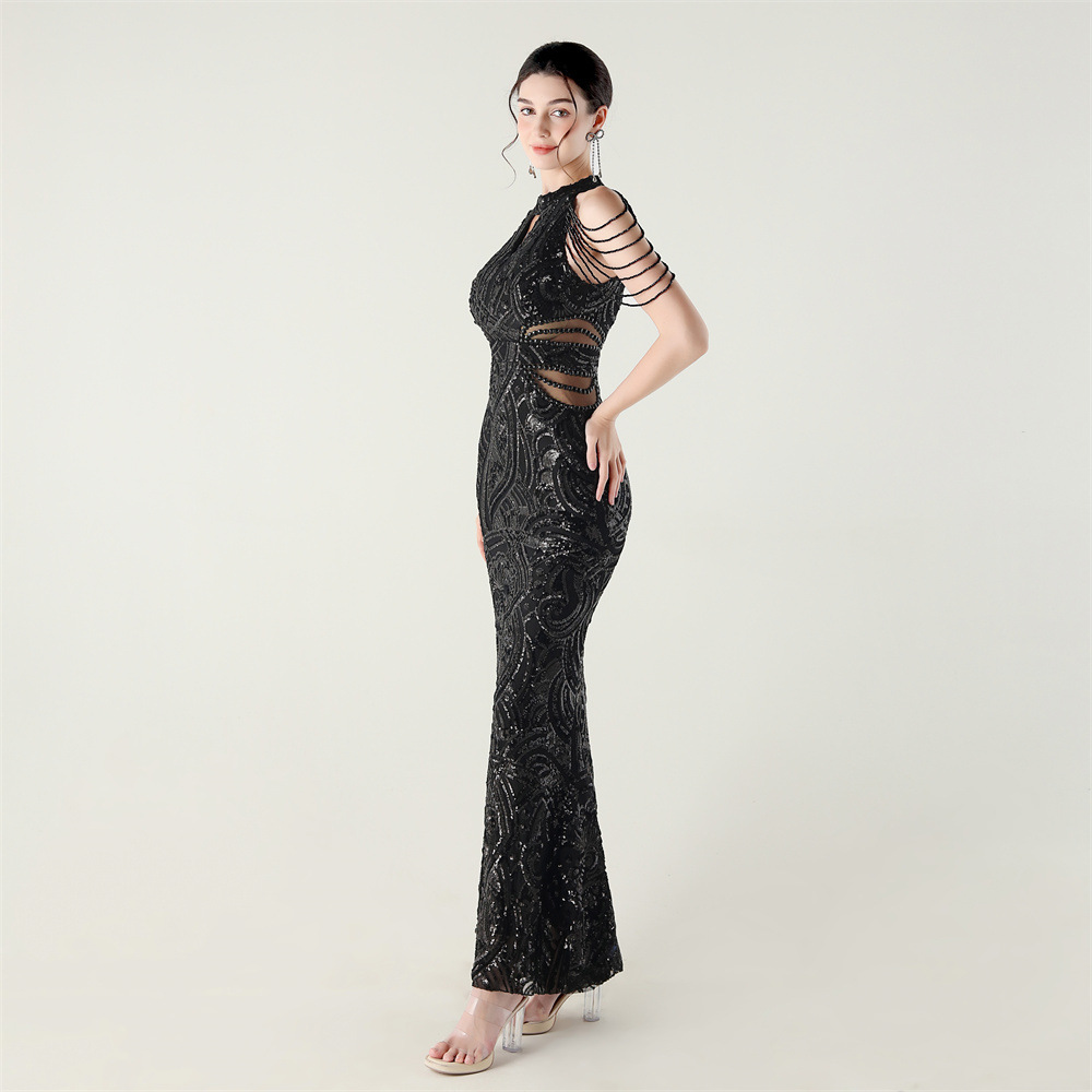 This Women Beaded Chain Shoulder Sequin Halter Neck Formal Party Evening Dress Design Made Of Good Quality Polyester And Spandex Material, Which Is Stretchy, Durable And Comfortable. The Long Evening Dresses And Gowns Is Always The main Choice For All Kinds Of Parties, Cocktail, Prom, Events, And Dating Occasions. Evening Gowns At BamBam Comes With Huge Selections - Sequins, Beaded, Satin, Velvet, Lace.... When You Need retail Evening Dresses, BamBam retail Women Garment Online Shop Is Your One-Stop Online Shopping Choice.