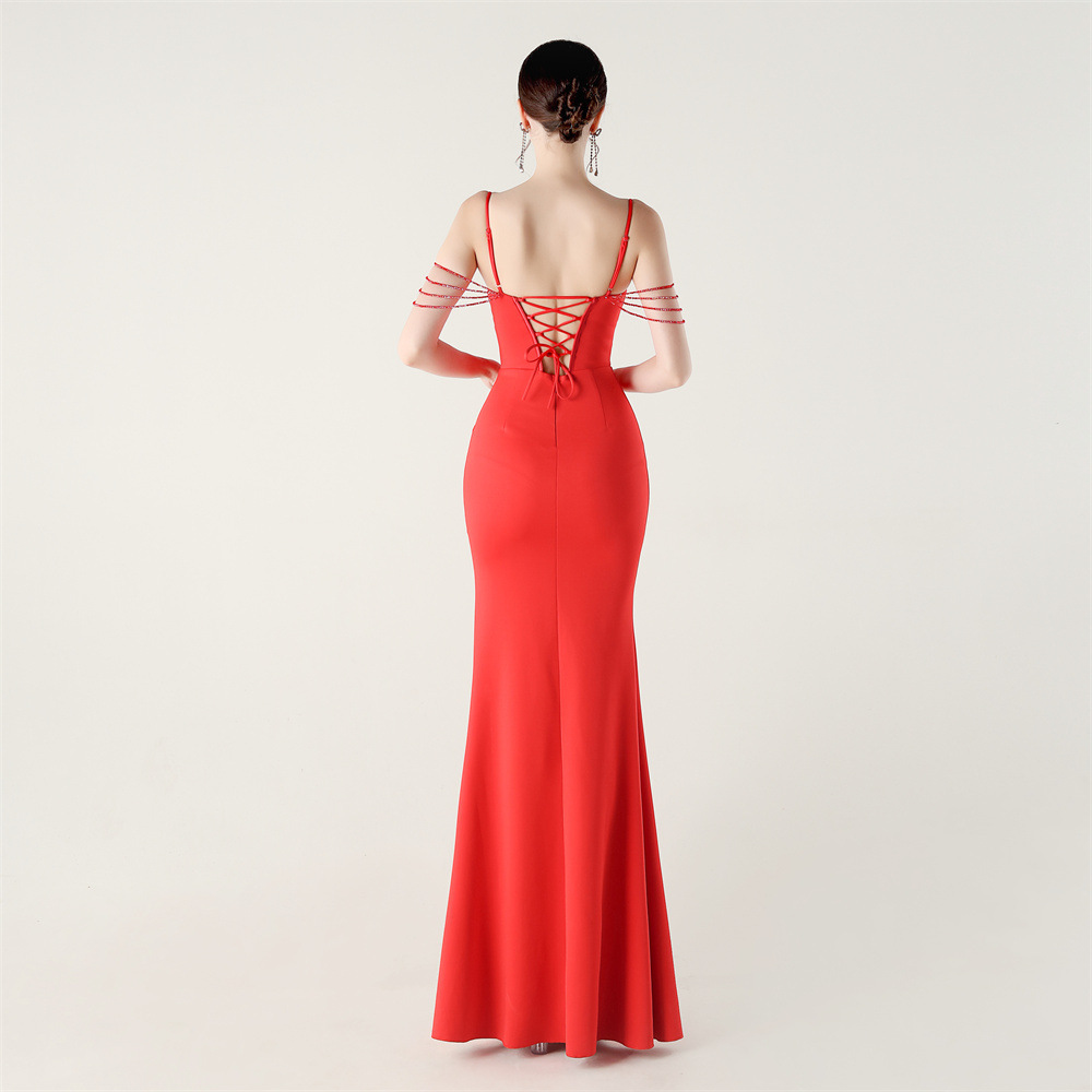 This Women Beaded Fishbone Lace-Up Party Evening Dress Design Made Of Good Quality Polyester And Spandex Material, Which Is Stretchy, Durable And Comfortable. The Long Evening Dresses And Gowns Is Always The main Choice For All Kinds Of Parties, Cocktail, Prom, Events, And Dating Occasions. Evening Gowns At BamBam Comes With Huge Selections - Sequins, Beaded, Satin, Velvet, Lace.... When You Need retail Evening Dresses, BamBam retail Women Garment Online Shop Is Your One-Stop Online Shopping Choice.