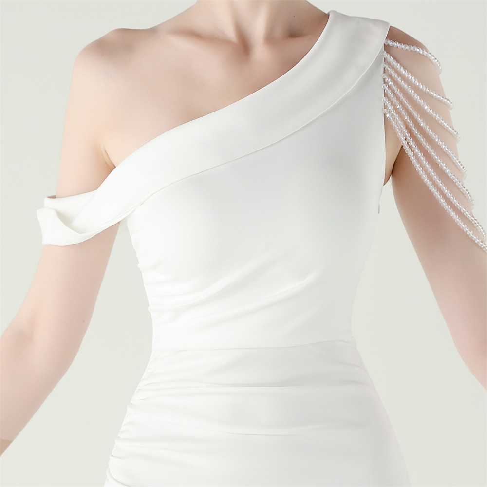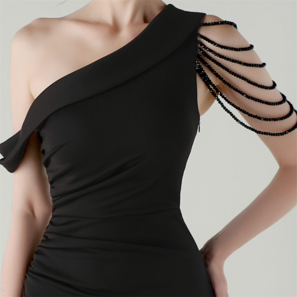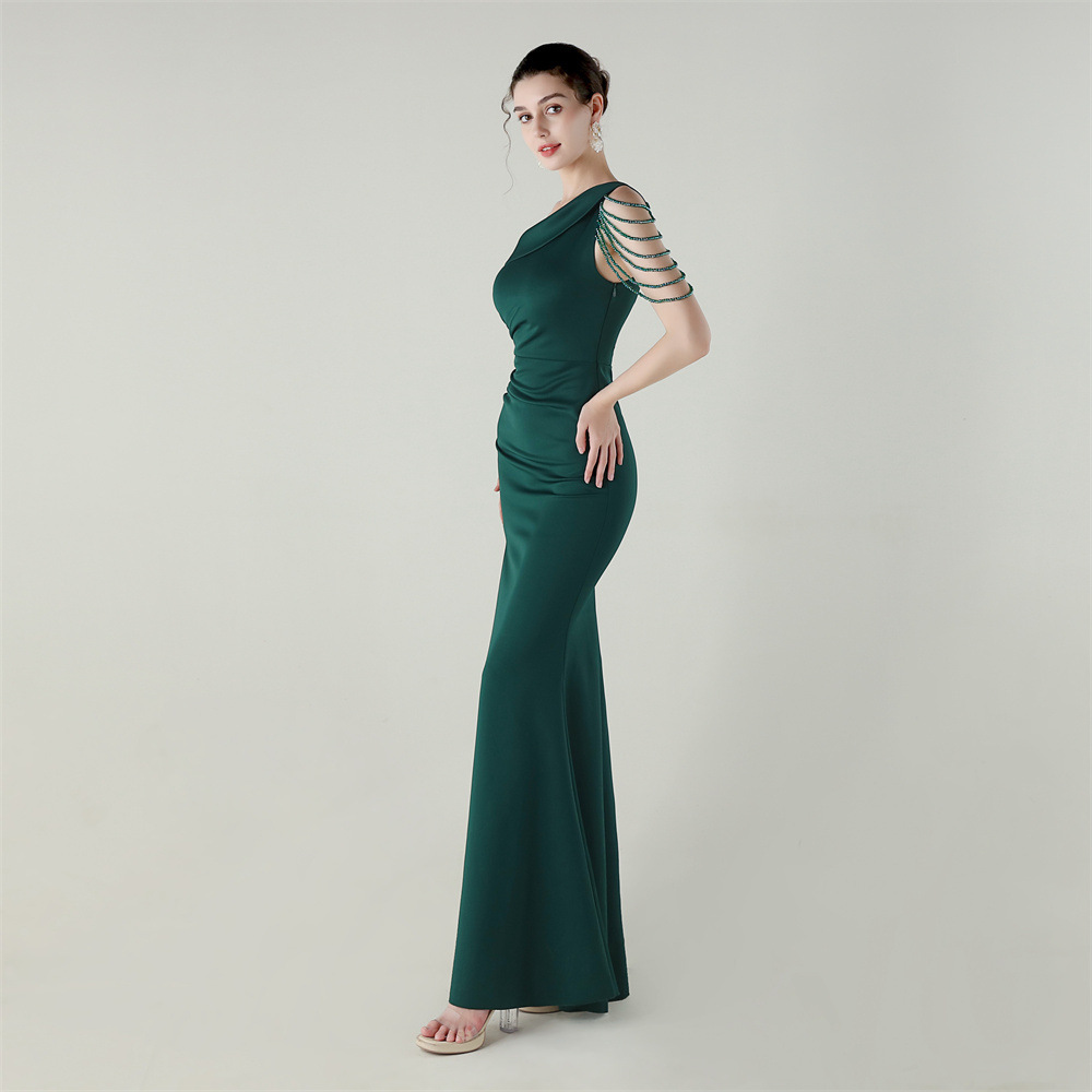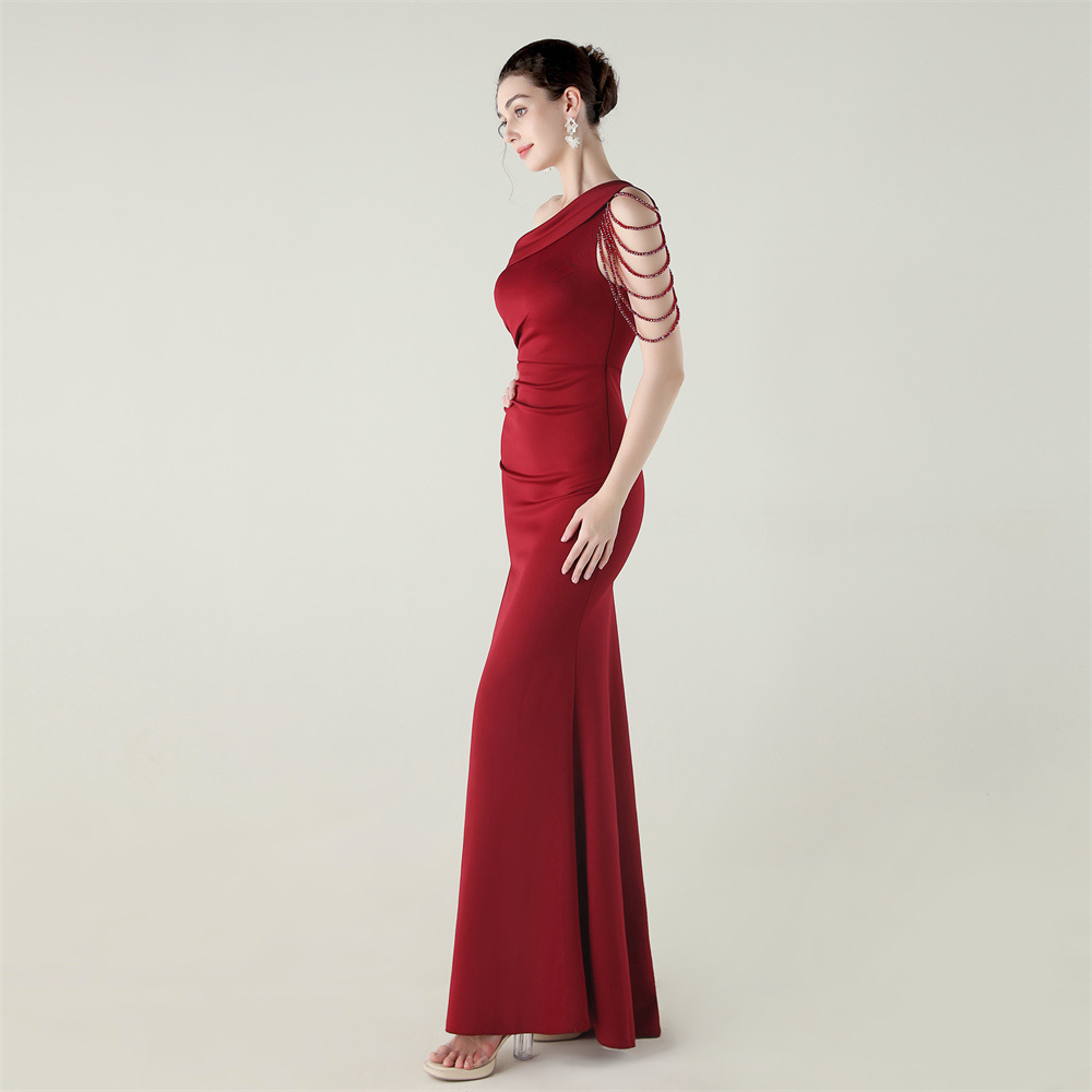 This Women Beaded One-Shoulder Satin Fishtail Pleated Evening Dress Design Made Of Good Quality Polyester And Spandex Material, Which Is Stretchy, Durable And Comfortable. The Long Evening Dresses And Gowns Is Always The main Choice For All Kinds Of Parties, Cocktail, Prom, Events, And Dating Occasions. Evening Gowns At BamBam Comes With Huge Selections - Sequins, Beaded, Satin, Velvet, Lace.... When You Need retail Evening Dresses, BamBam retail Women Garment Online Shop Is Your One-Stop Online Shopping Choice.