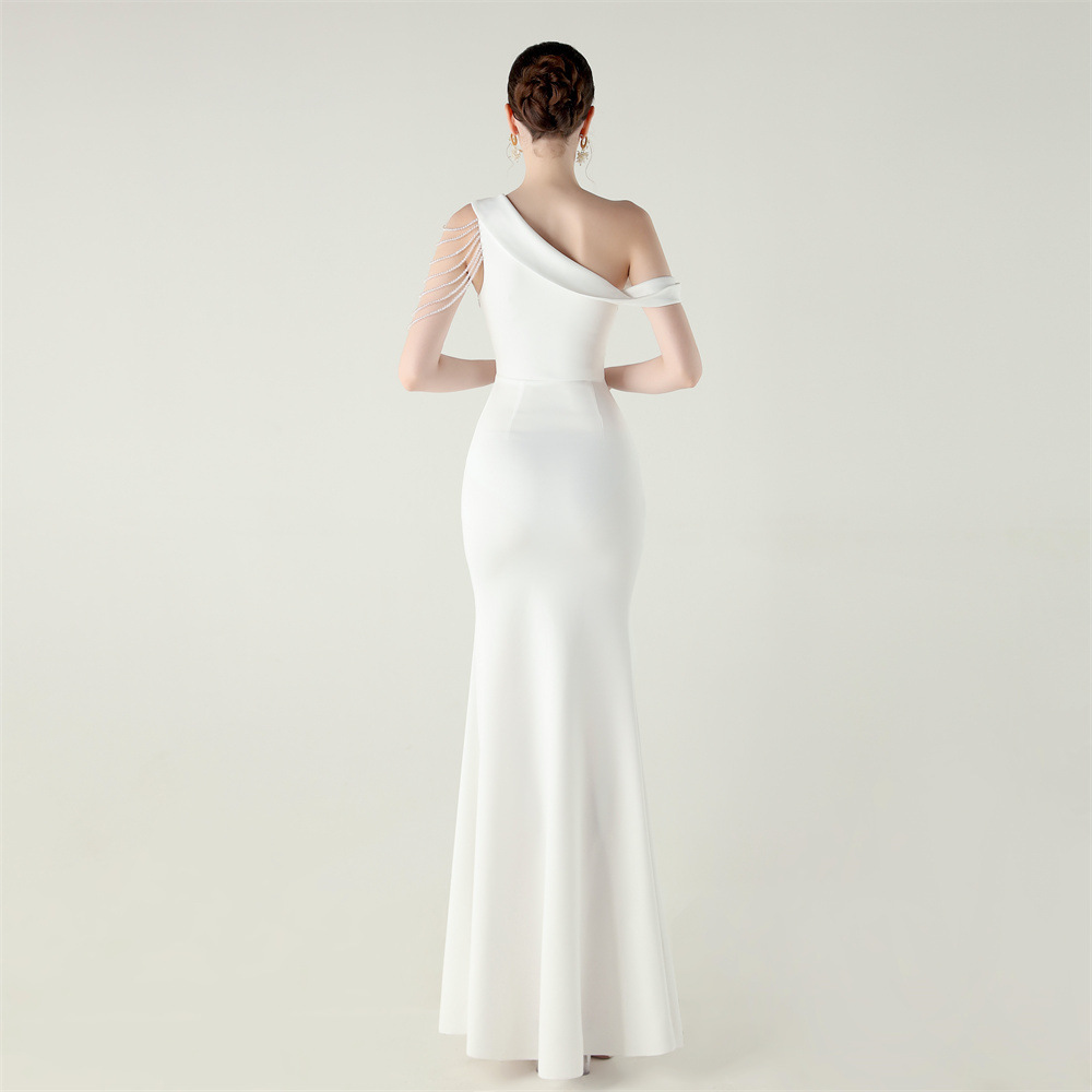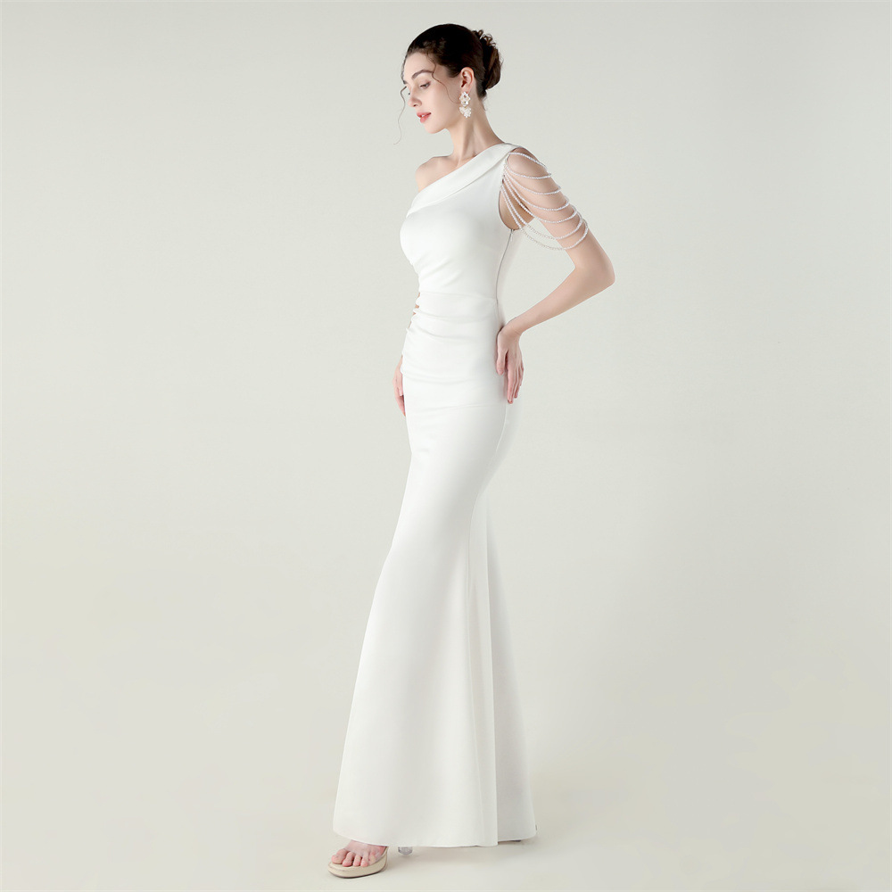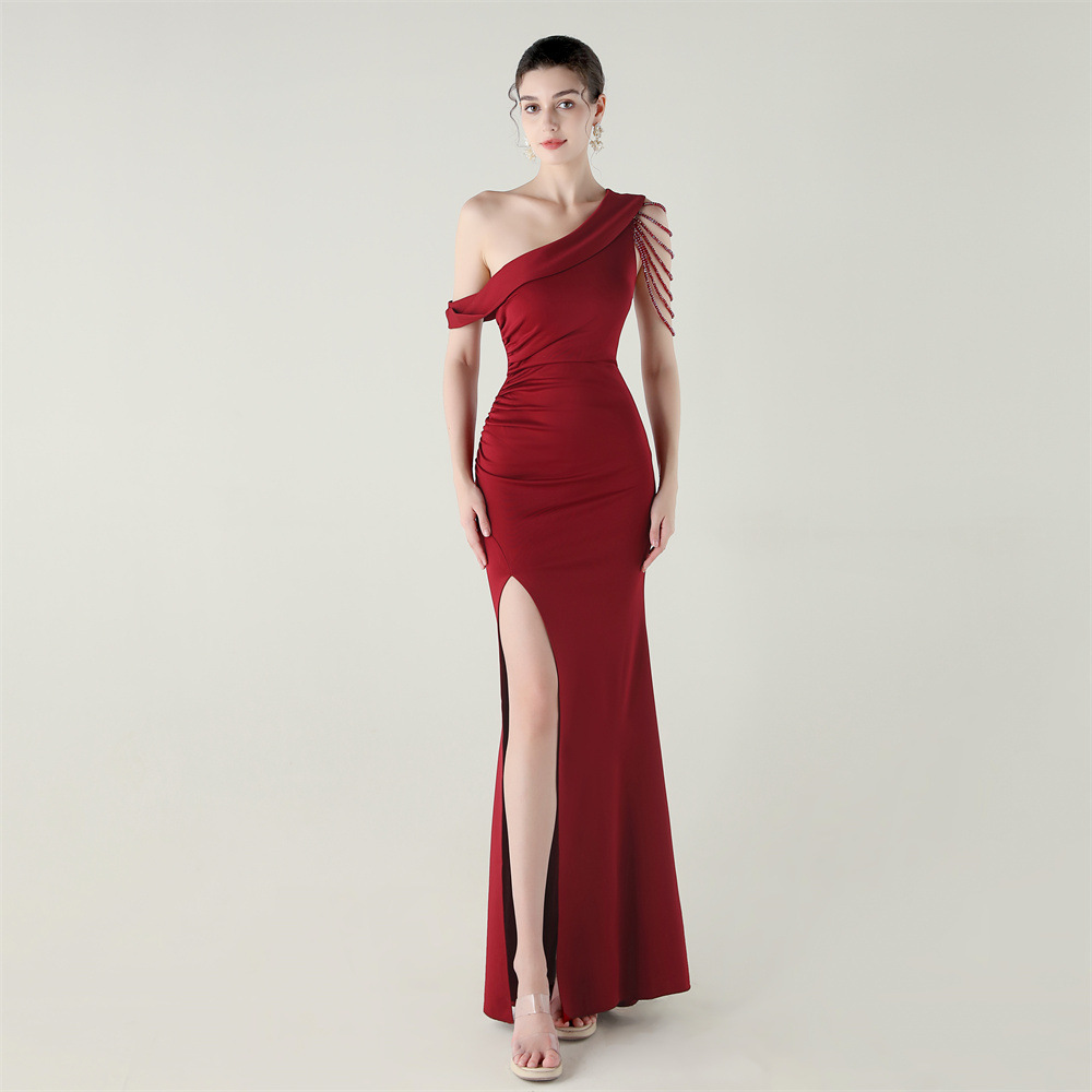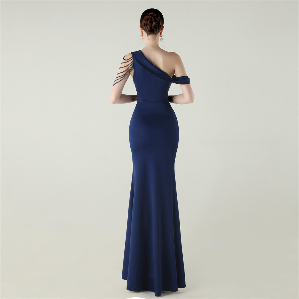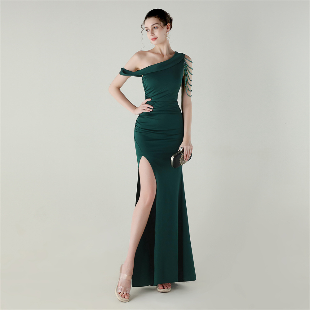 This Women Beaded One-Shoulder Satin Fishtail Pleated Evening Dress Design Made Of Good Quality Polyester And Spandex Material, Which Is Stretchy, Durable And Comfortable. The Long Evening Dresses And Gowns Is Always The main Choice For All Kinds Of Parties, Cocktail, Prom, Events, And Dating Occasions. Evening Gowns At BamBam Comes With Huge Selections - Sequins, Beaded, Satin, Velvet, Lace.... When You Need retail Evening Dresses, BamBam retail Women Garment Online Shop Is Your One-Stop Online Shopping Choice.