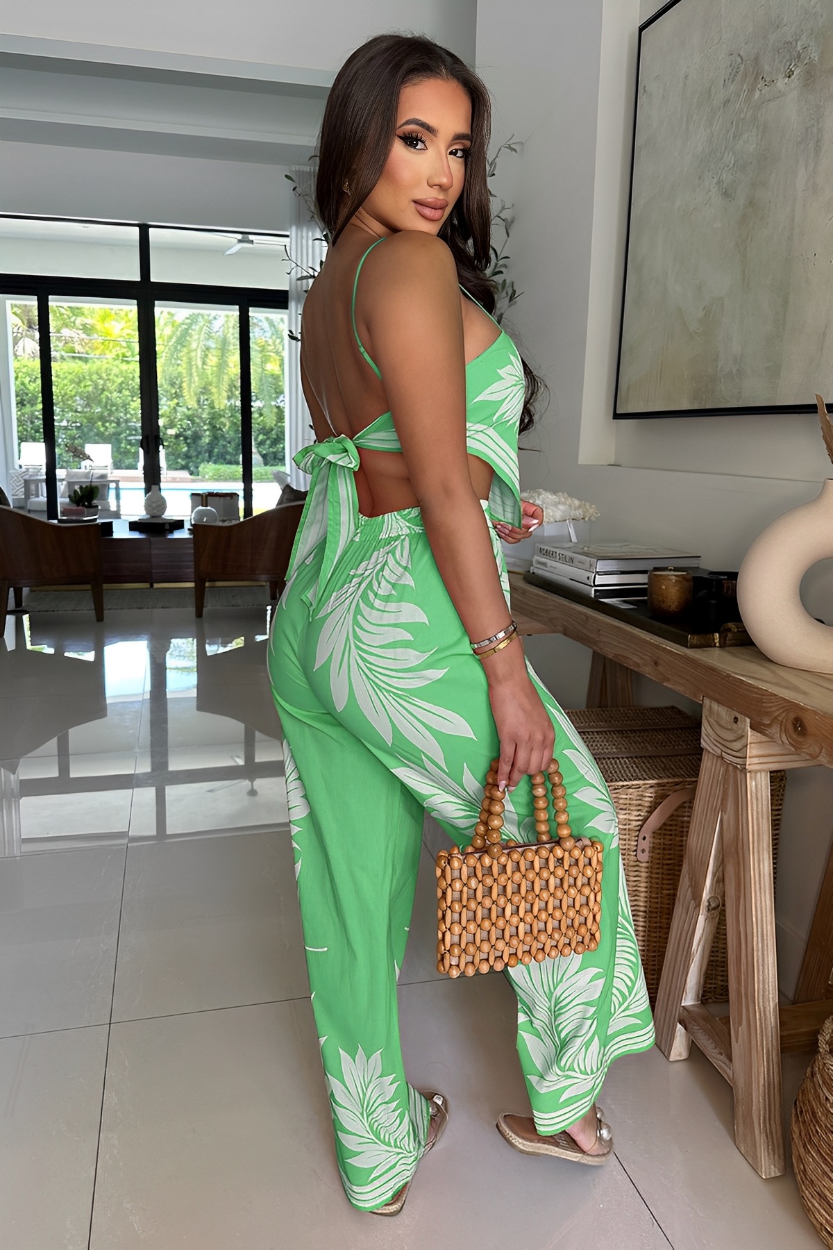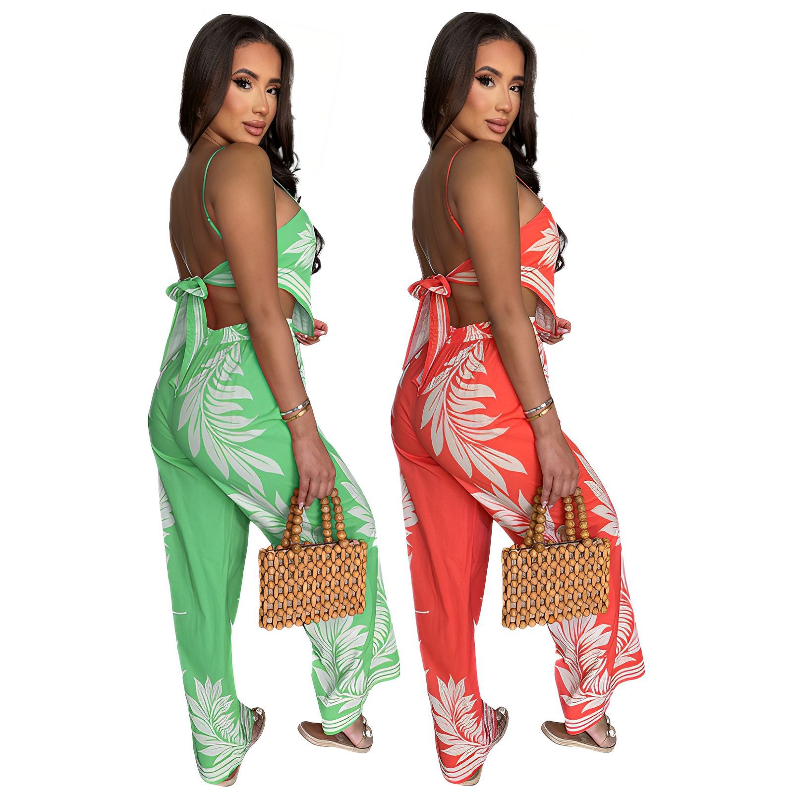 This Women Bikini Printed Sexy Wrap Top And Pant Two-Piece Set Design Made Of High Quality polyester And Spandex Material. It Is Stretchy, Durable And Comfortable. It Is a Must-Have Outfit For All Seasons. retail Two Piece Pant Sets Can Solve Your cloth selection Troubles. Explore More 2 Piece Pants Set On BamBam retail Women Clothing Online Store.