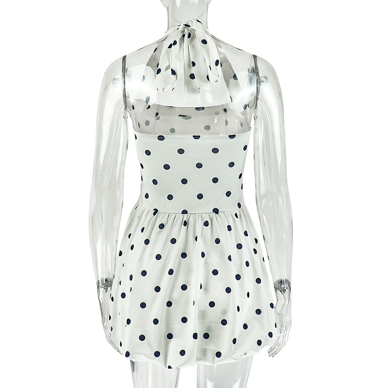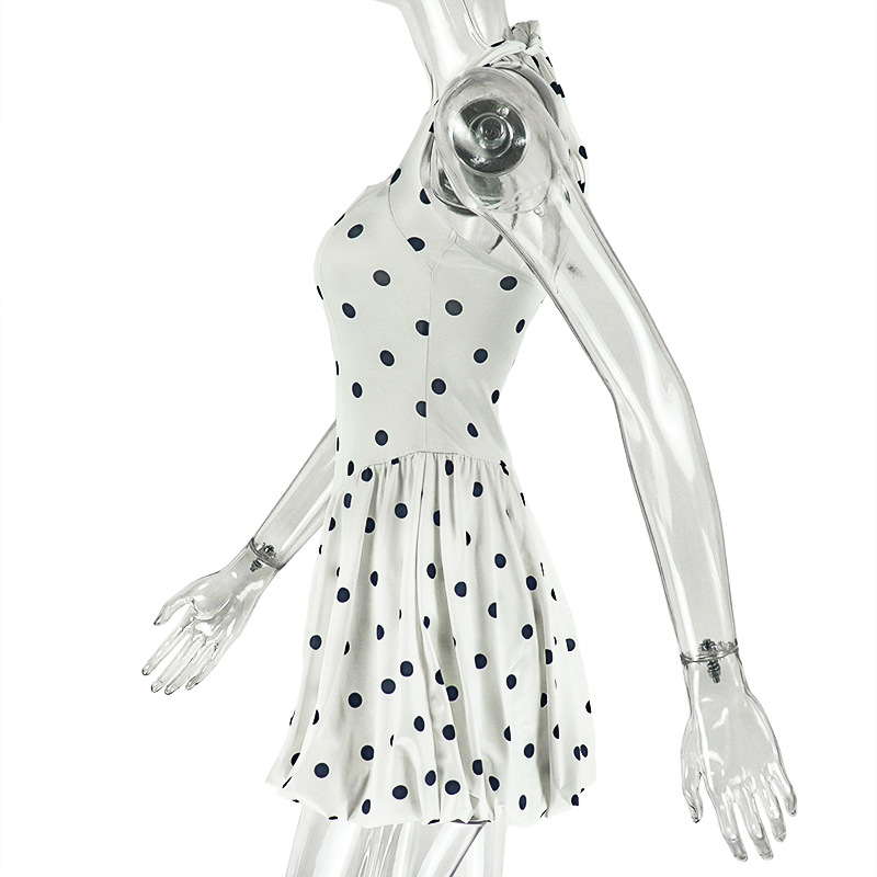 This Women Black And White Polka Dot Pleated Halter Neck Sleeveless Dress Design Made Of High Quality polyester And Spandex Material. It Is Stretchy, Durable And Comfortable. Casual Dresses With Long Sleeves Can Not Only Be Worn As Outerwear In Spring And Autumn, But Also Matching a Jacket In Winter, It Is a Must Have Item For Every Season. Grab Really Great Buy Casual Dresses For Women And Grow Your Business. No Moq In BamBam.