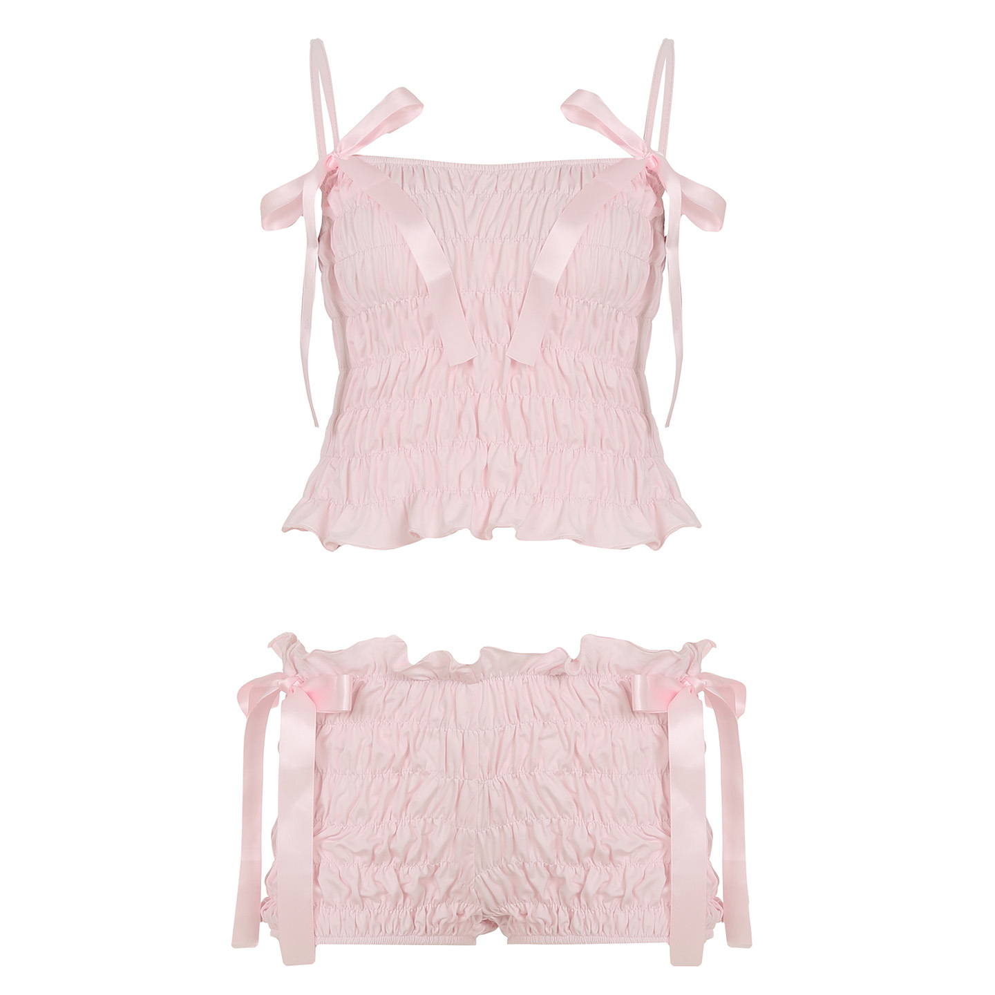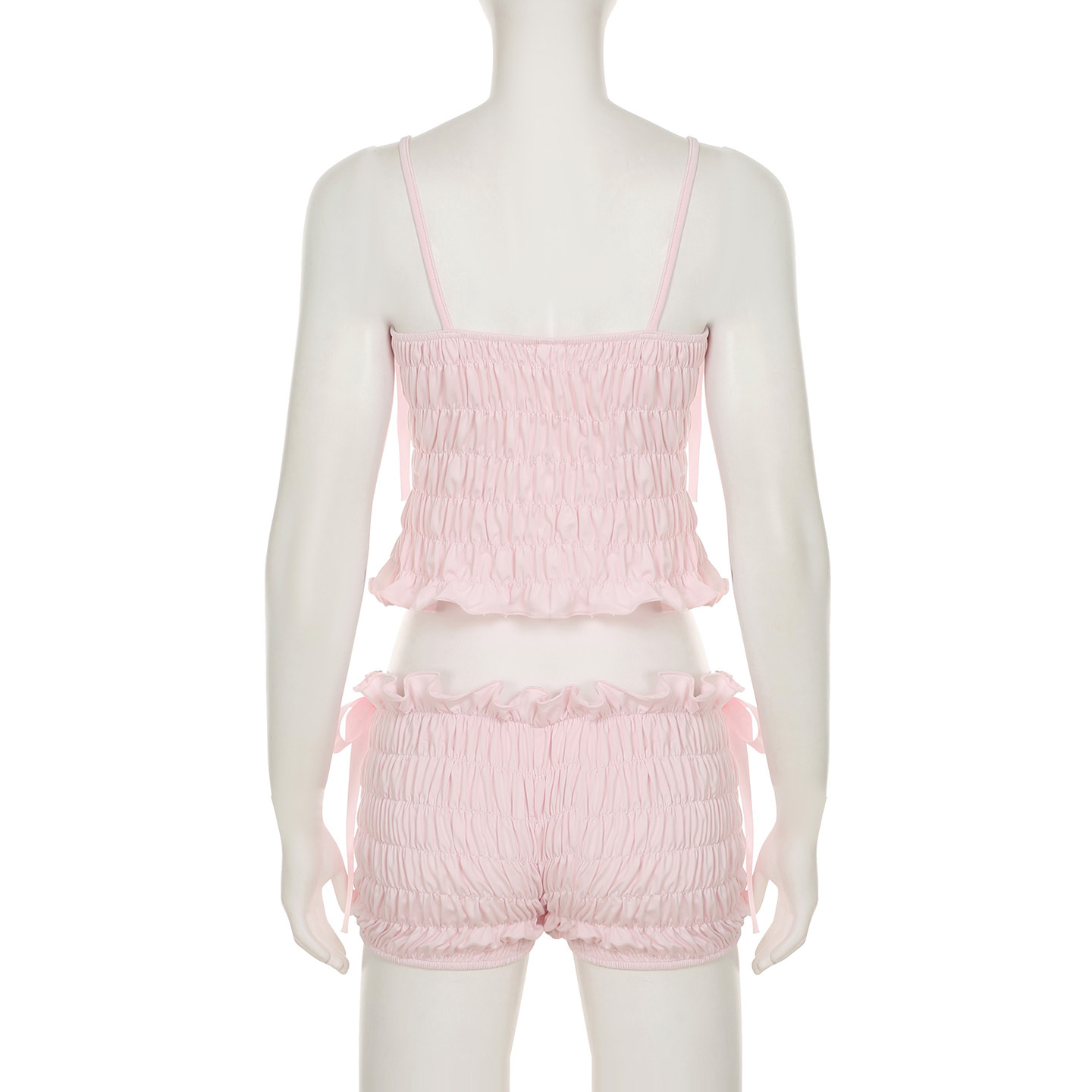 This Women Bow Pleated Camisole Shorts Two-Piece Set Design Made Of High Quality polyester And Spandex Material. It Is Stretchy, Durable And Comfortable. It Come With The Top And Shorts. retail Short Sets Saves Some People From The Trouble Of Matching. And For Matchmakers It Is More Flexible Than One-Piece Outfit. Two Piece Short Set Can Be Worn Together Or Individually, Ladies Can Match Them According To Different Occasions. Grab Different Two Piece Short Sets For This Spring And Summer.