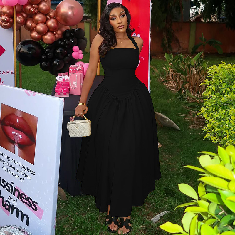 This Women Career Pleated Halter Neck Sleeveless Solid Maxi Dress Design Made Of High Quality polyester And Spandex Material, Which Is Stretchy, Soft And Comfortable. It's Always On Trend. This Casual Maxi Dresses Is a Must-Have For Vocations And Dating Occasions. Maxi Dresses At BamBam Comes With Huge Selections Of Colors, Sizes, Material, And Designs. When You Need retail affordable Maxi Dresses, You Can Always Find Vary Collection And No Moq On Our retail Women Fashion Online Store.