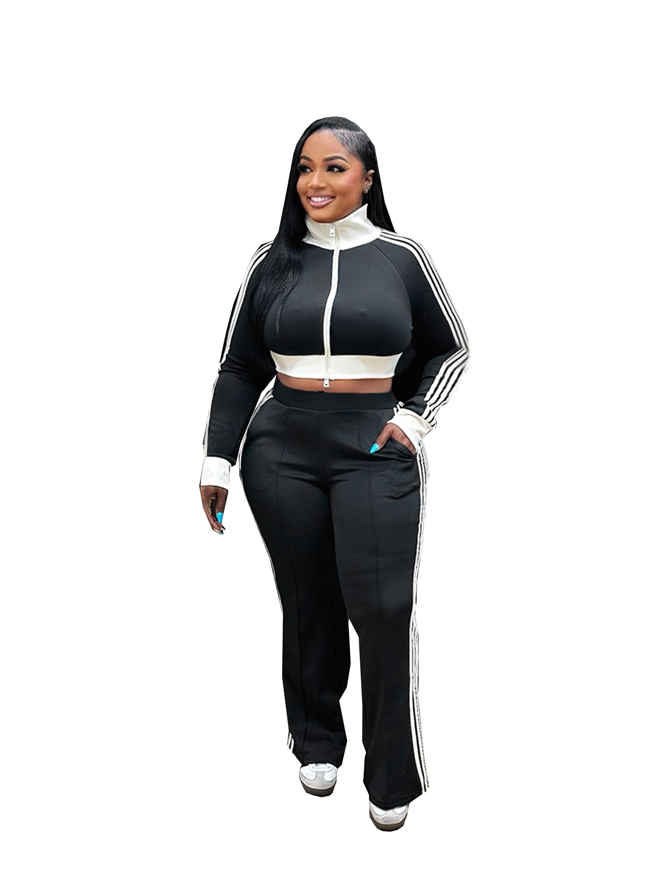 This Women Casual Contrast Color Zipper Long-Sleeved Crop Top And Pants Two-Piece Set Design Made Of Durable And Stretch Fabric. It Is a Must-Have Sportswear For Outdoor And Active. BamBam Offer a Rich Selection Of Women Tracksuits And Sweatsuits. You Will Find Wide Range Colors, Prints, And Designs retail Tracksuits With BamBam Whether For Sports Or Lazy Weekend. When You Need More retail Fitness Clothing, You Can Always Find What You Need On Our retail Women Gym Wear Online Store.