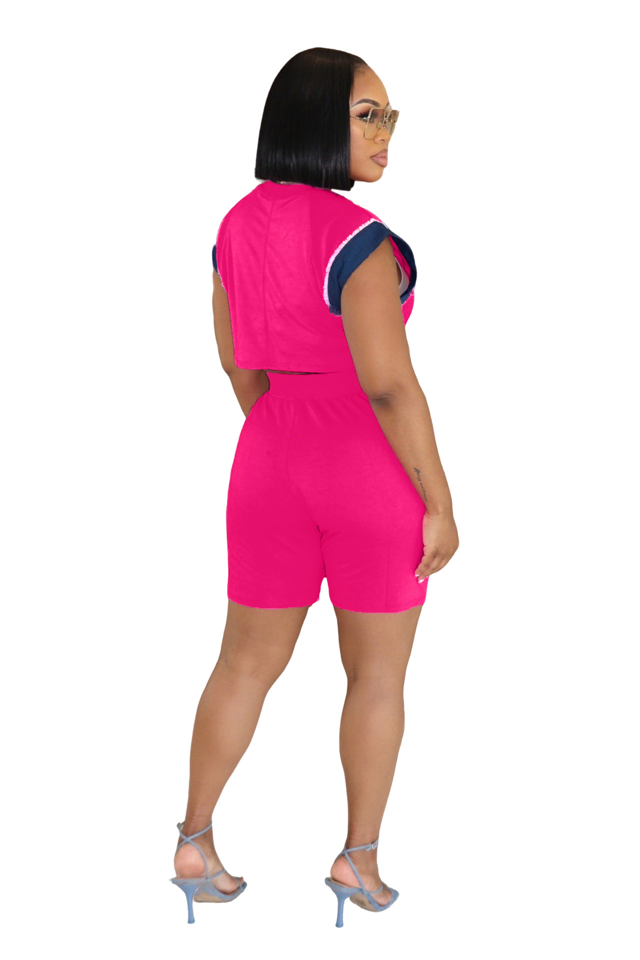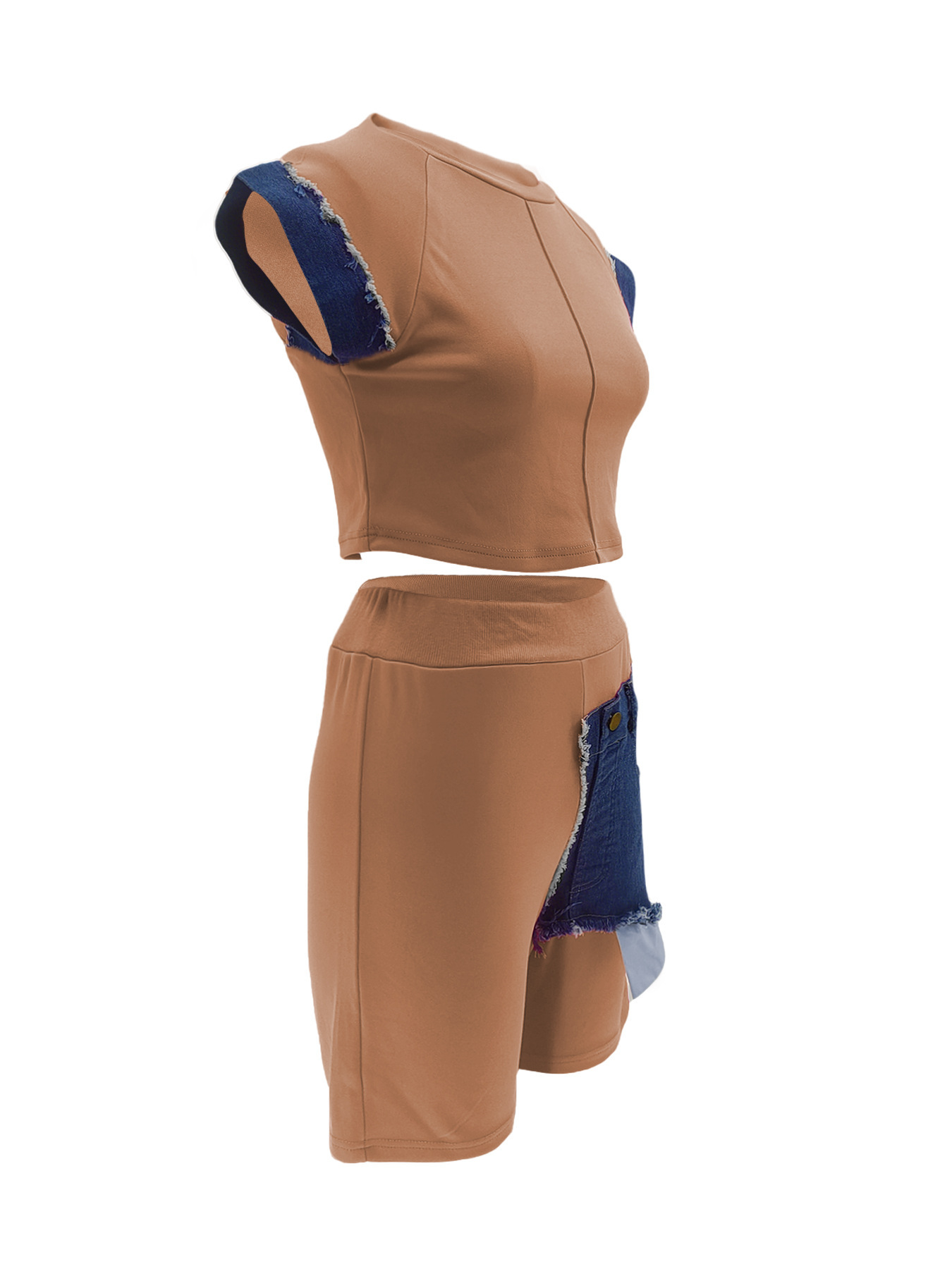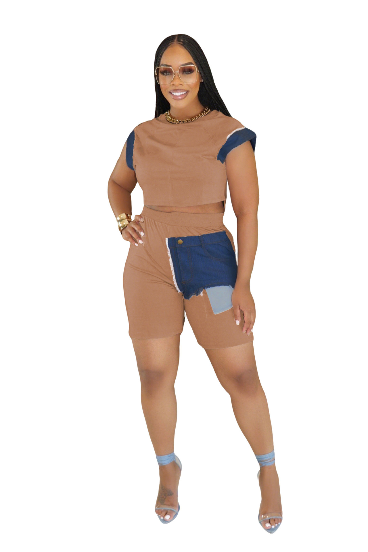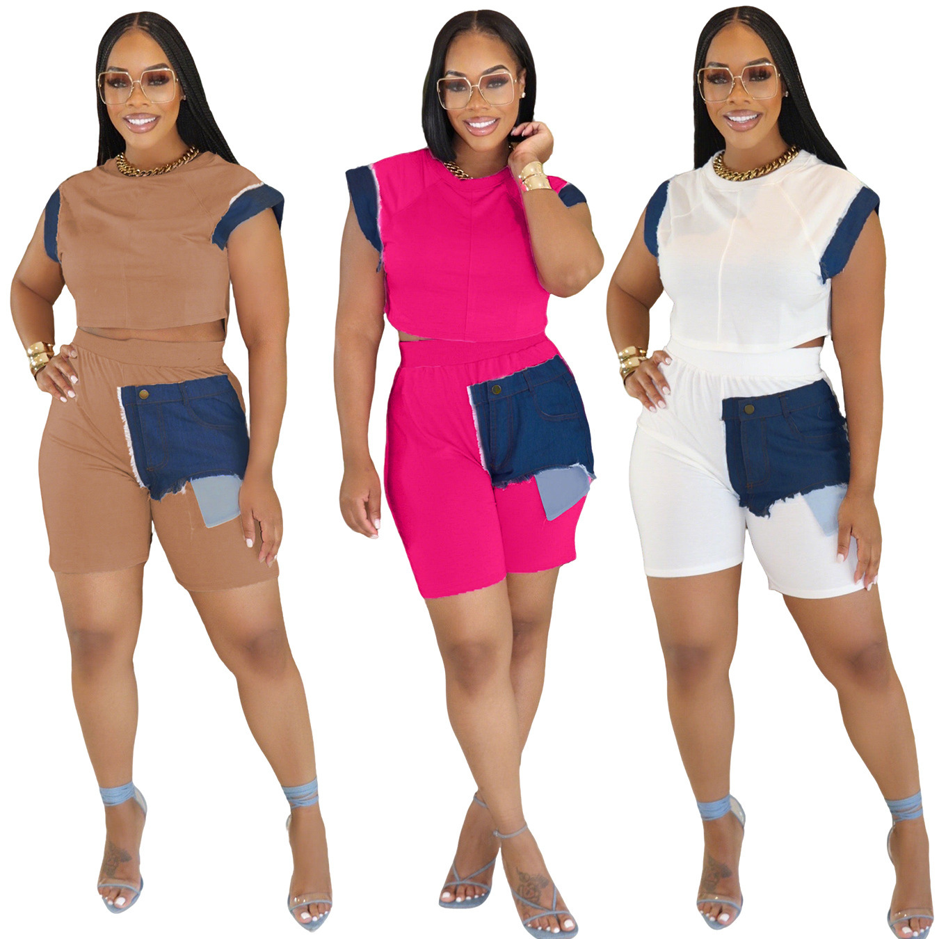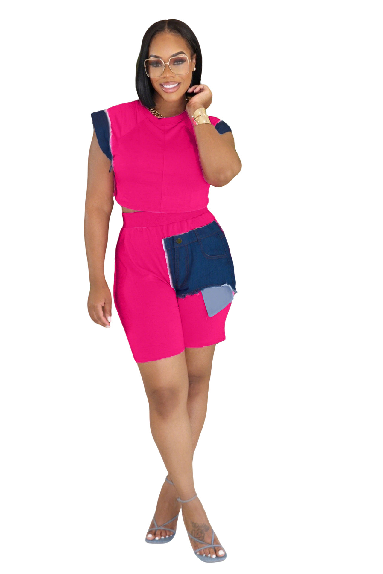 This Women Casual Denim Patchwork Short-Sleeved Top And Shorts Two-Piece Set Design Made Of High Quality polyester And Spandex Material. It Is Stretchy, Durable And Comfortable. It Come With The Top And Shorts. retail Short Sets Saves Some People From The Trouble Of Matching. And For Matchmakers It Is More Flexible Than One-Piece Outfit. Two Piece Short Set Can Be Worn Together Or Individually, Ladies Can Match Them According To Different Occasions. Grab Different Two Piece Short Sets For This Spring And Summer.