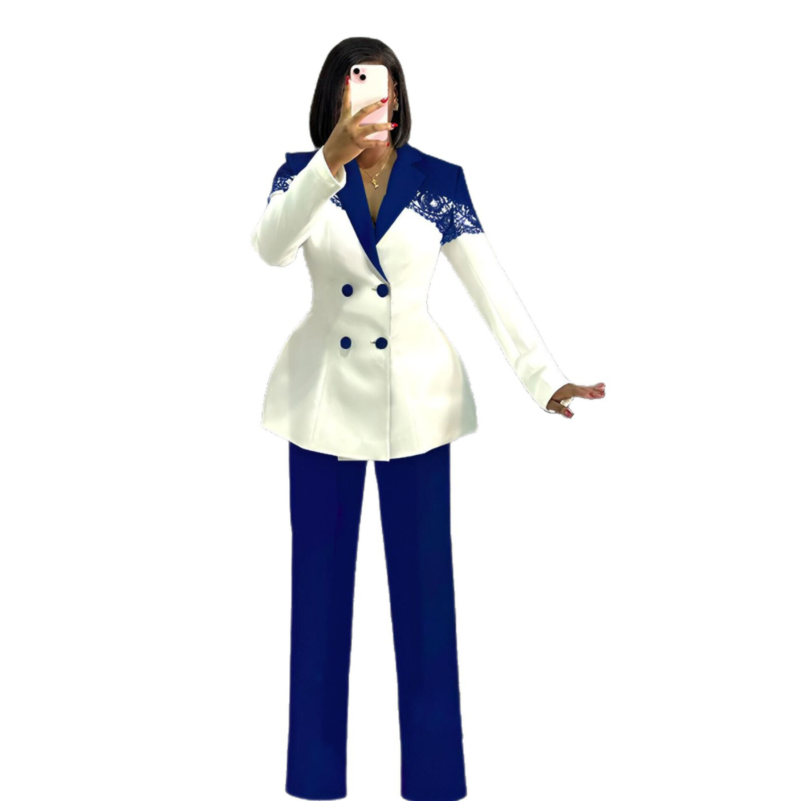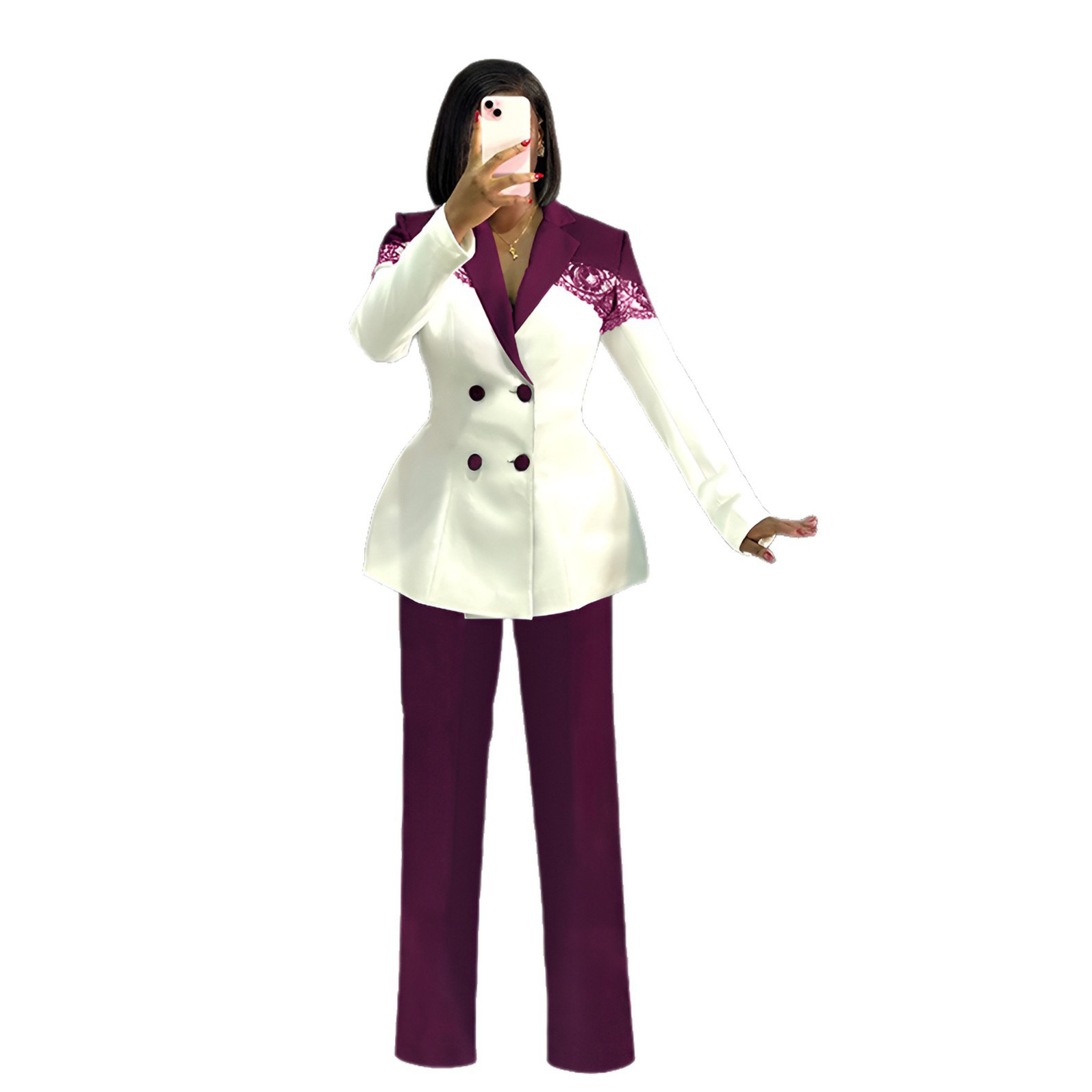 This Women Casual Elegant Lace Patchwork Blazer And Pant Two-Piece Set Made Of Durable And Comfortable Material. It Is a Must-Have Item For Commuting And Events. Ladies Blazer Can Be Found In All Seasons And All Occasions. No One Can Refuse The Temptation Of Blazers. Blazers Are No Longer Just Suitable For Business Occasions, Casual And Loose Cut Style Cheap retail Women’s Blazer Jackets Can Be Worn daily. Blazer Matching Women’s Pants Suits Looks More Business-Friendly And Can Be Worn To Work And Formal Occasions. When You Need More retail Women Blazers And Blazer Sets, You Can Always Find What You Need On Our retail Women Clothing Online Store.