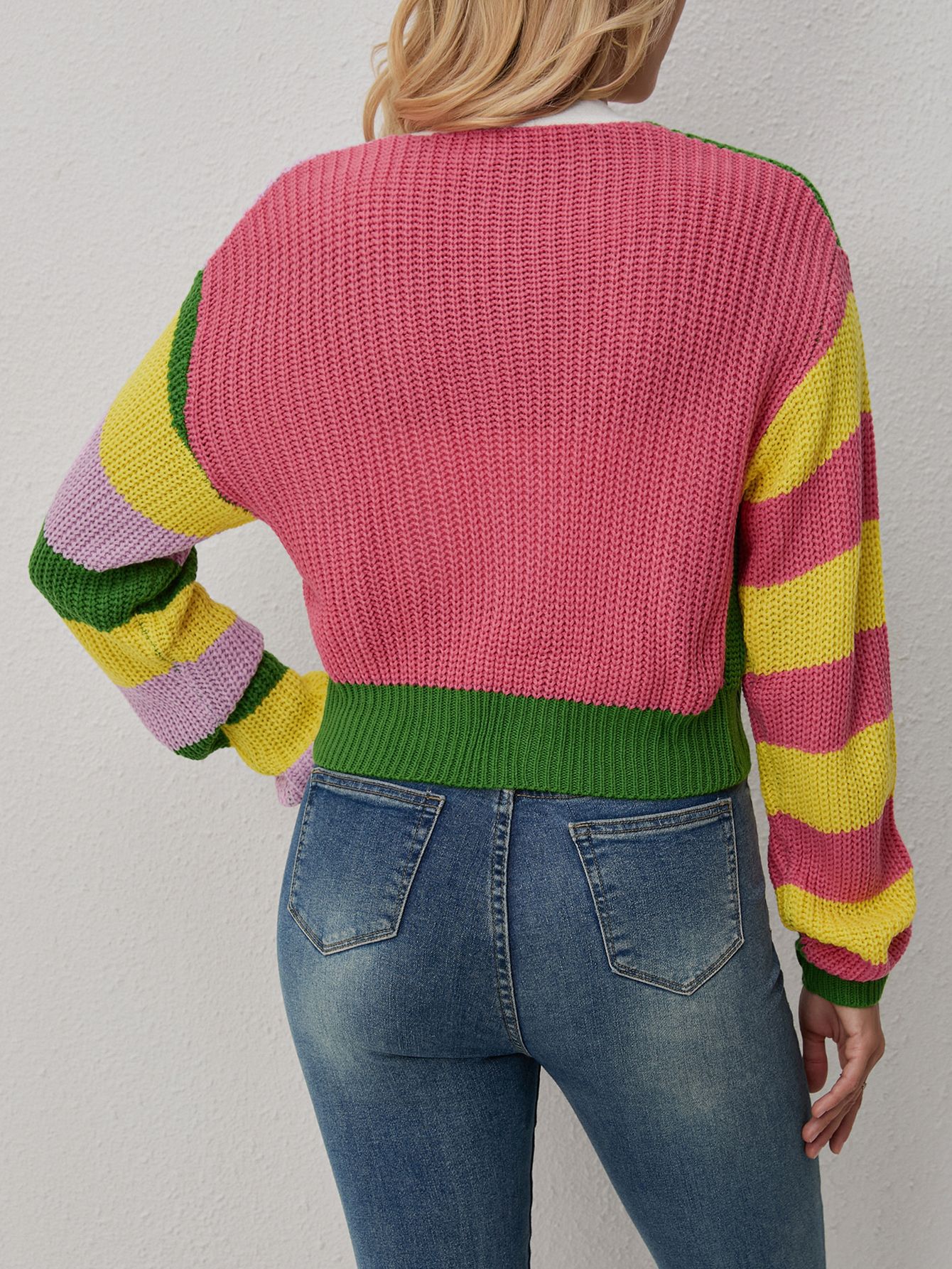 This Women Casual Multi-Color Letter Sweater Stripe Contrast Button Long-Sleeved Cropped Jacket Is An Indispensable Beautiful piece to have to keep warm In Cozy Winter. Women’s retail Sweaters And Cardigans At BamBam Combine warmth with Fashion. Best Oversized Sweaters Have Long Been The main Favorite. It’s So Easy To Match a Large Sweater, Sometimes The Coat Can Be Ignored. Oversized Sweater With Short Skirt Is Dignified And Attractive. Oversized Sweater With Skirt Is Elegant And Sweet. Oversized Sweaters With Over-The-Knee Boots Can Easily Create a Sense Of Maturity And Femininity. Oversized Sweaters Paired With Shorts Are Full Of Youthful Vitality And Look More Dynamic And Energetic!