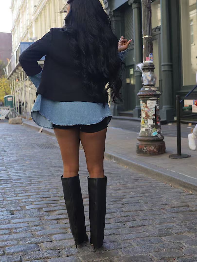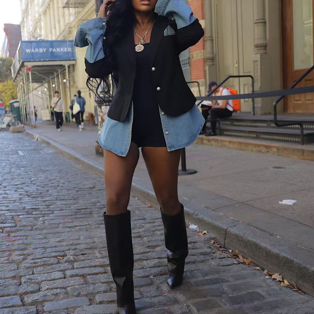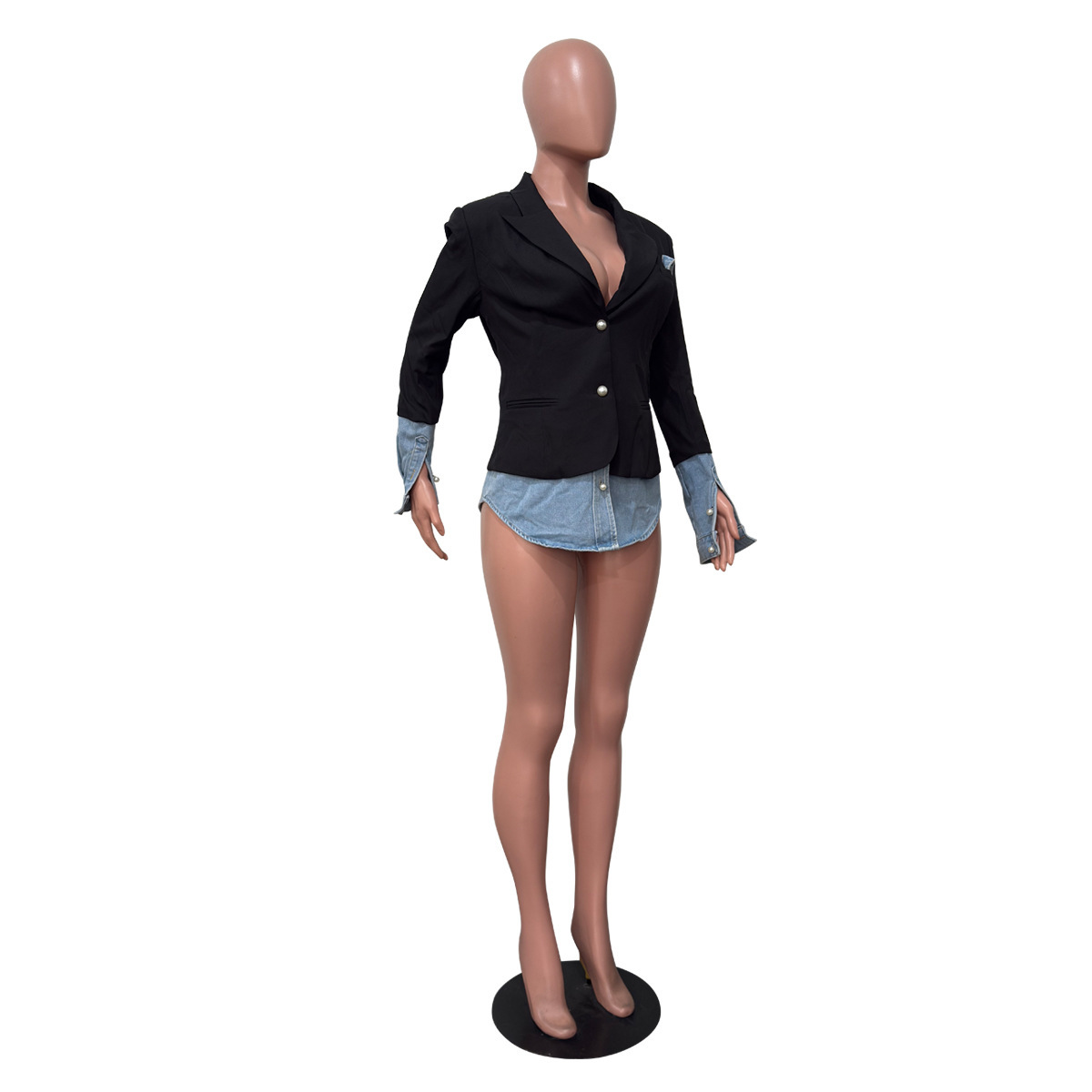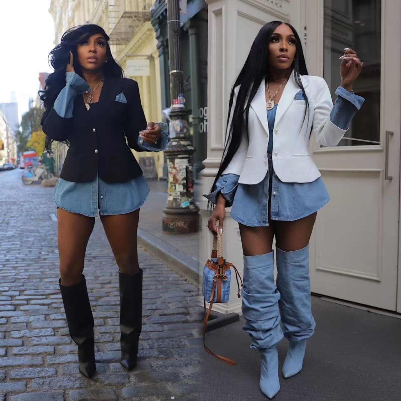This Women Casual Patchwork Denim Blazer Jacket Made Of Durable And Comfortable Material. It Is a Must-Have Item For Commuting And Events. Ladies Blazer Can Be Found In All Seasons And All Occasions. No One Can Refuse The Temptation Of Blazers. Blazers Are No Longer Just Suitable For Business Occasions, Casual And Loose Cut Style Cheap retail Women’s Blazer Jackets Can Be Worn daily. Blazer Matching Women’s Pants Suits Looks More Business-Friendly And Can Be Worn To Work And Formal Occasions. When You Need More retail Women Blazers And Blazer Sets, You Can Always Find What You Need On Our retail Women Clothing Online Store.
