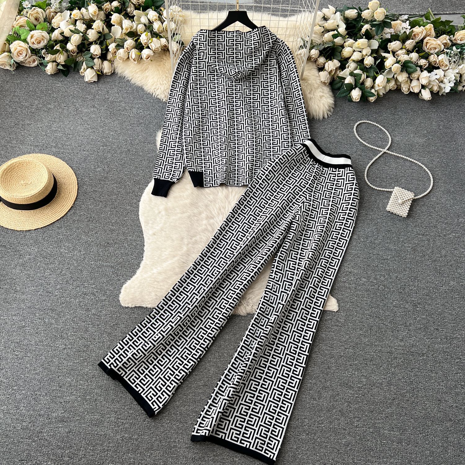This Women Casual Printed Long Sleeve Hooded Knitting Top + Wide Leg Pants Two-Piece Set Design Made Of High Quality polyester And Spandex Material. It Is Stretchy, Durable And Comfortable. It Is a Must-Have Outfit For All Seasons. retail Two Piece Pant Sets Can Solve Your cloth selection Troubles. Explore More 2 Piece Pants Set On BamBam retail Women Clothing Online Store.
