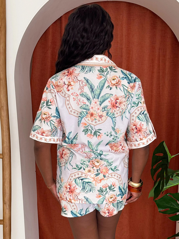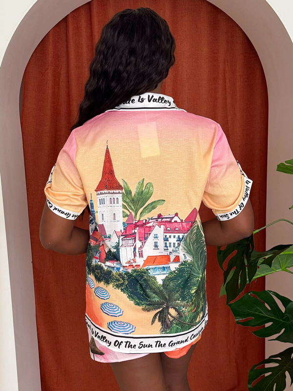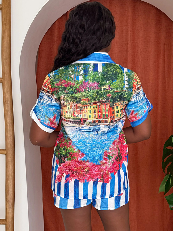 This Women Casual Printed Short-Sleeved Shirt And Shorts Two-Piece Set Design Made Of High Quality polyester And Spandex Material. It Is Stretchy, Durable And Comfortable. It Come With The Top And Shorts. retail Short Sets Saves Some People From The Trouble Of Matching. And For Matchmakers It Is More Flexible Than One-Piece Outfit. Two Piece Short Set Can Be Worn Together Or Individually, Ladies Can Match Them According To Different Occasions. Grab Different Two Piece Short Sets For This Spring And Summer.