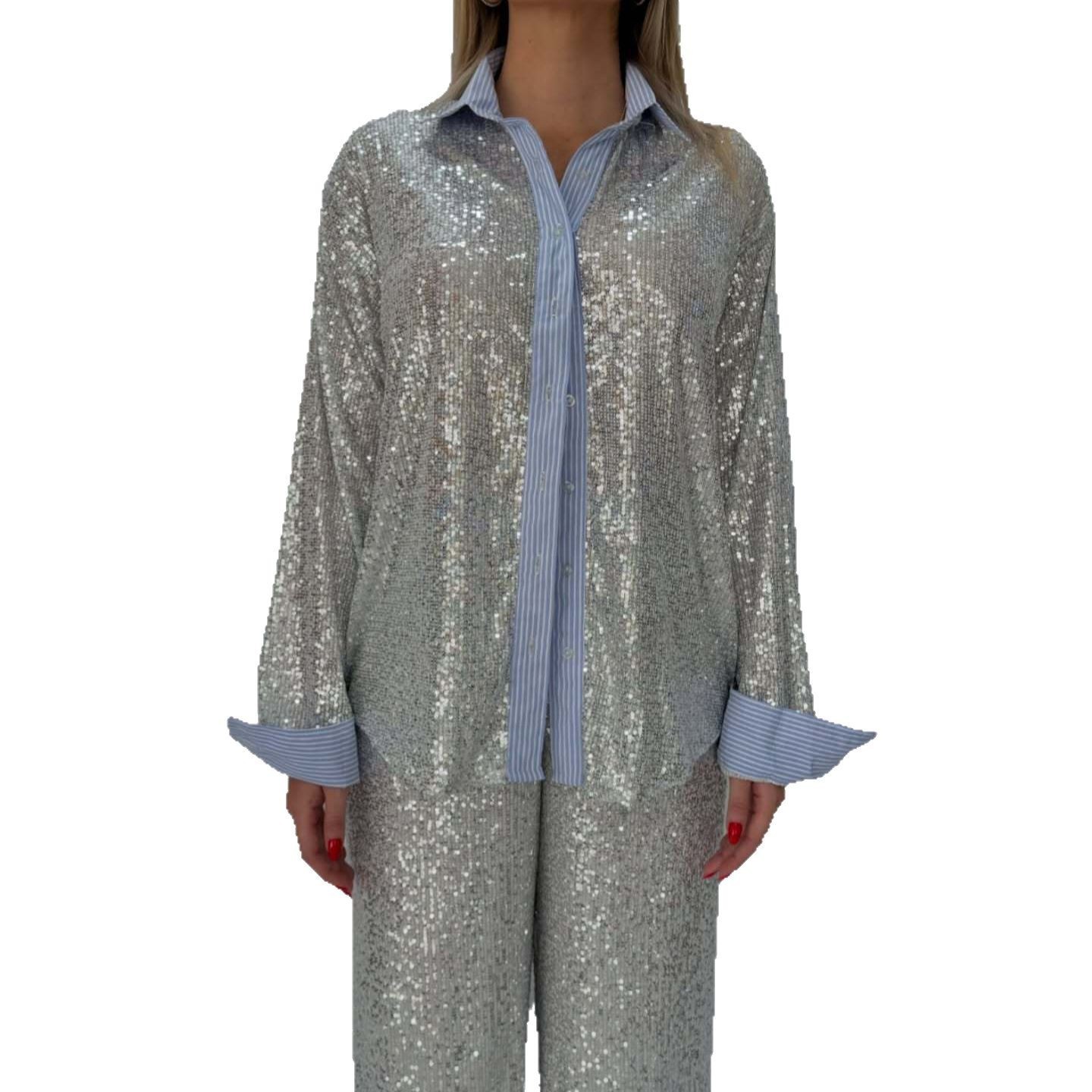This Women Casual Sequin Blazer And Wide-Leg Pants Two-Piece Set Design Made Of High Quality polyester And Spandex Material. It Is Stretchy, Durable And Comfortable. It Is a Must-Have Outfit For All Seasons. retail Two Piece Pant Sets Can Solve Your cloth selection Troubles. Explore More 2 Piece Pants Set On BamBam retail Women Clothing Online Store.