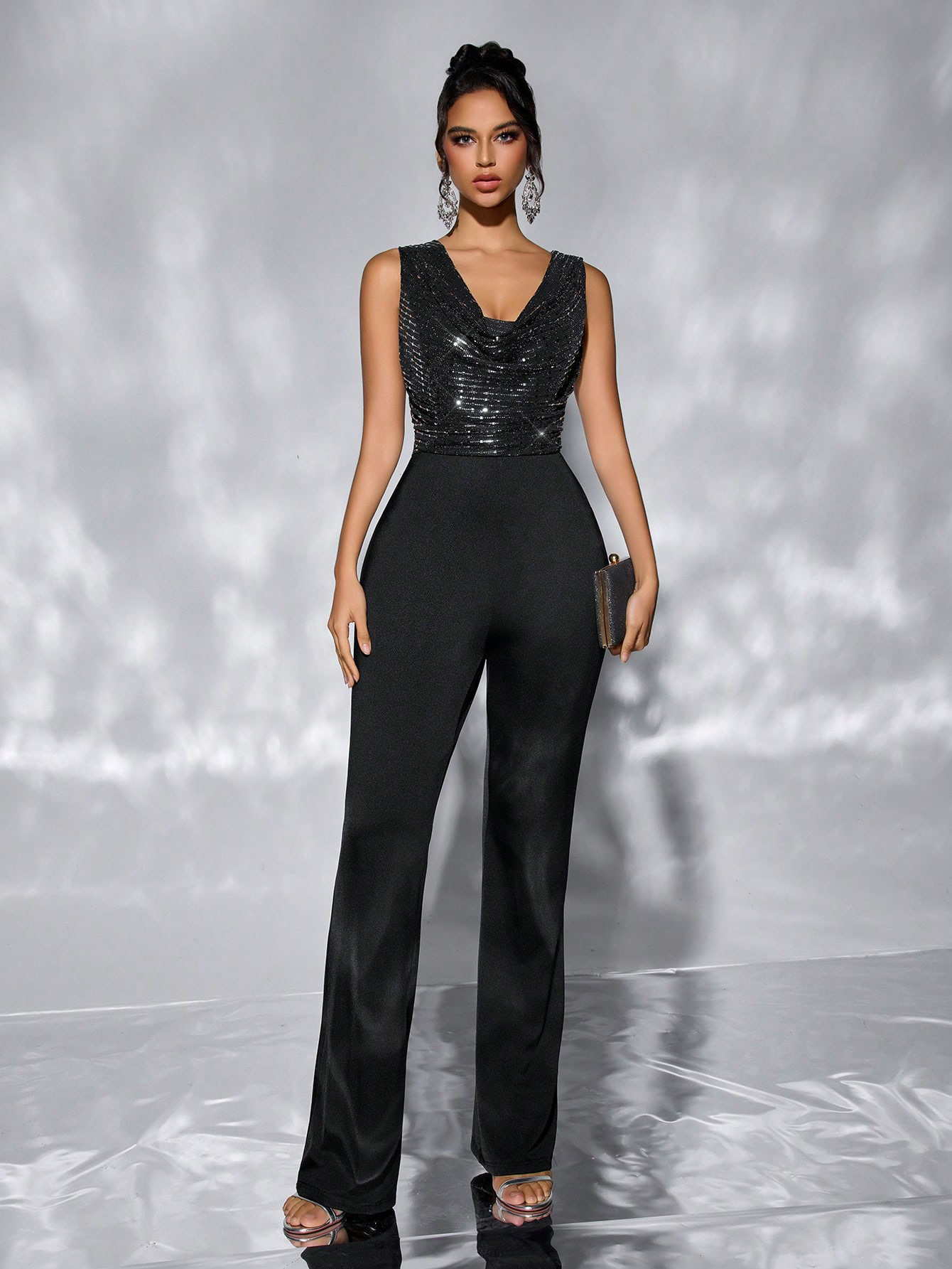 This Women Casual Sequin Wide Leg Jumpsuit Design Made Of High Quality Polyster And Spandex Material. It Is Stretchy, Durable And Comfortable. Affordable Sexy Jumpsuits For Women Has Long Been a Party Favorite. BamBam provides a Rich selection Of Sequin, Beaded, See Through Mesh, Leopard, Floral Lace, Leather, Velvet, Tight And Fitted retail Jumpsuit Without Moq Limit.
