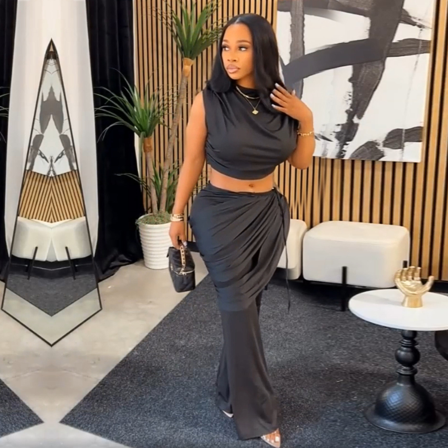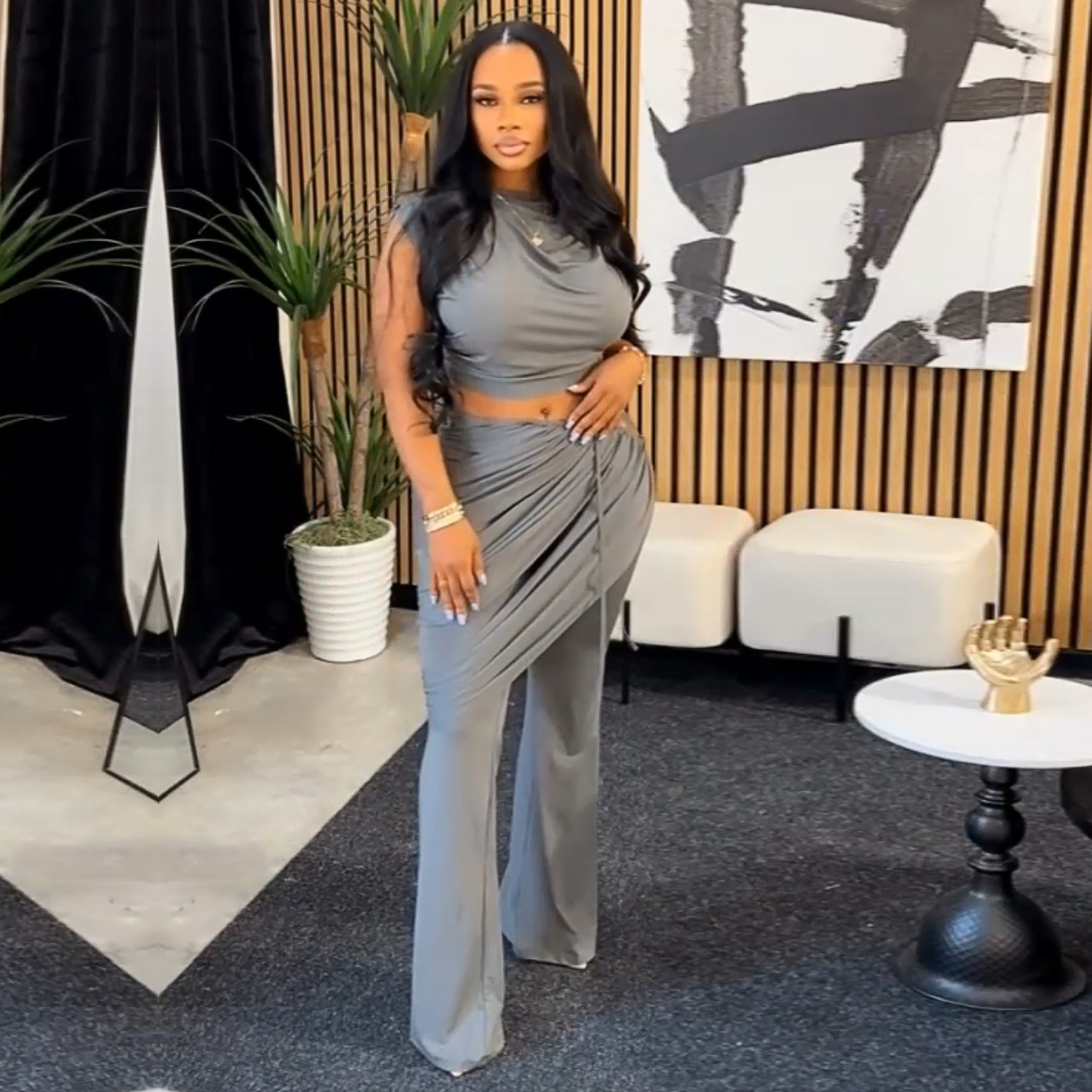 This Women Casual Sleeveless Crop Top And Two-Piece Pants Set Design Made Of High Quality polyester And Spandex Material. It Is Stretchy, Durable And Comfortable. It Is a Must-Have Outfit For All Seasons. retail Two Piece Pant Sets Can Solve Your cloth selection Troubles. Explore More 2 Piece Pants Set On BamBam retail Women Clothing Online Store.