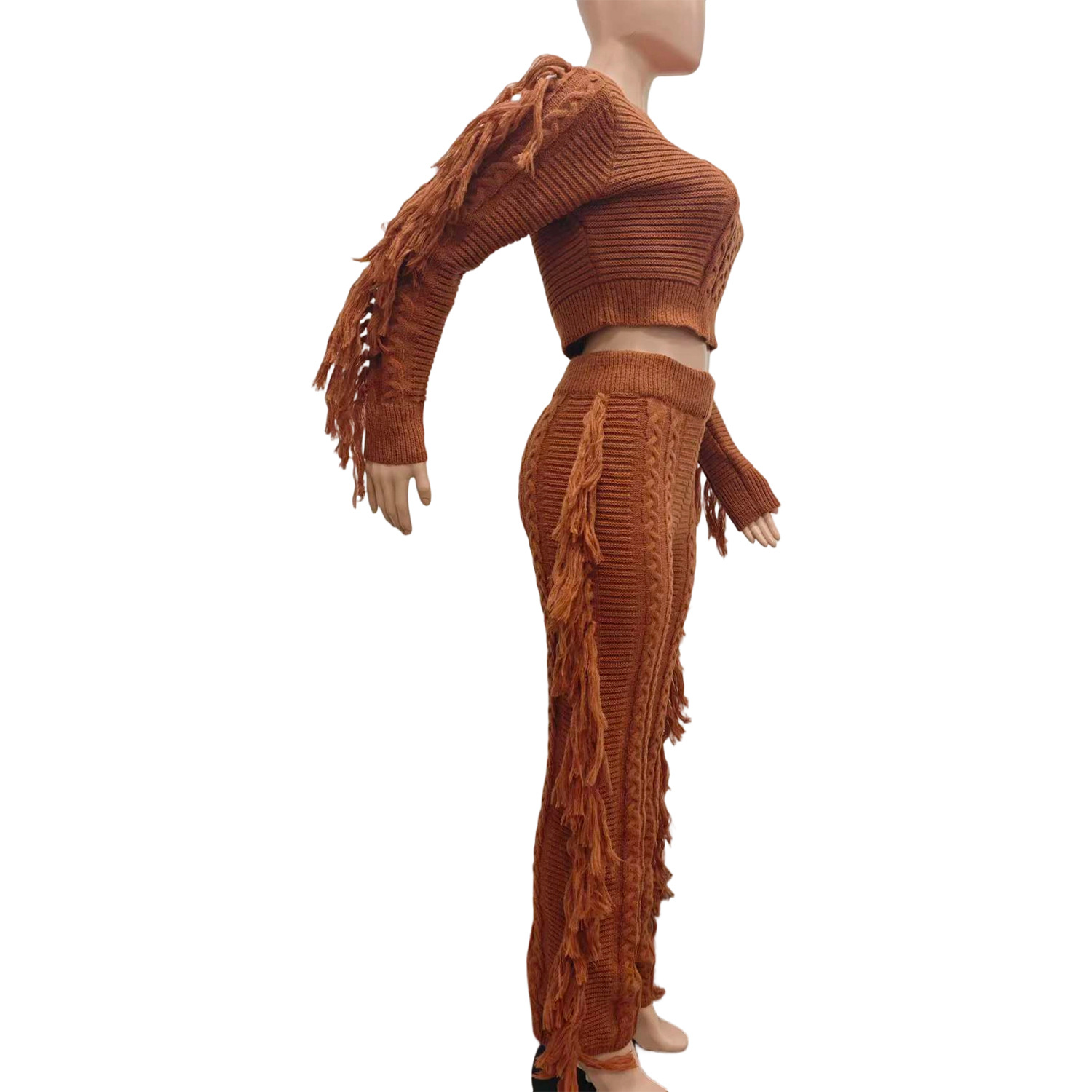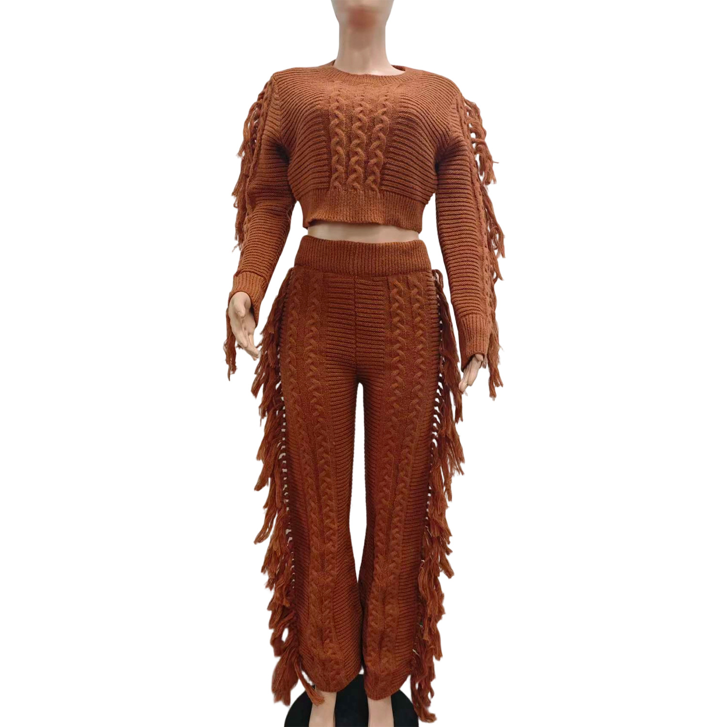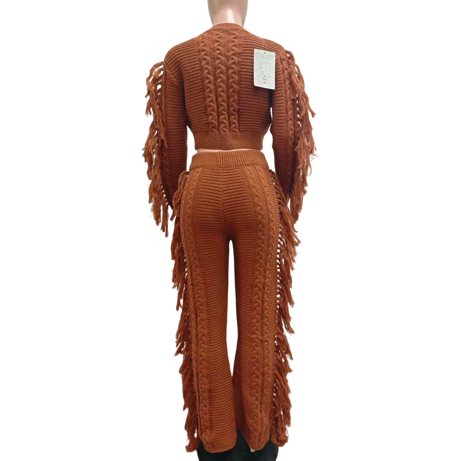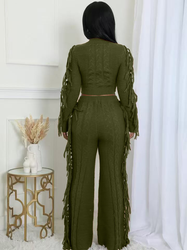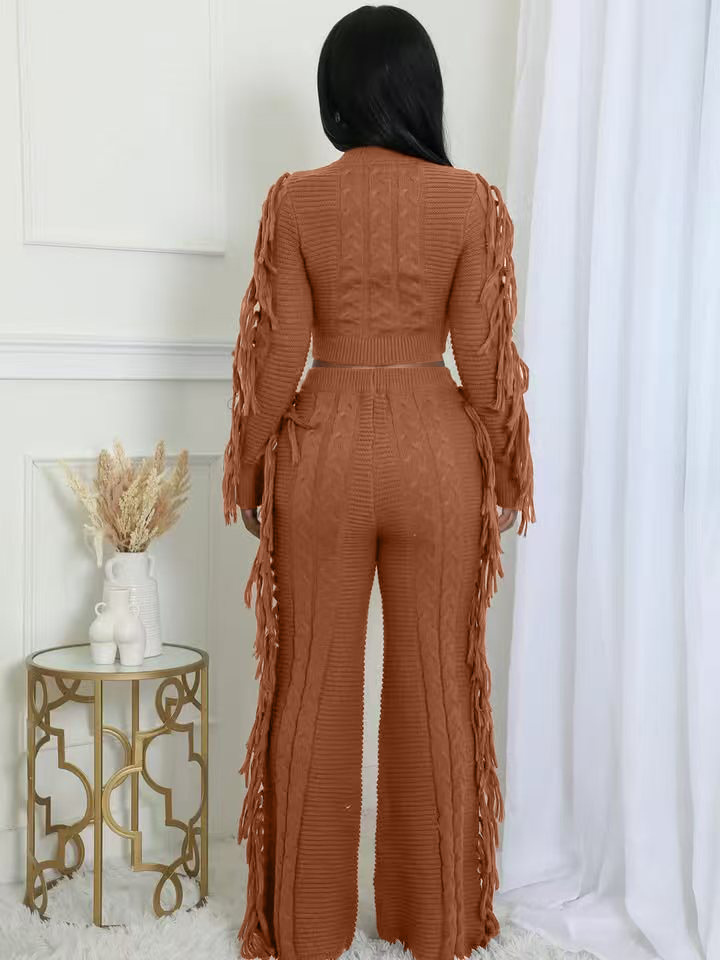 This Women Casual Solid Knitting Long-Sleeved Tassel Top And Pant Two-Piece Set Design Made Of High Quality polyester And Spandex Material. It Is Stretchy, Durable And Comfortable. It Is a Must-Have Outfit For All Seasons. retail Two Piece Pant Sets Can Solve Your cloth selection Troubles. Explore More 2 Piece Pants Set On BamBam retail Women Clothing Online Store.