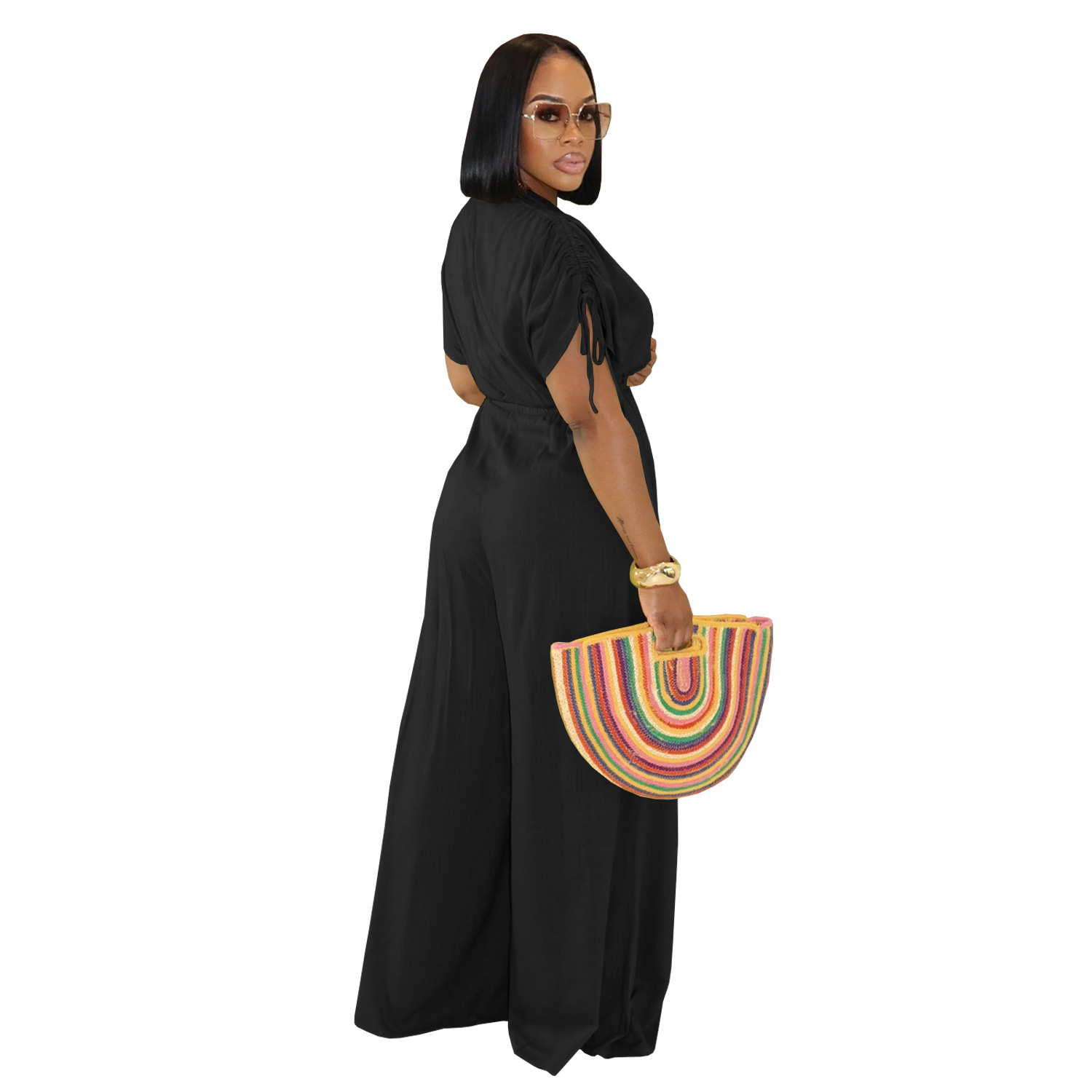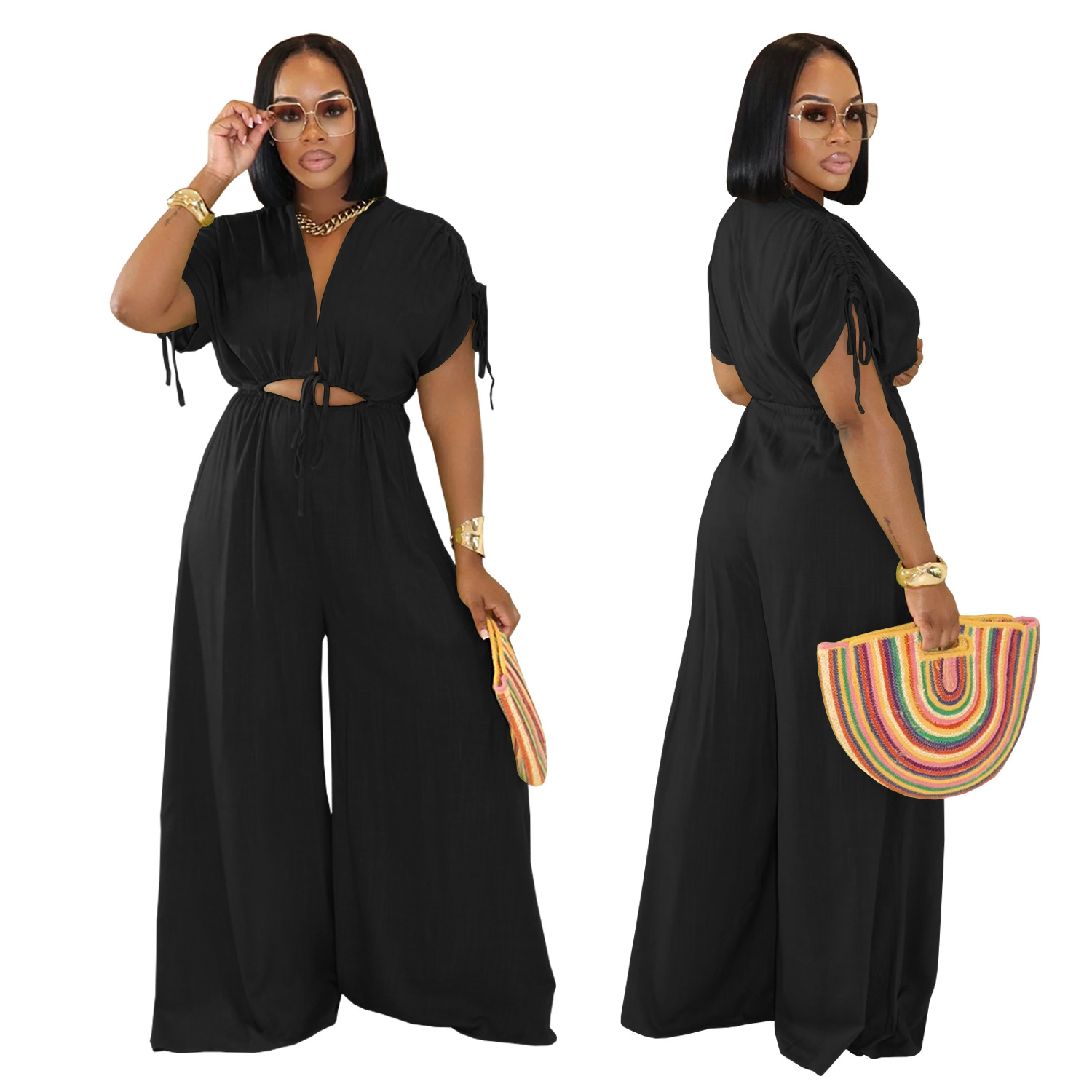 This Women Casual Solid v Neck Lace Wide Leg Jumpsuit Design Made Of High Quality Polyster And Spandex Material. It Is Stretchy, Durable And Comfortable. Affordable Sexy Jumpsuits For Women Has Long Been a Party Favorite. BamBam provides a Rich selection Of Sequin, Beaded, See Through Mesh, Leopard, Floral Lace, Leather, Velvet, Tight And Fitted retail Jumpsuit Without Moq Limit.