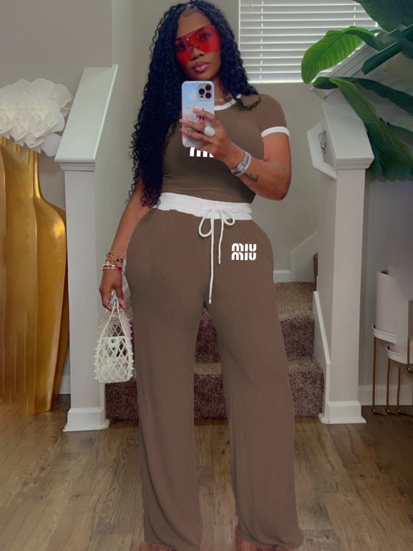 This Women Casual Street Contrast Color Printing Round Neck Short-Sleeved Top And Pant Two-Piece Set Design Made Of High Quality polyester And Spandex Material. It Is Stretchy, Durable And Comfortable. It Is a Must-Have Outfit For All Seasons. retail Two Piece Pant Sets Can Solve Your cloth selection Troubles. Explore More 2 Piece Pants Set On BamBam retail Women Clothing Online Store.
