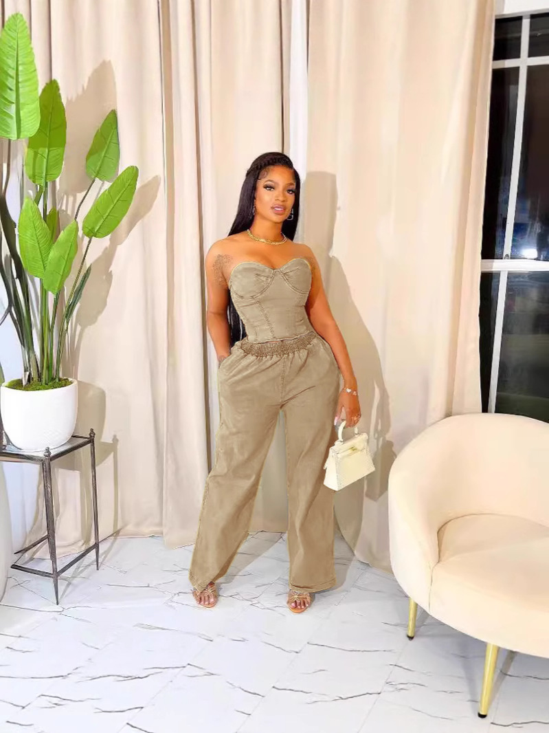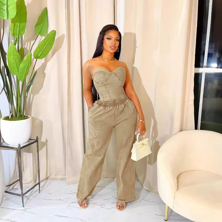 This Women Casual Stretchy Denim Sleeveless Top And Pant Two-Piece Suit Design Made Of High Quality polyester And Spandex Material. It Is Stretchy, Durable And Comfortable. It Is a Must-Have Outfit For All Seasons. retail Two Piece Pant Sets Can Solve Your cloth selection Troubles. Explore More 2 Piece Pants Set On BamBam retail Women Clothing Online Store.