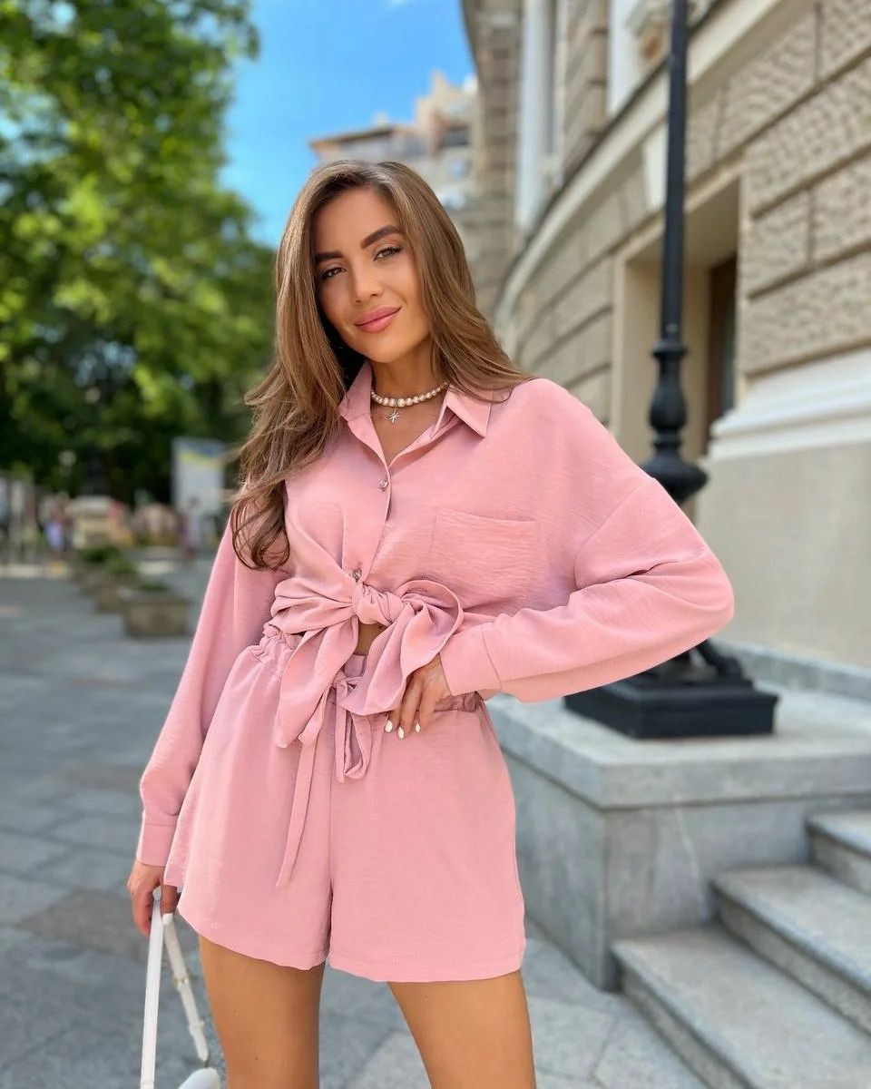 This Women Casual Tie-Drawstring Summer Shirt And Shorts Two-Piece Set Design Made Of High Quality polyester And Spandex Material. It Is Stretchy, Durable And Comfortable. It Come With The Top And Shorts. retail Short Sets Saves Some People From The Trouble Of Matching. And For Matchmakers It Is More Flexible Than One-Piece Outfit. Two Piece Short Set Can Be Worn Together Or Individually, Ladies Can Match Them According To Different Occasions. Grab Different Two Piece Short Sets For This Spring And Summer.