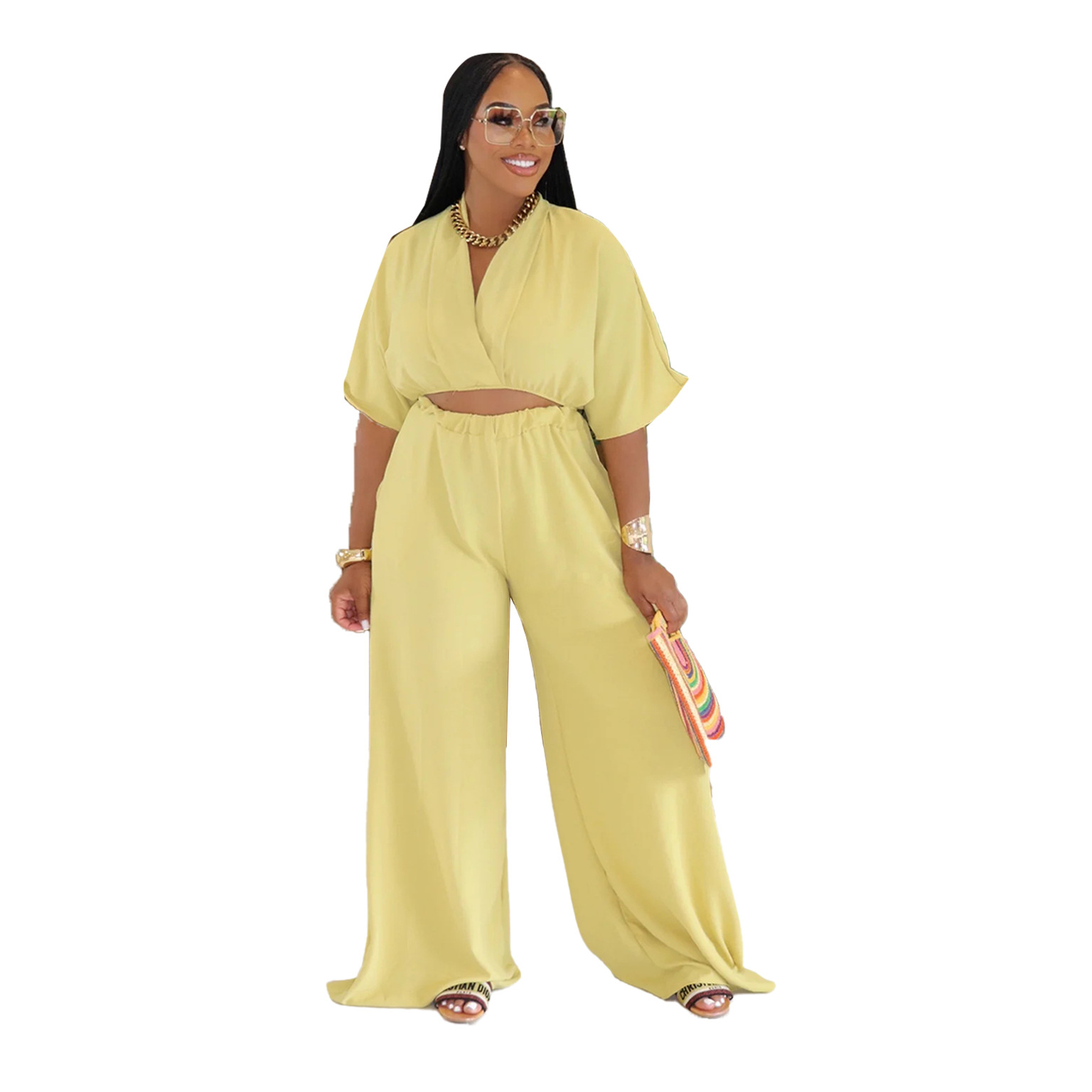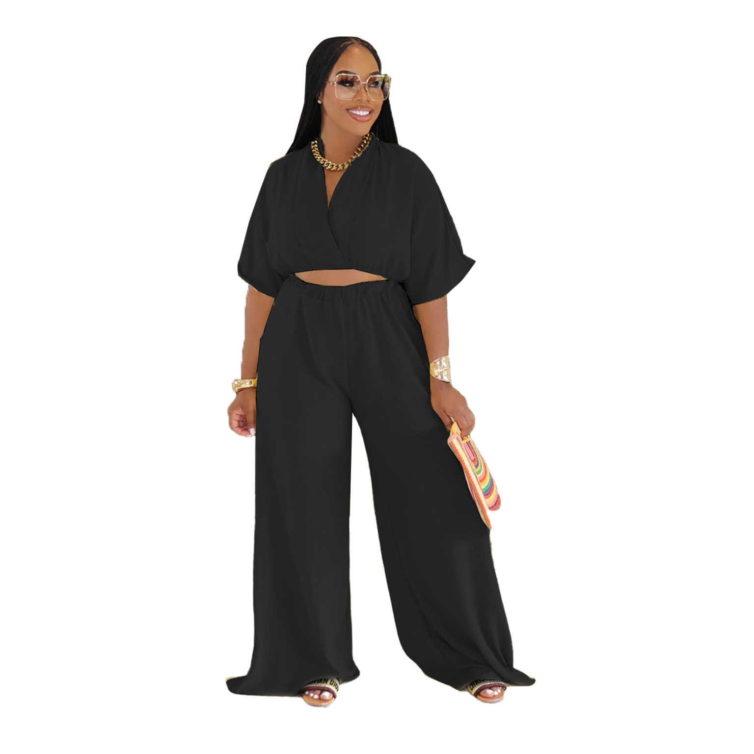 This Women Casual v-Neck Crossover Top And Wide-Leg Pants Two-Piece Set Design Made Of High Quality polyester And Spandex Material. It Is Stretchy, Durable And Comfortable. It Is a Must-Have Outfit For All Seasons. retail Two Piece Pant Sets Can Solve Your cloth selection Troubles. Explore More 2 Piece Pants Set On BamBam retail Women Clothing Online Store.