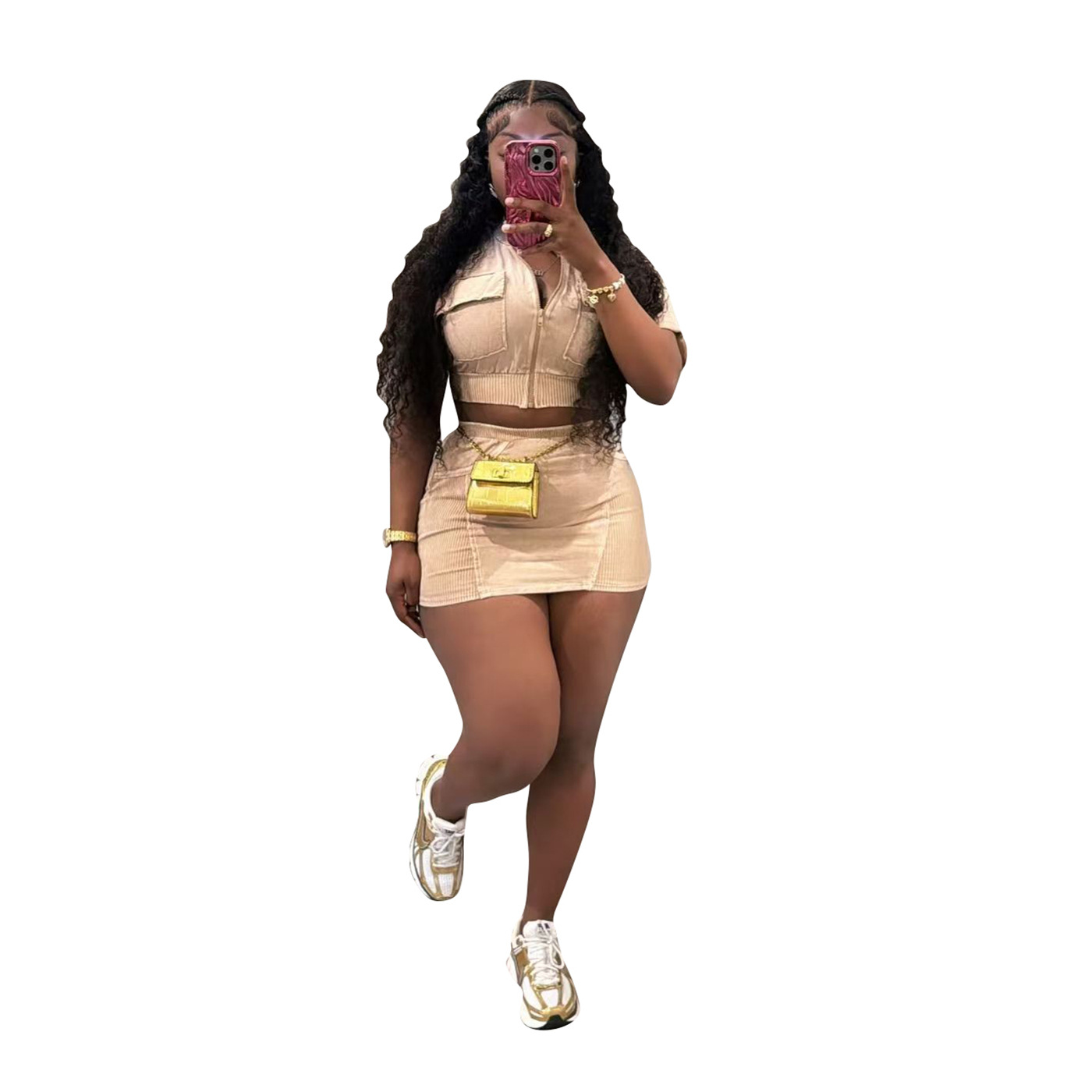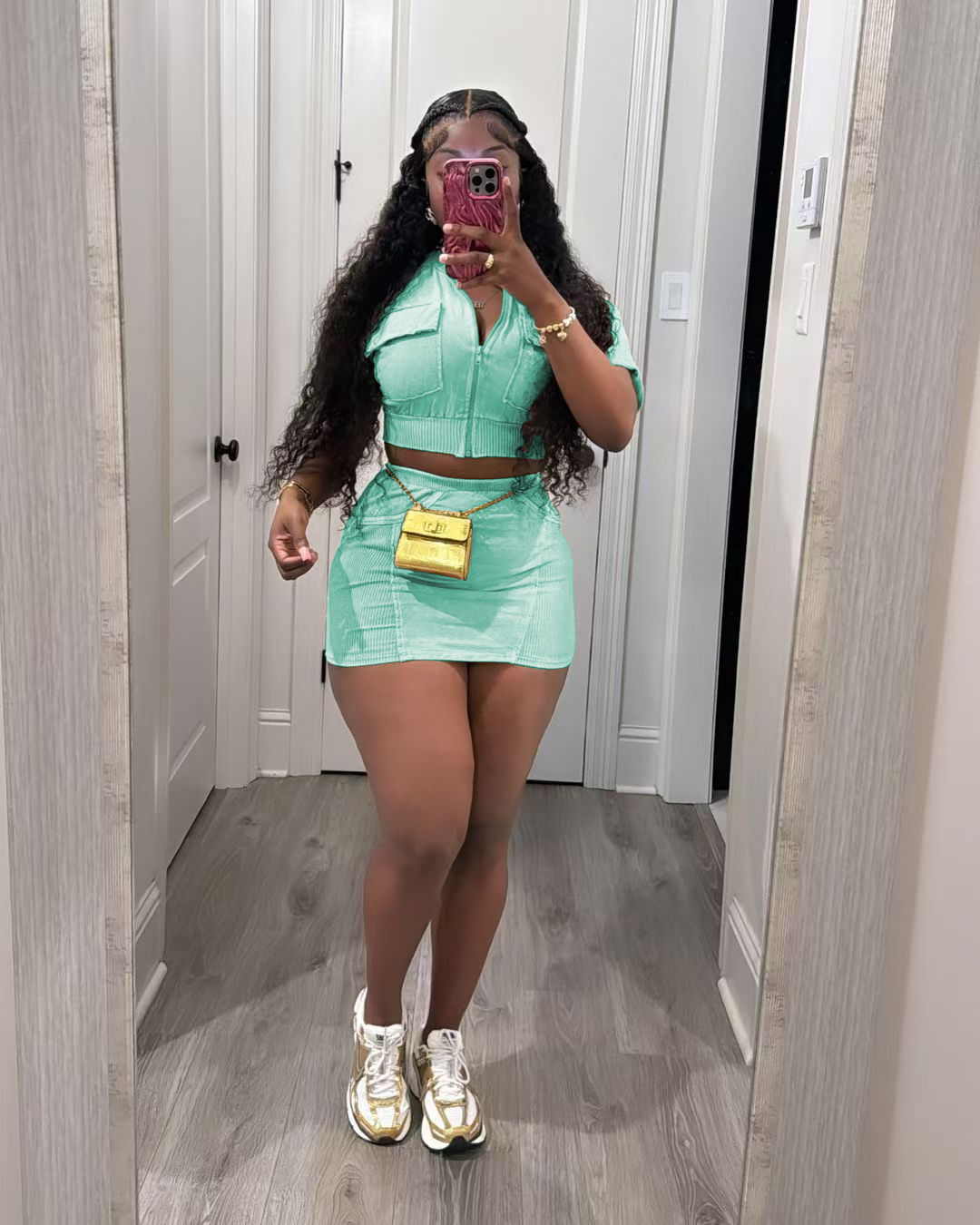 This Women Casual Washed Patchwork Pocket Top And Skirt Two-Piece Set Design Made Of High Quality polyester And Spandex Material. It Is Stretchy, Durable And Comfortable. It Come With The Top And Skirt Matching Set. Women’s Skirt Suit Sets Is a Great Alternative To One Piece Outfit. It Can Either Be Worn Together Or Individually, So You Can Combine Them Endlessly. Grab Different Two Piece Skirt Set retail On Our Website a Women's Clothing Store Online At Really affordable price And Enjoy fast delivery worldwide.