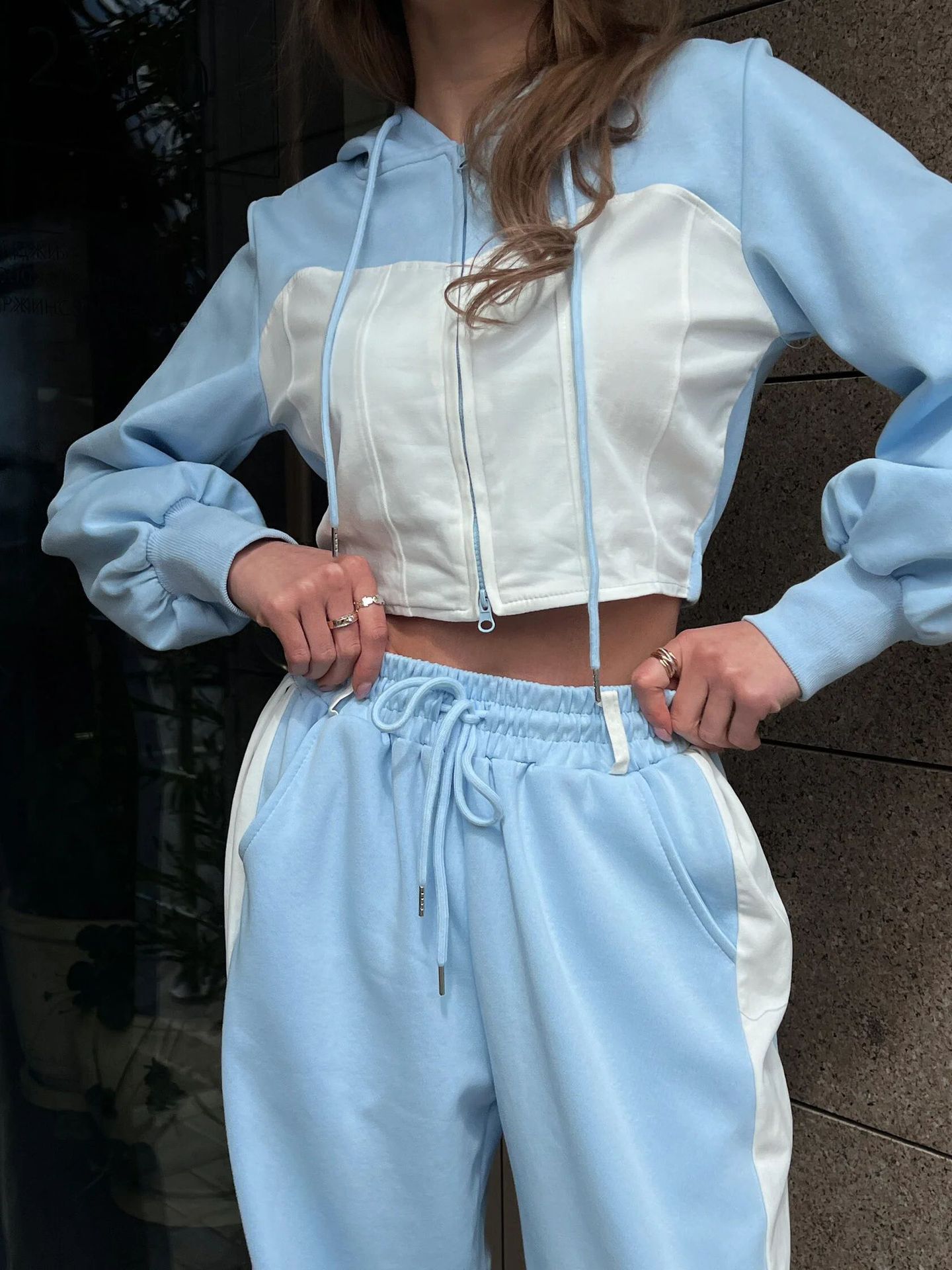 This Women Color Block Hooded Contrast Top And Pants Two-Piece Set Design Made Of High Quality polyester And Spandex Material. It Is Stretchy, Durable And Comfortable. It Is a Must-Have Outfit For All Seasons. retail Two Piece Pant Sets Can Solve Your cloth selection Troubles. Explore More 2 Piece Pants Set On BamBam retail Women Clothing Online Store.