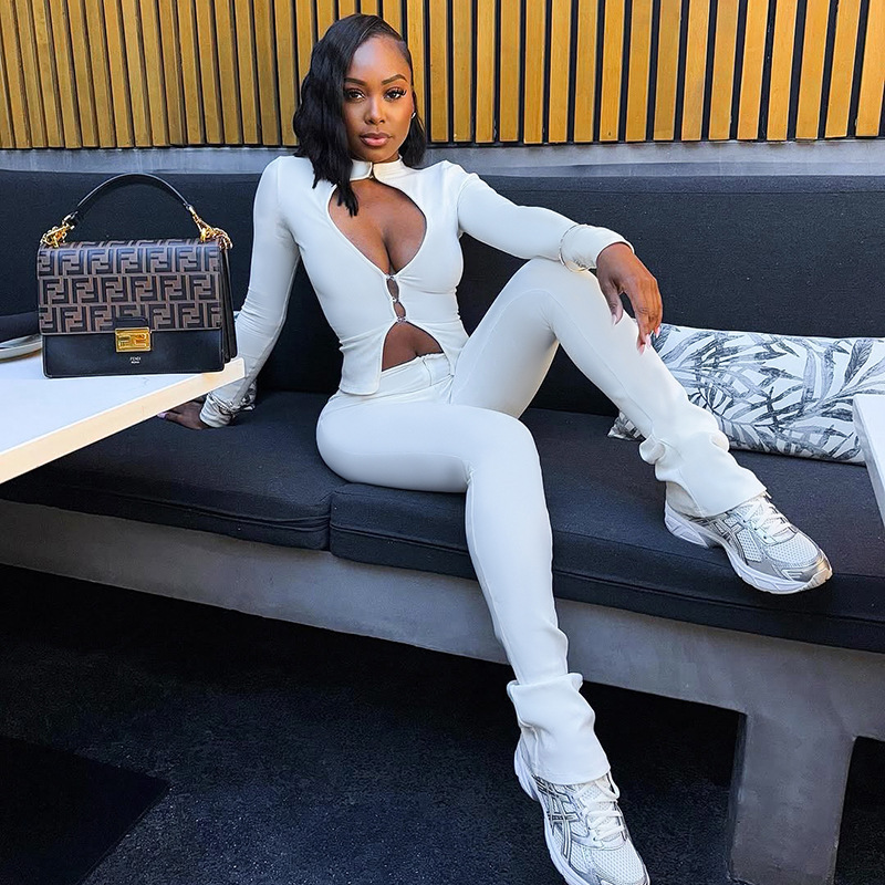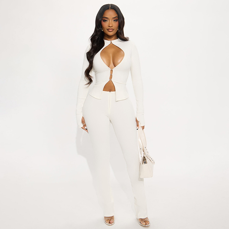 This Women Cutout Hook-And-Snap Zipper Top And Pants Two-Piece Set Design Made Of High Quality polyester And Spandex Material. It Is Stretchy, Durable And Comfortable. It Is a Must-Have Outfit For All Seasons. retail Two Piece Pant Sets Can Solve Your cloth selection Troubles. Explore More 2 Piece Pants Set On BamBam retail Women Clothing Online Store.