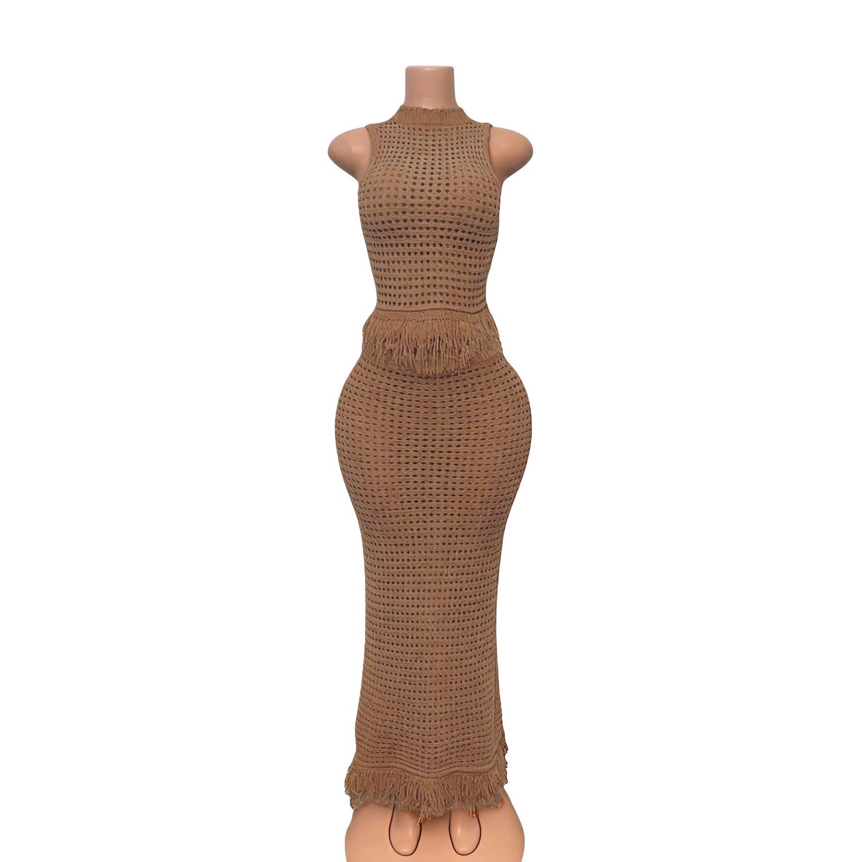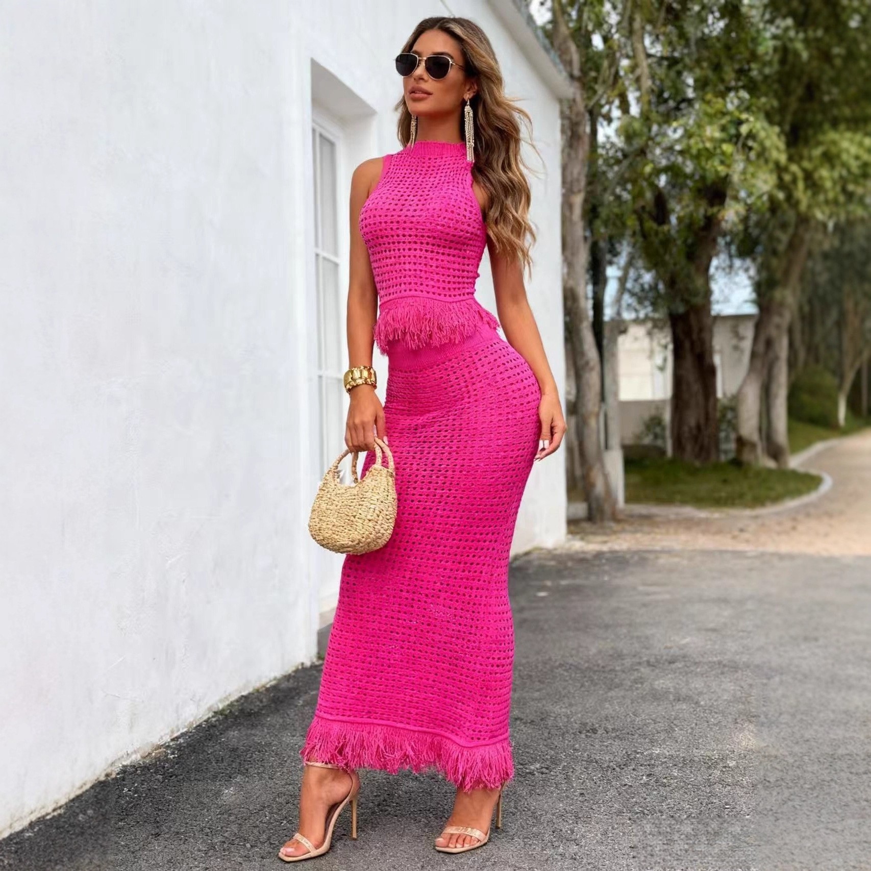 This Women Cutout Knitting Tassel Sleeveless Turtleneck Top And Skirt Two-Piece Set Design Made Of High Quality polyester And Spandex Material. It Is Stretchy, Durable And Comfortable. It Come With The Top And Skirt Matching Set. Women’s Skirt Suit Sets Is a Great Alternative To One Piece Outfit. It Can Either Be Worn Together Or Individually, So You Can Combine Them Endlessly. Grab Different Two Piece Skirt Set retail On Our Website a Women's Clothing Store Online At Really affordable price And Enjoy fast delivery worldwide.