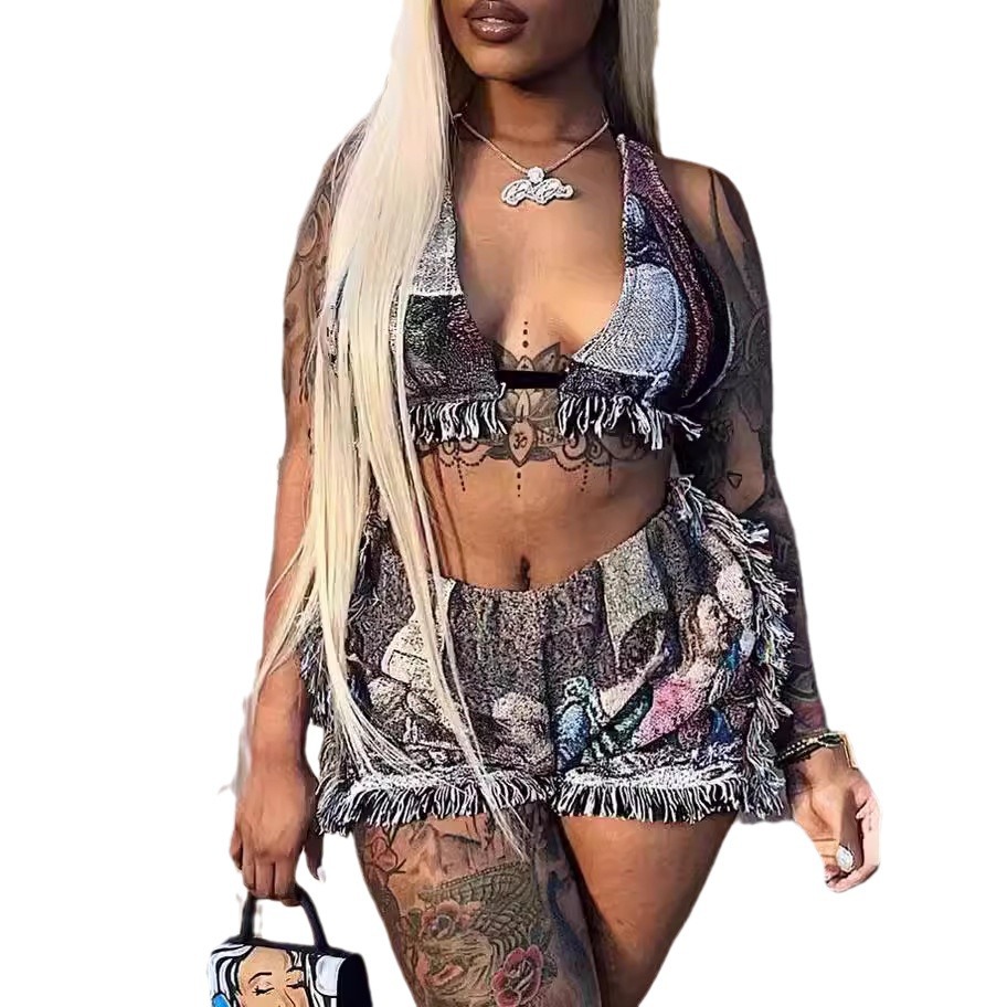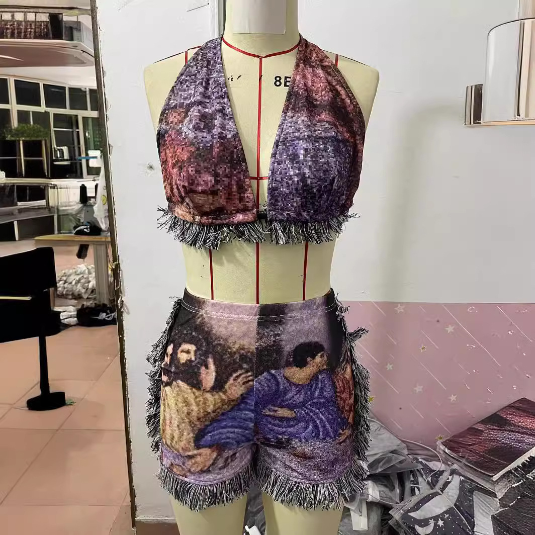 This Women’s High-Waist Printed Shorts & Bra Set Design Made Of High Quality polyester And Spandex Material. It Is Stretchy, Durable And Comfortable. It Come With The Top And Shorts. retail Short Sets Saves Some People From The Trouble Of Matching. And For Matchmakers It Is More Flexible Than One-Piece Outfit. Two Piece Short Set Can Be Worn Together Or Individually, Ladies Can Match Them According To Different Occasions. Grab Different Two Piece Short Sets For This Spring And Summer.
