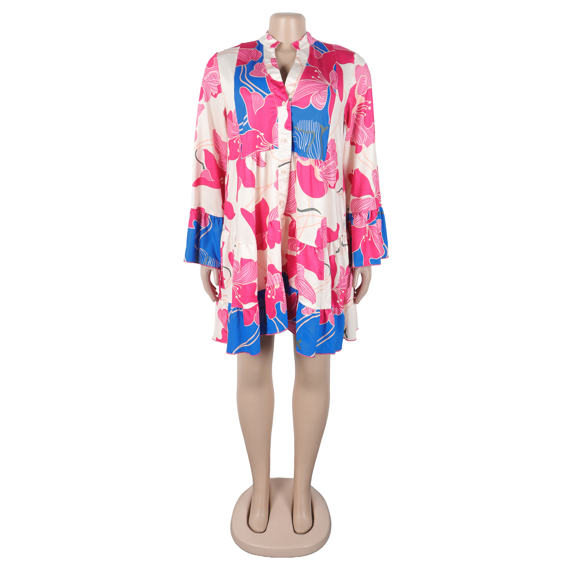 This Women Elegant Floral Print v-Neck Patchwork Contrast Color Mini Dress Design Made Of High Quality polyester And Spandex Material. It Is Stretchy, Durable And Comfortable. Casual Dresses With Long Sleeves Can Not Only Be Worn As Outerwear In Spring And Autumn, But Also Matching a Jacket In Winter, It Is a Must Have Item For Every Season. Grab Really Great Buy Casual Dresses For Women And Grow Your Business. No Moq In BamBam.